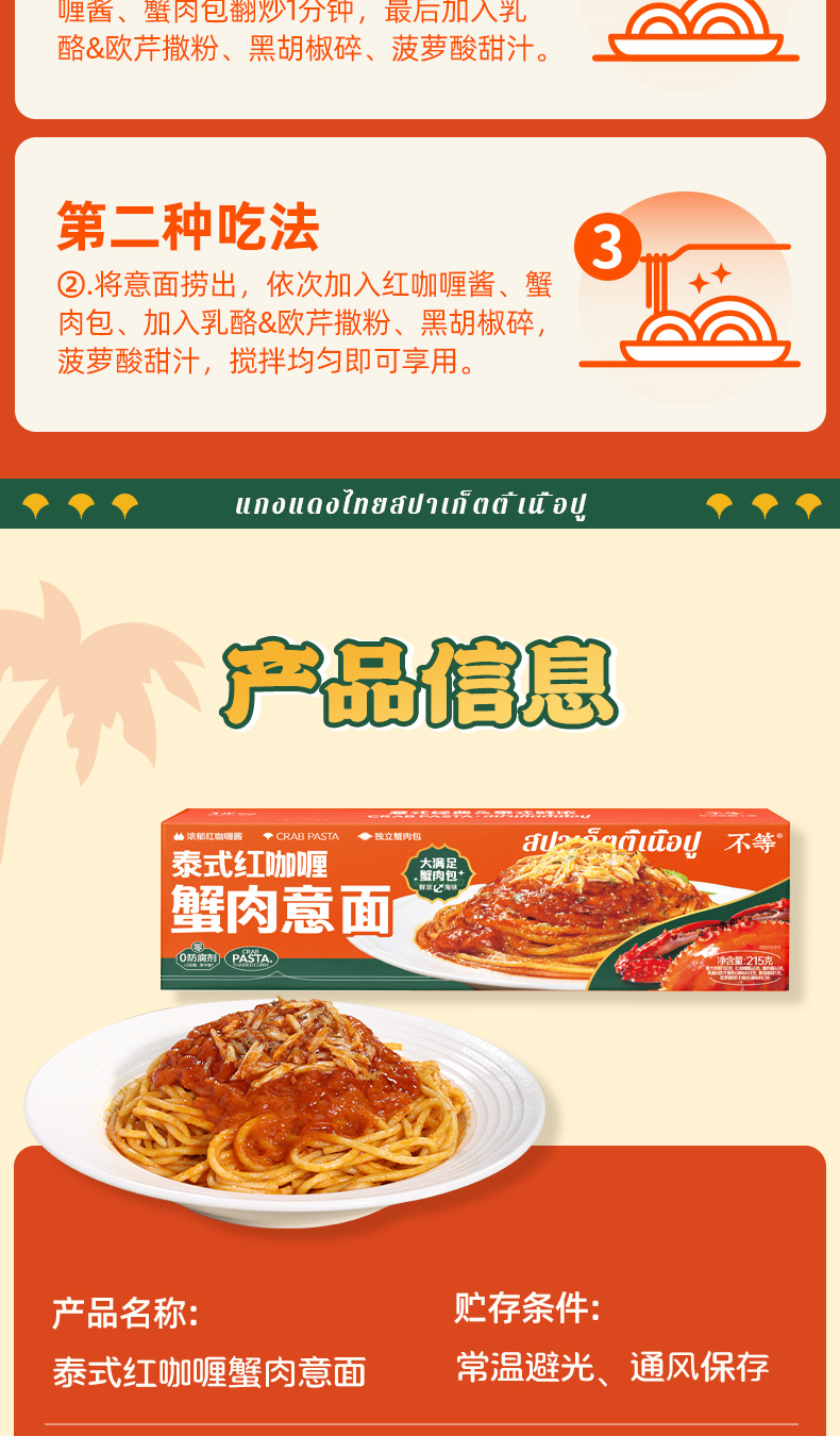 泰式红咖喱蟹肉意面