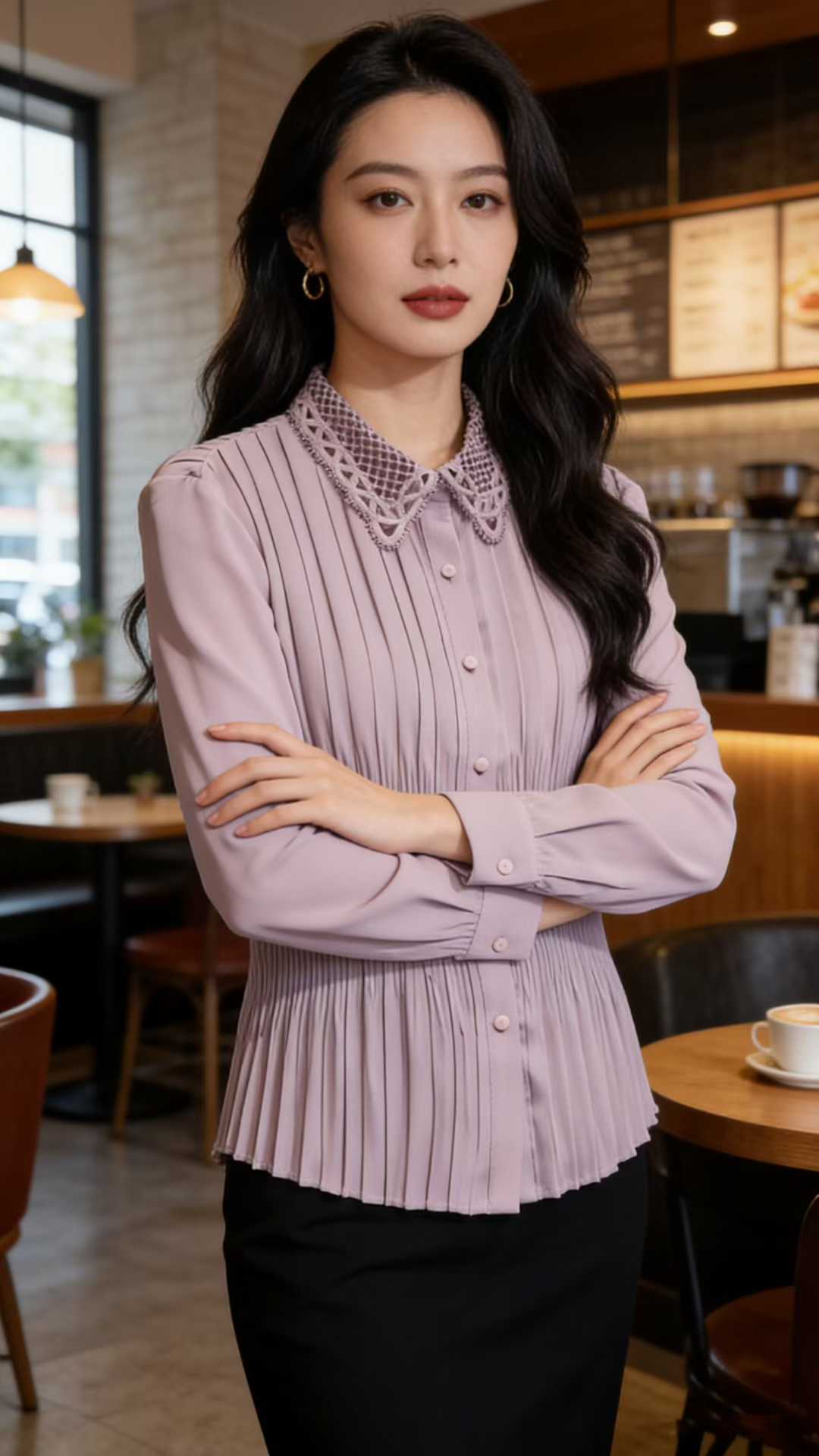 SC1F03 紫色衬衫 精致刺绣蕾丝领、全身压褶工艺、收腰显瘦版型,全身采用精密细褶压皱工艺,久穿不易变形,端庄优雅中式气质。