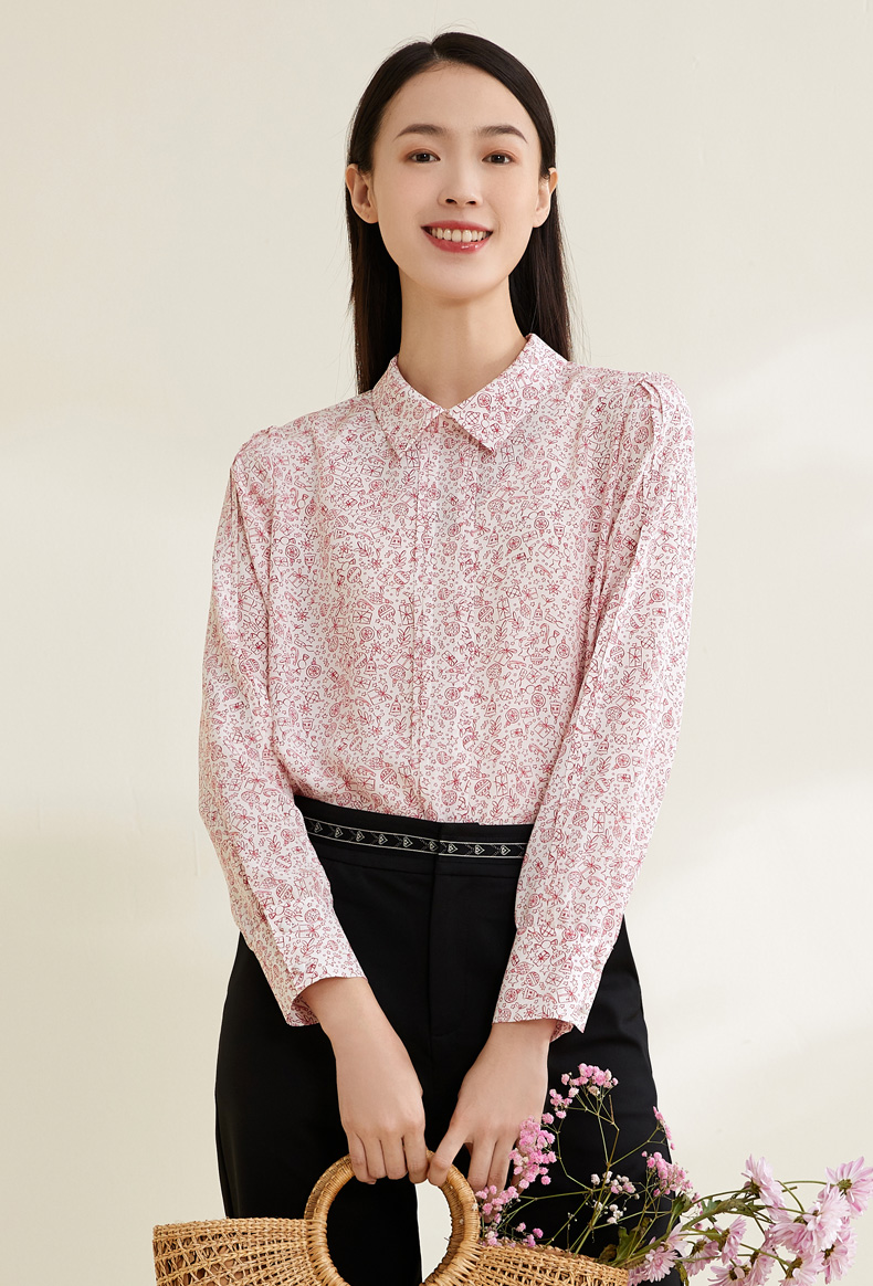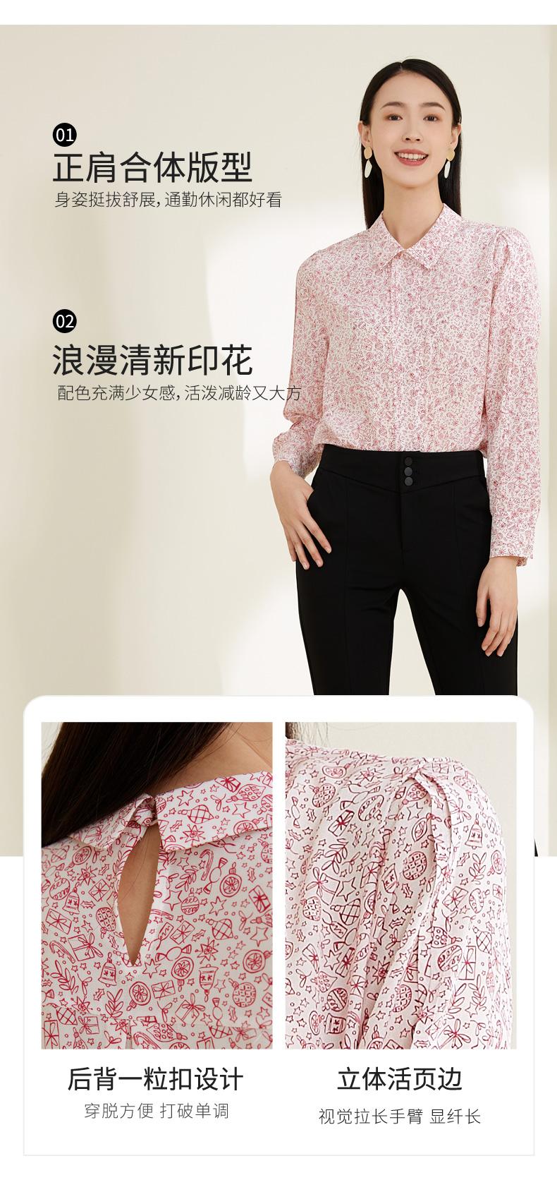 玳莎甜美真丝衬衫早春女士桑蚕丝上衣别致休闲小众长袖衬衣 CA31313