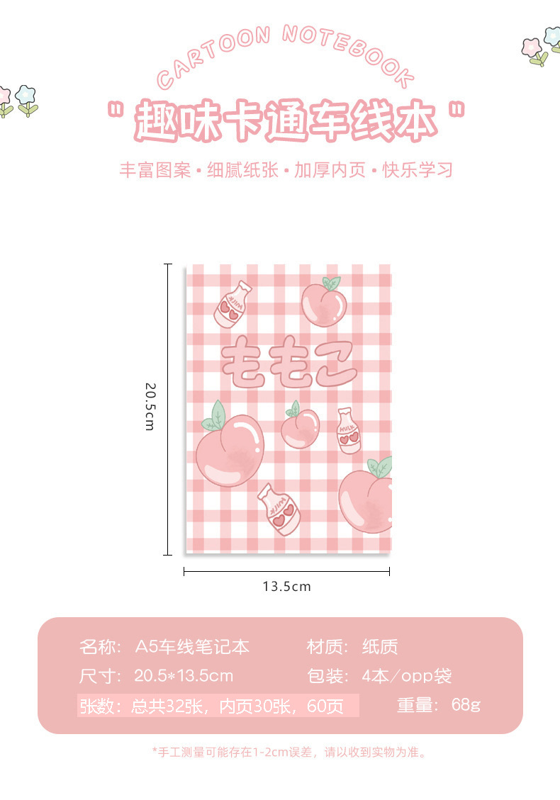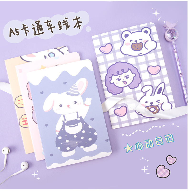 车线本A5办公记事本学生文具课堂笔记本 ins少女心日记本 1本