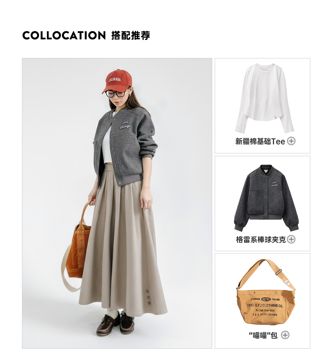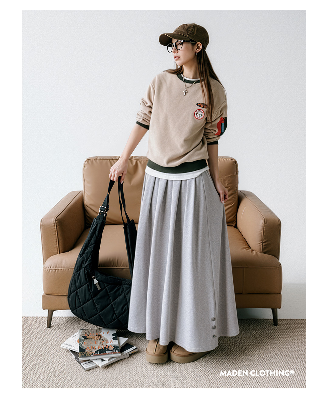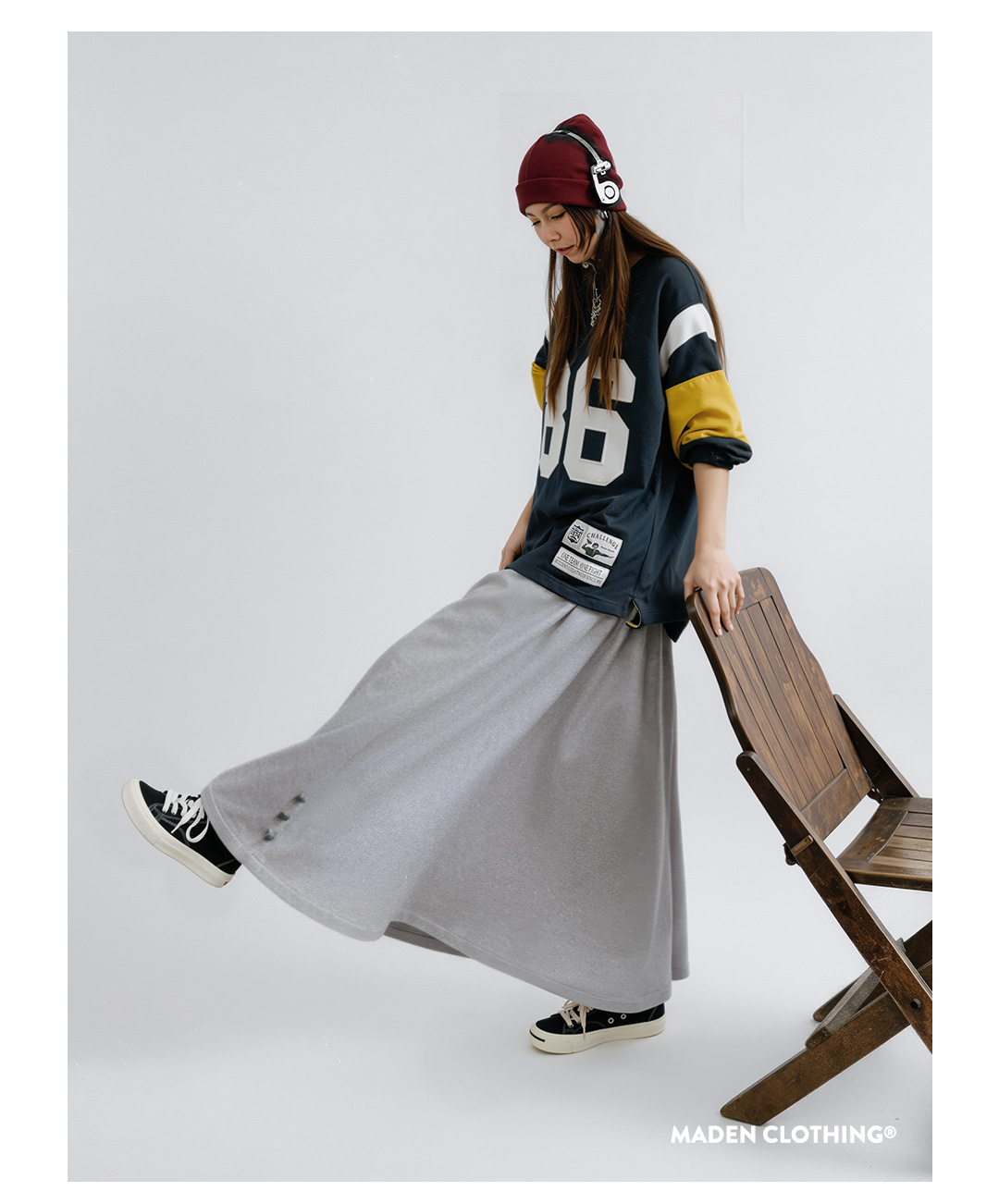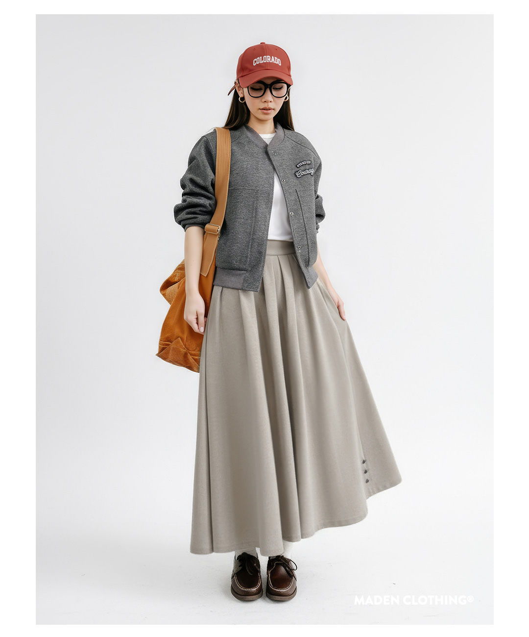 马登灰色毛呢大摆半身长裙针织松紧腰垂坠感百褶A字伞裙秋冬女士