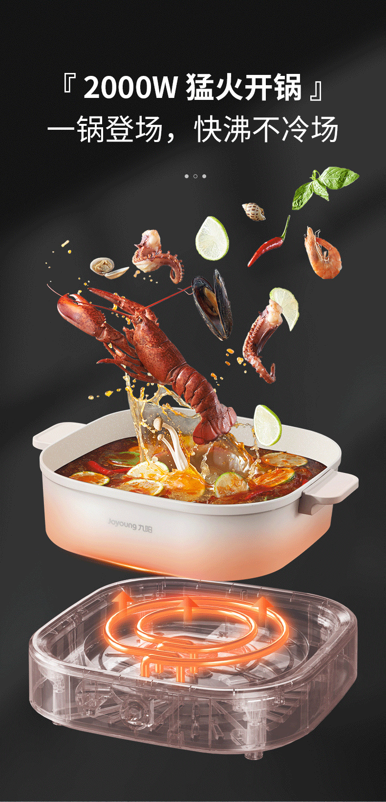 【秒涮火锅】Joyoung九阳G555电火锅家用分体式6L大容量鸳鸯锅
