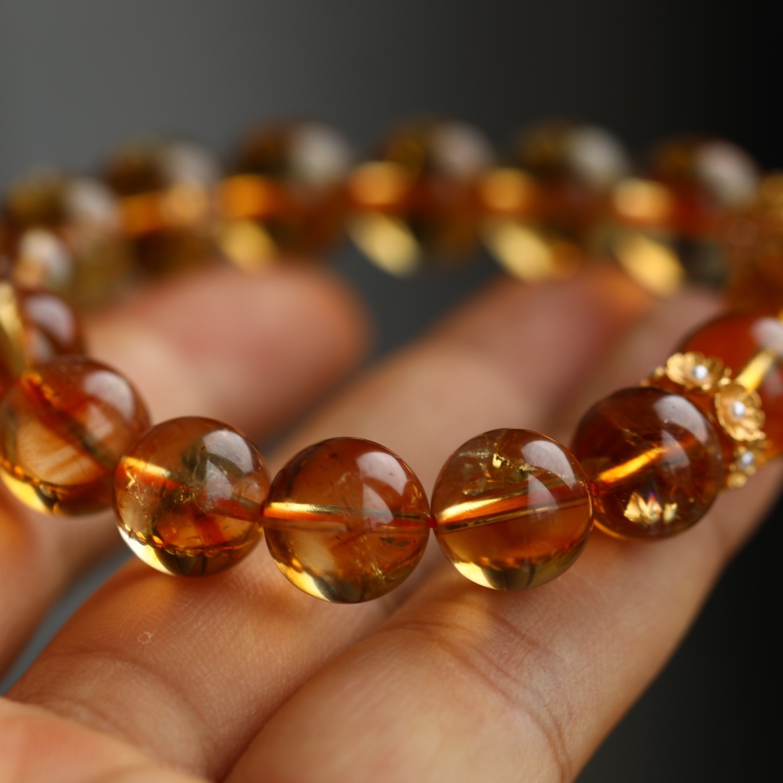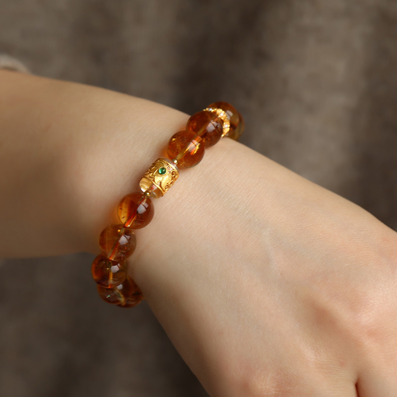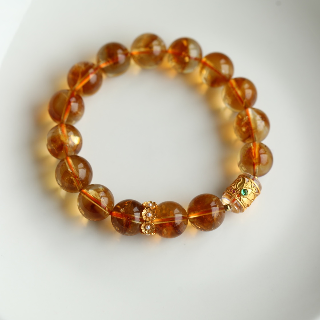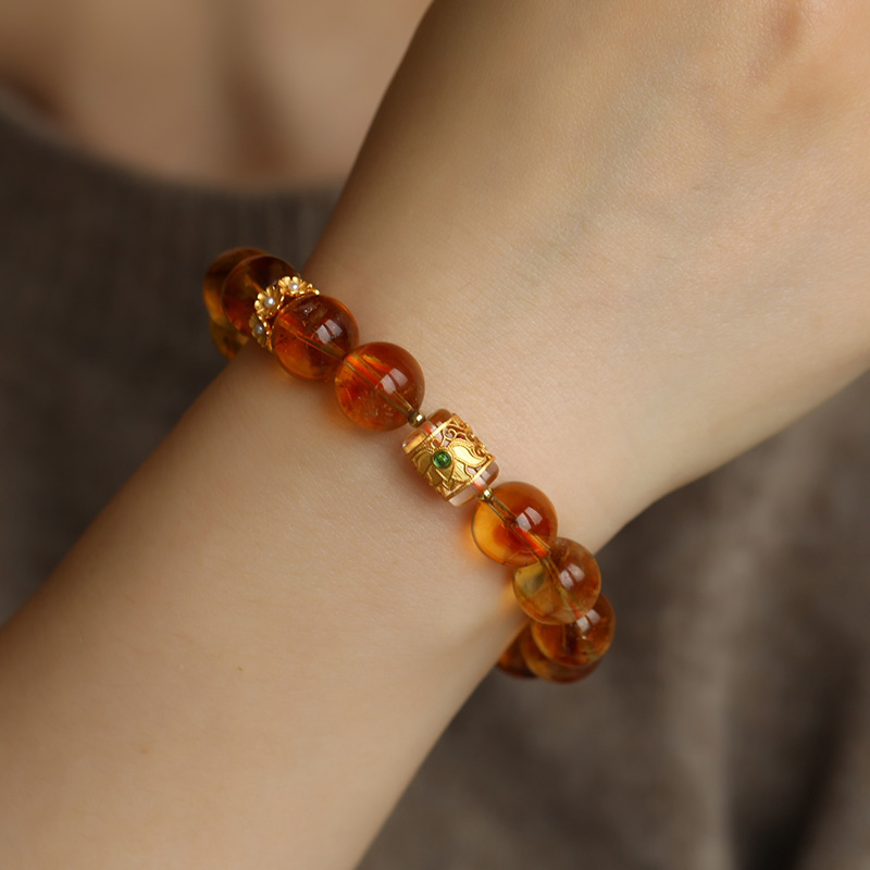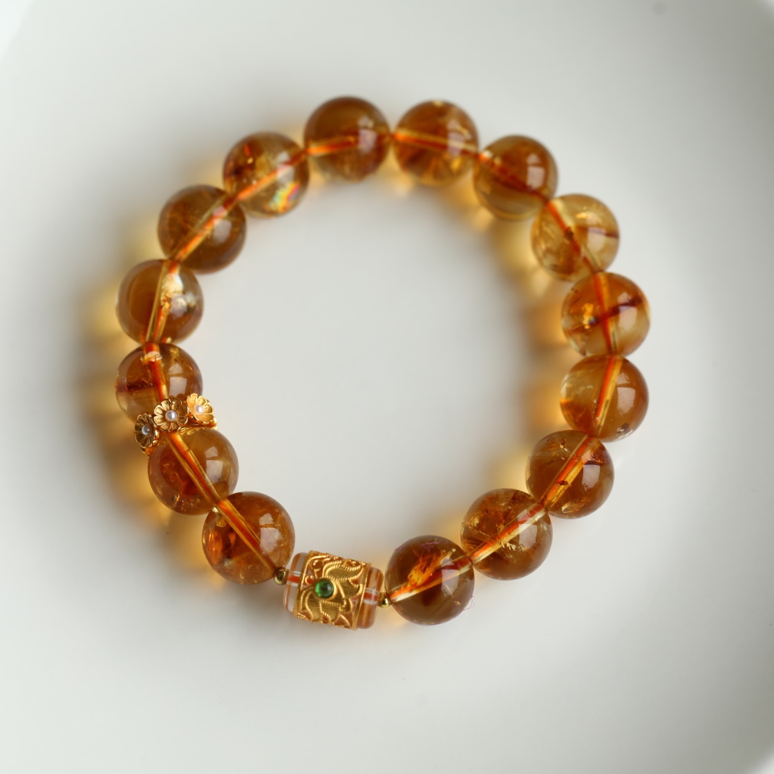 天然巴西水晶 尺寸约11.5mm 搭配纯银鎏金莲花镶嵌白水晶桶珠 珍珠小花环