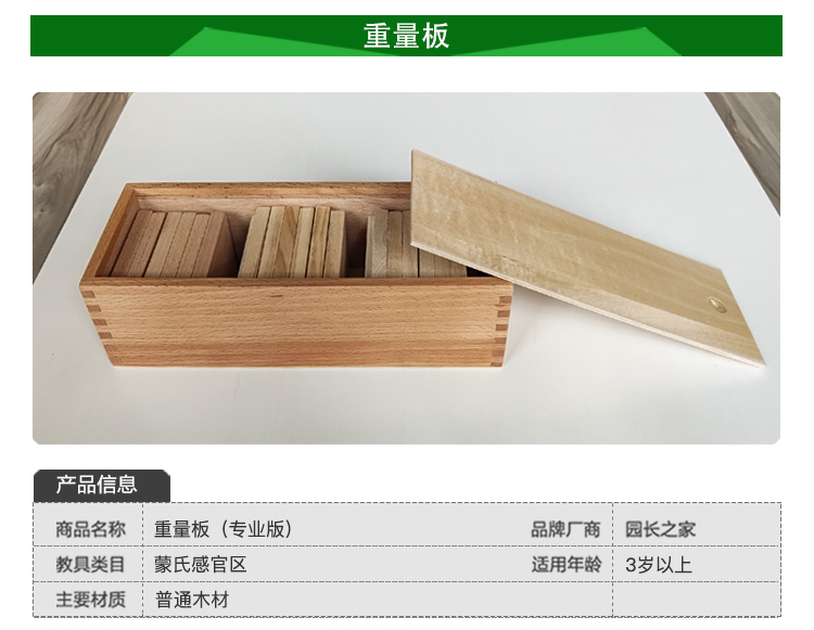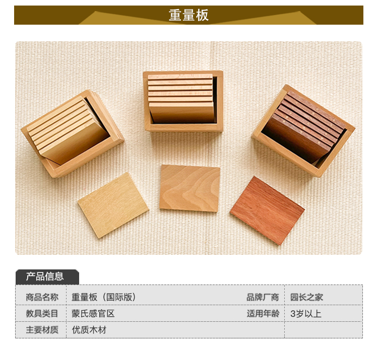 蒙氏教具专业版 蒙台梭利蒙特梭利教具 儿童益智早教玩具 重量板