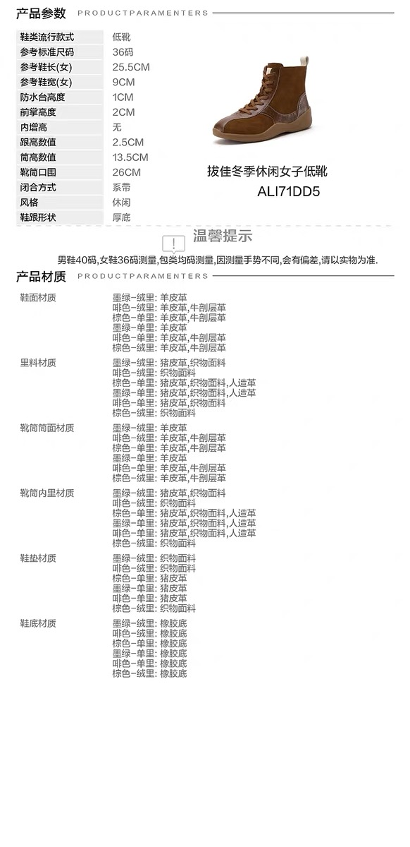 【云粉节】BF楼Bata休闲靴女2025冬款时尚低跟运动拳击靴ALI71DD5 吊牌价1159 活动价699