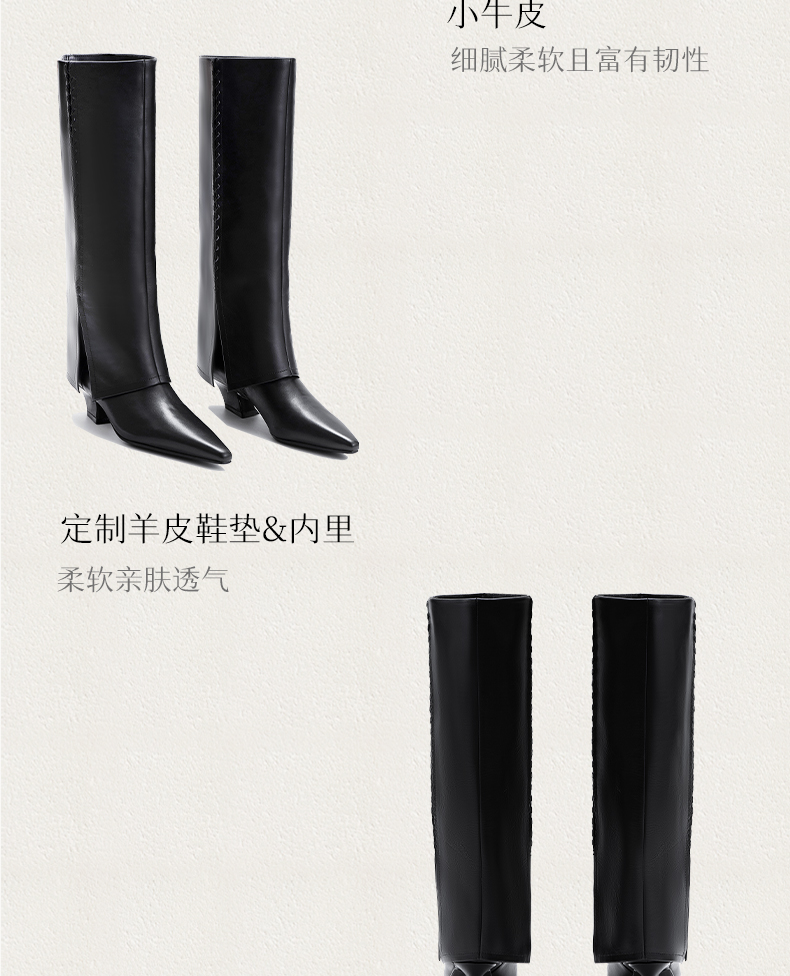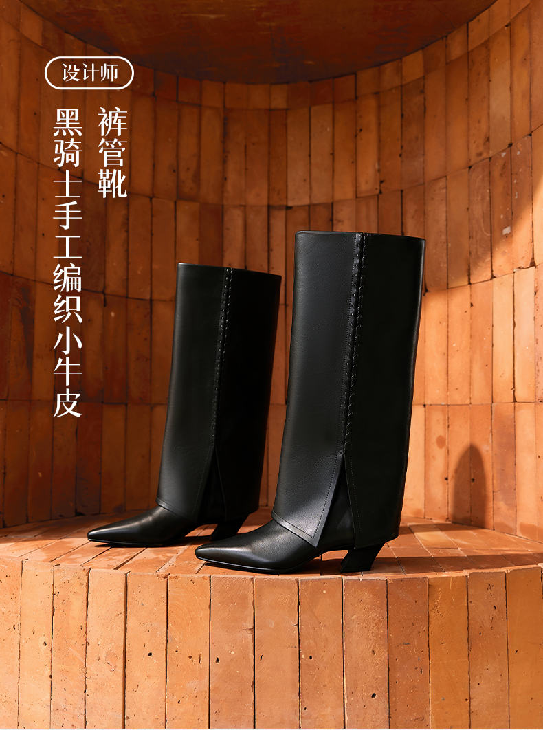 heelz设计师手工鞋履 |黑骑士手工编织小牛皮 裤管靴 4.5 公分