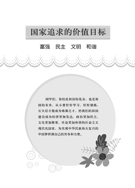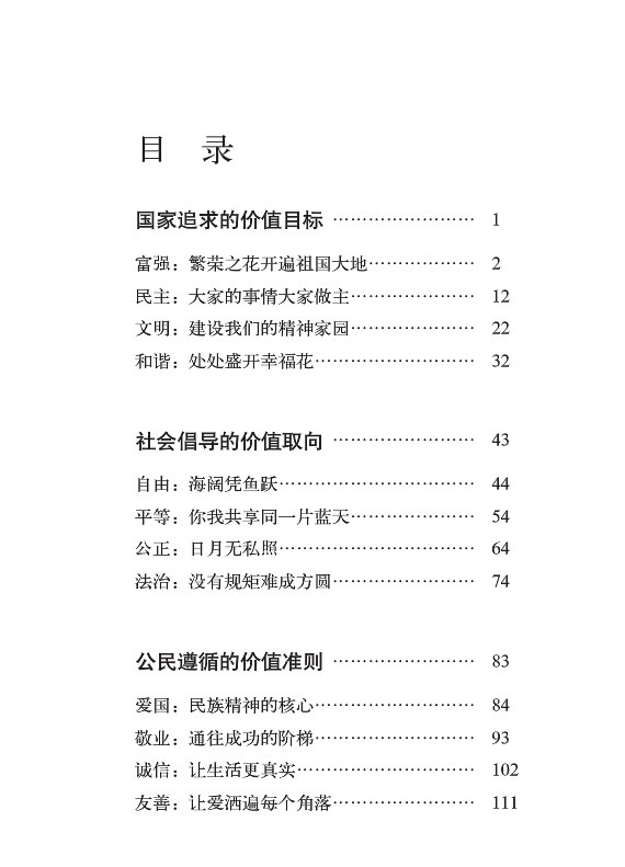 每册围绕社会主义核心价值观的12个关键词编写。以生活中的典型现象作为切入点,引导学生分辨当今社会出现的道德迷失现象,区分真善美和假丑恶,增强道德判断力和社会责任感。用深入浅出的语言对社会主义核心价值观的12个关键词加以理论解读,让孩子们熟读并记住24个字,理解核心价值观的丰富内涵和深远意义。再配合生动感人的榜样故事,激发孩子们内心深处的情感共鸣,让健康向上的思想入脑入心。丛书还设计了实践活动板块,引导学生知行合一,从自身做起、从细节做起,自觉将理论转化为崇德向善的实际行动。本丛书对于少年儿童培育和践行社会主义核心价值观,树立正确的人生观、价值观和世界观有积极影响,具有良好的社会效益。