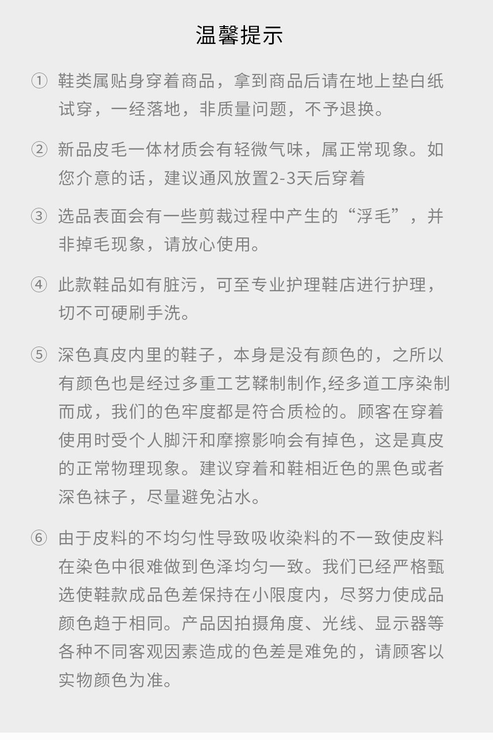 【售后政策】 支持7天无理由退换货质量问题我们承担调换货运费 (注:请务必使用原装鞋盒寄回(如鞋盒有遗失需扣款20元)。