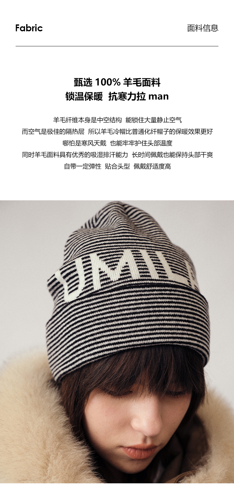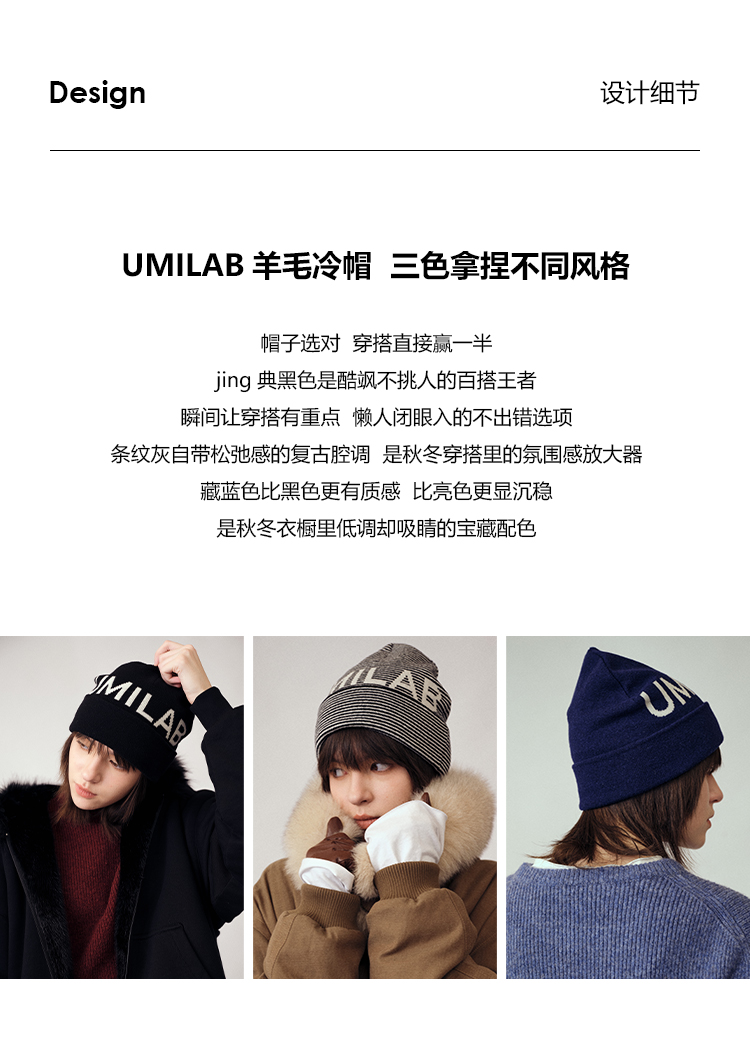 UMILAB|暖伴*造型神器 100%羊毛保暖抗寒经典三色针织冷帽K675W