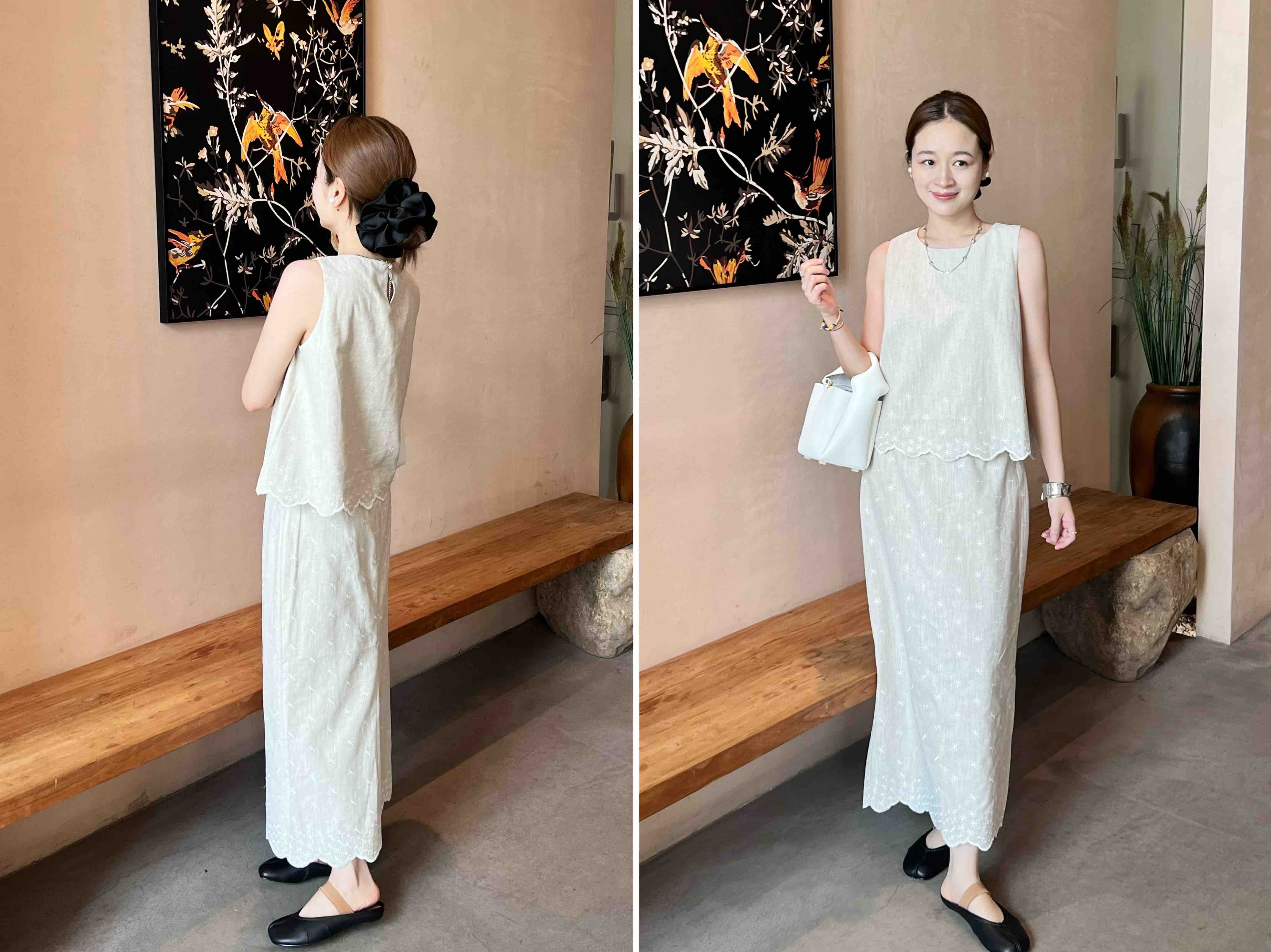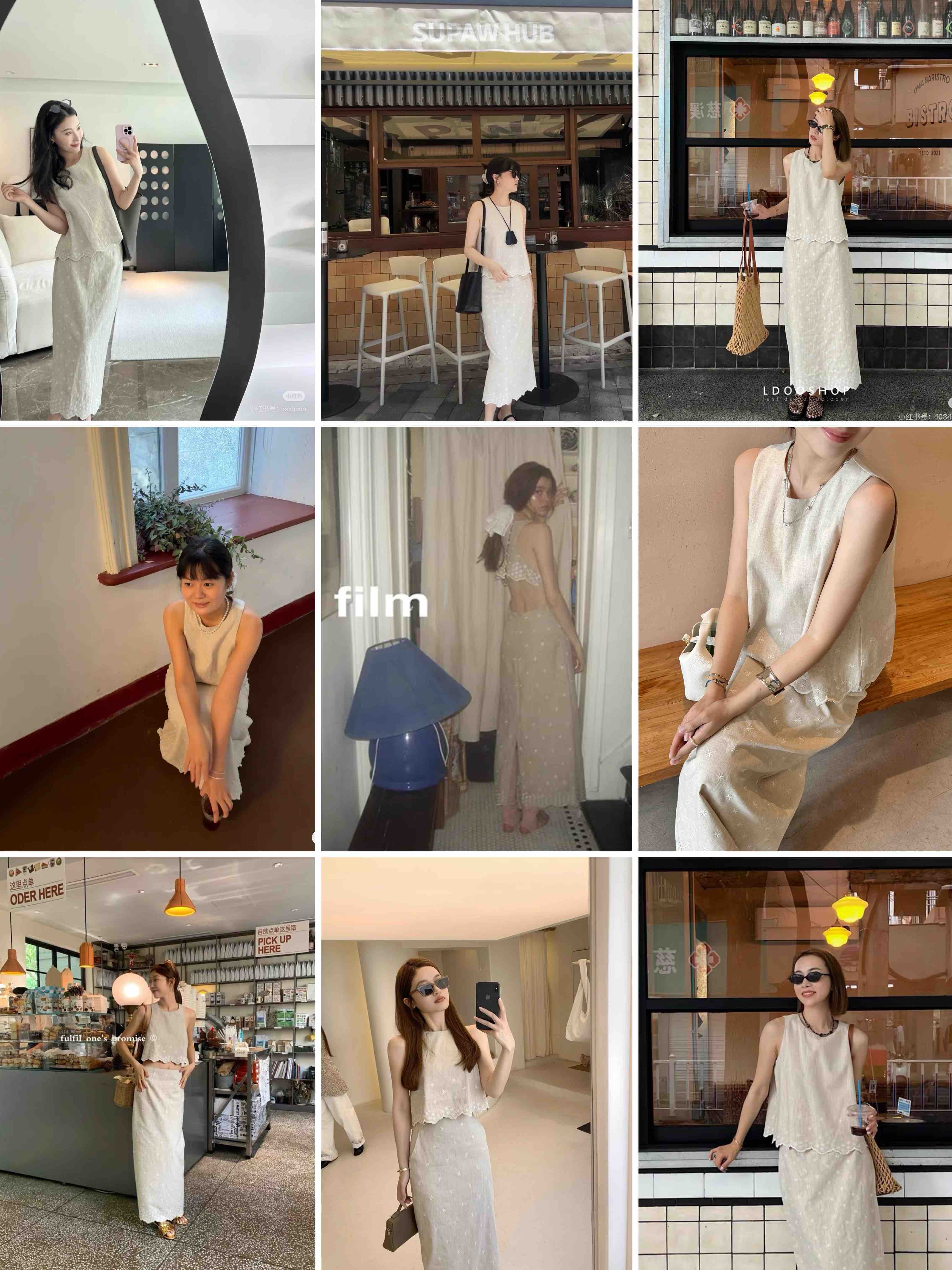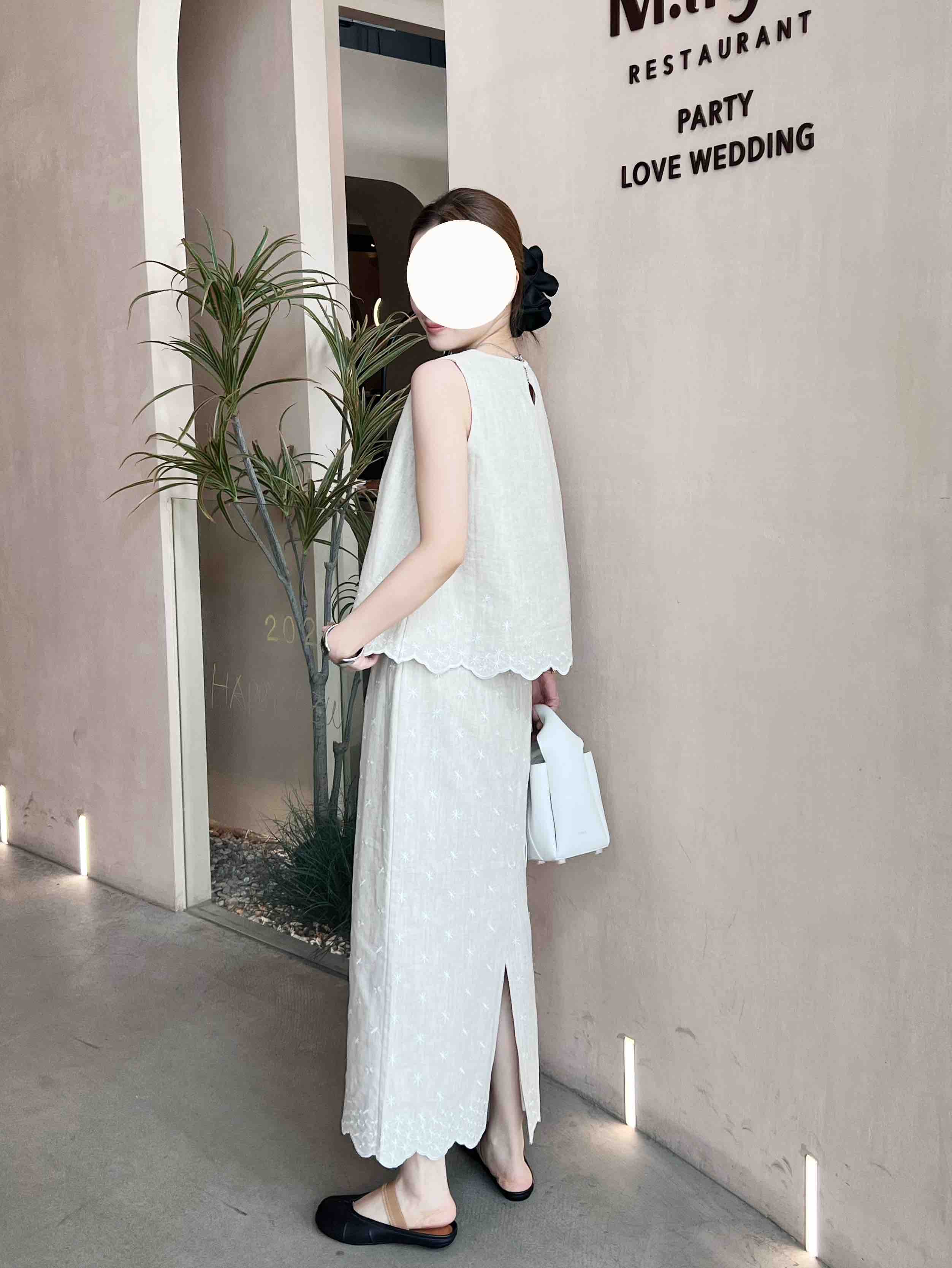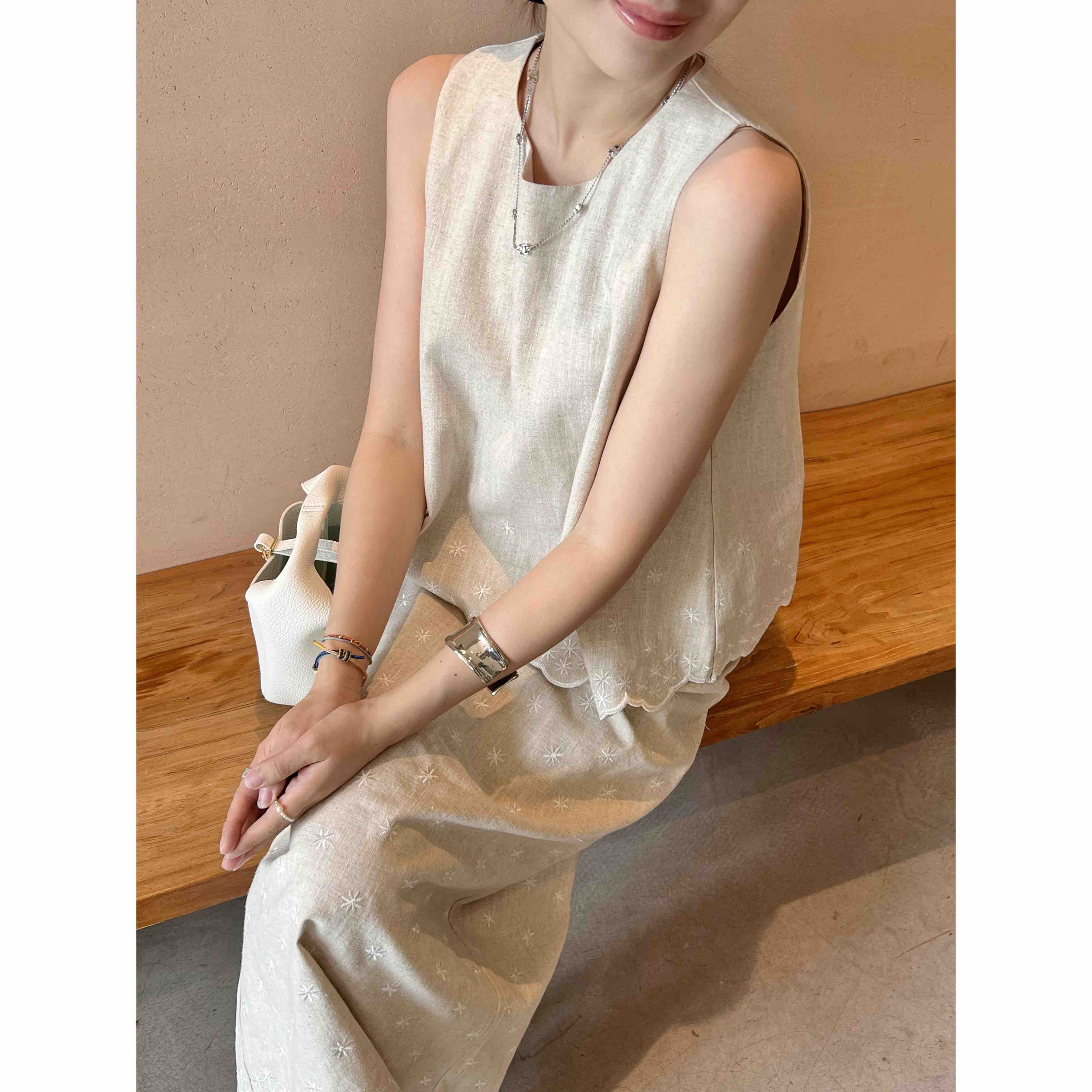 2507503 雏菊刺绣长裙套装(上衣+裙子)