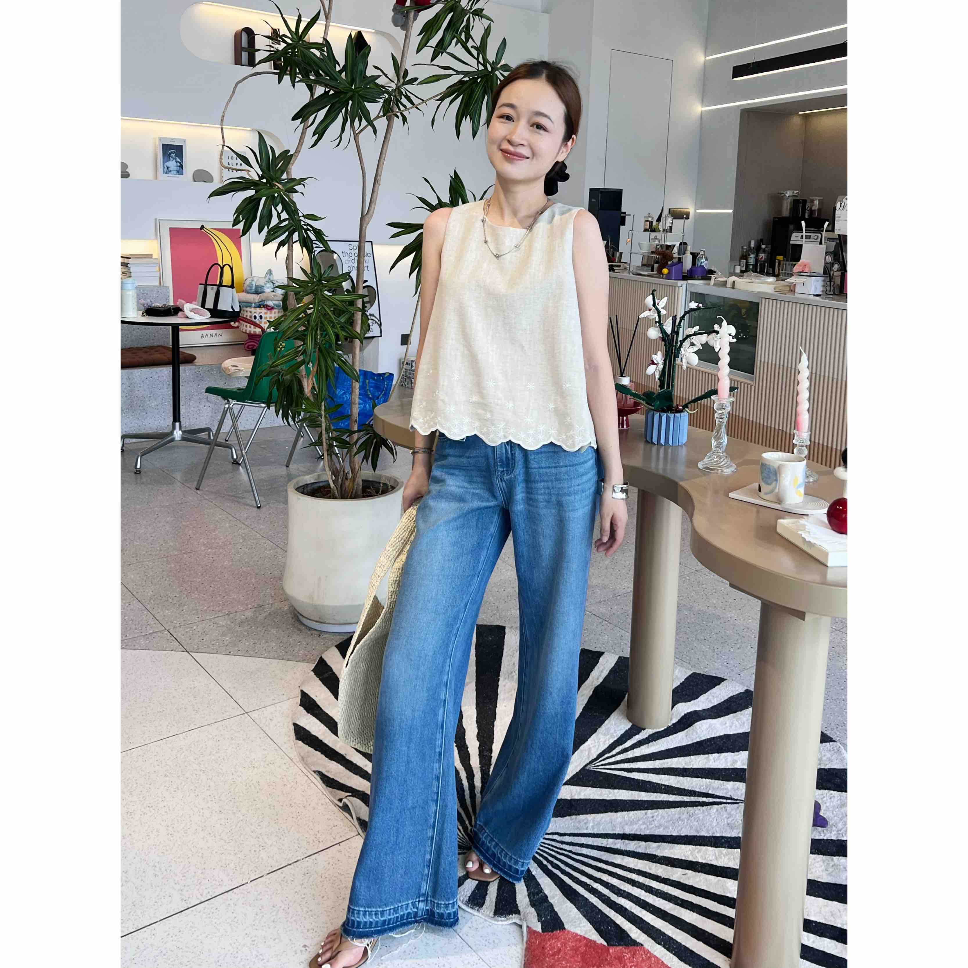 2603406 “绝”侧边立体刺绣🪡 牛仔裤,微阔腿