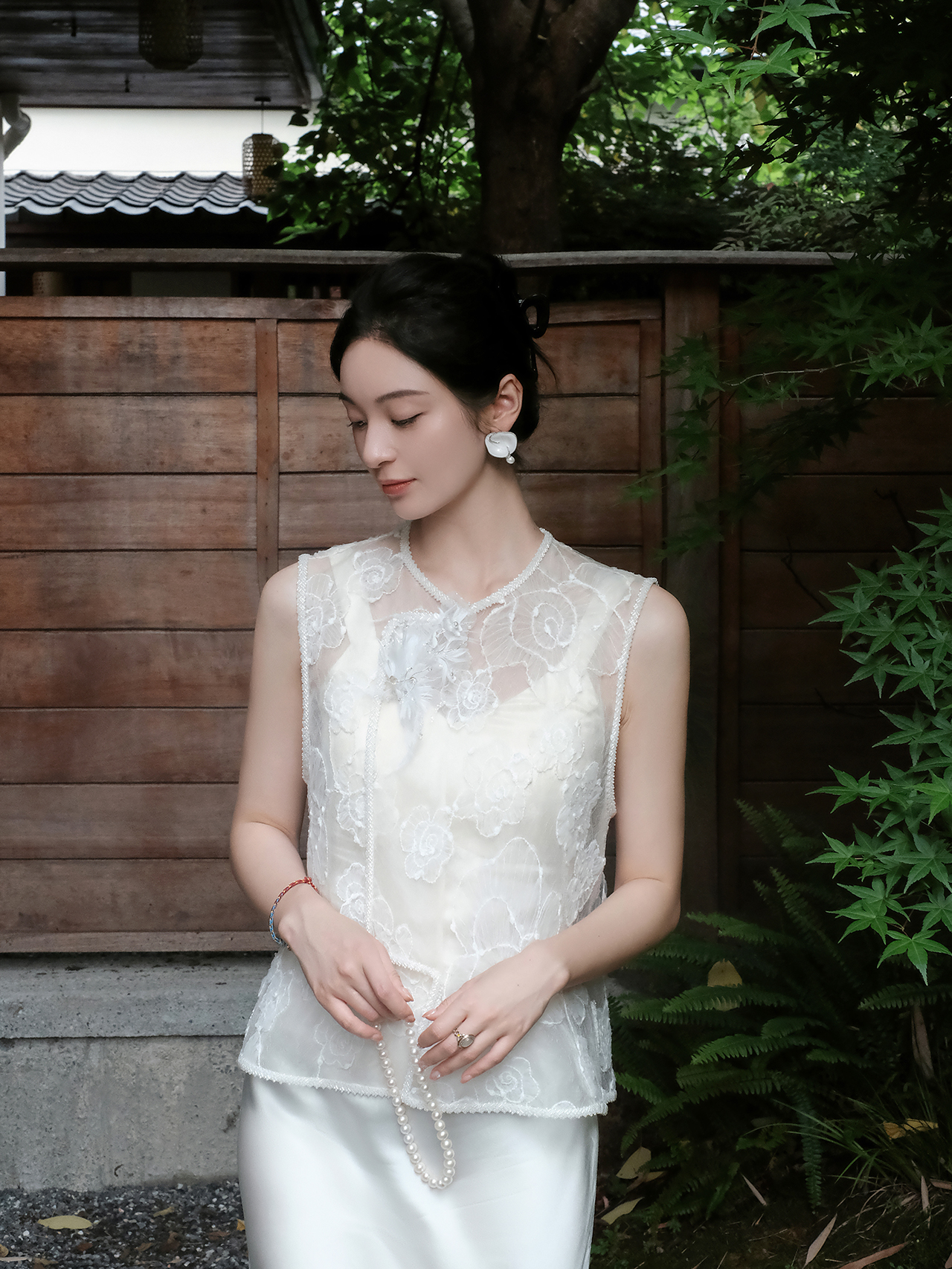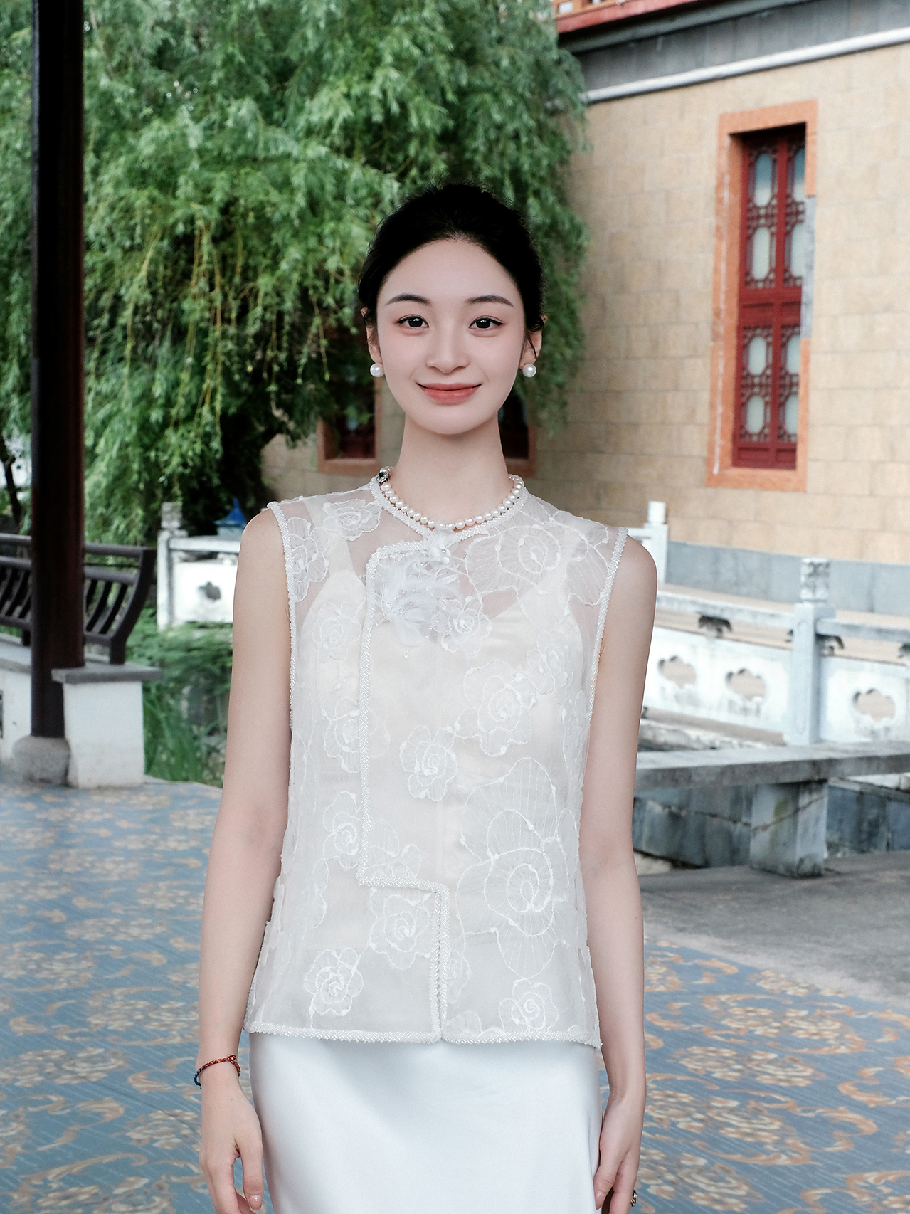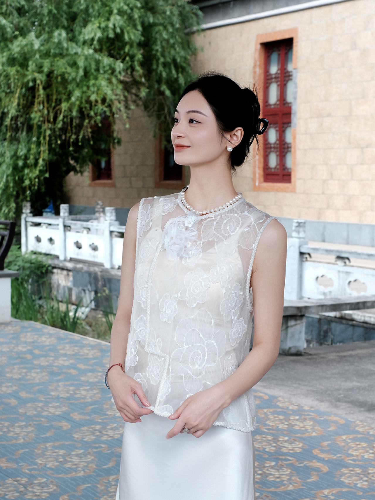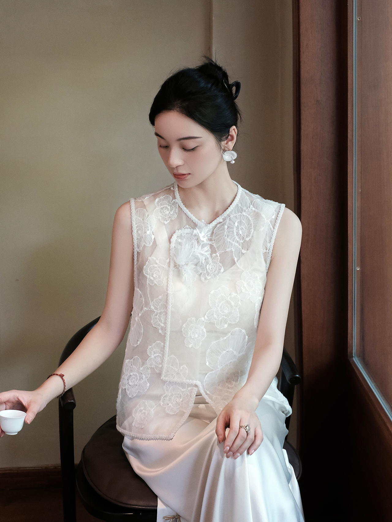 盛唐牡丹| 意大利进口网纱料偏襟马甲