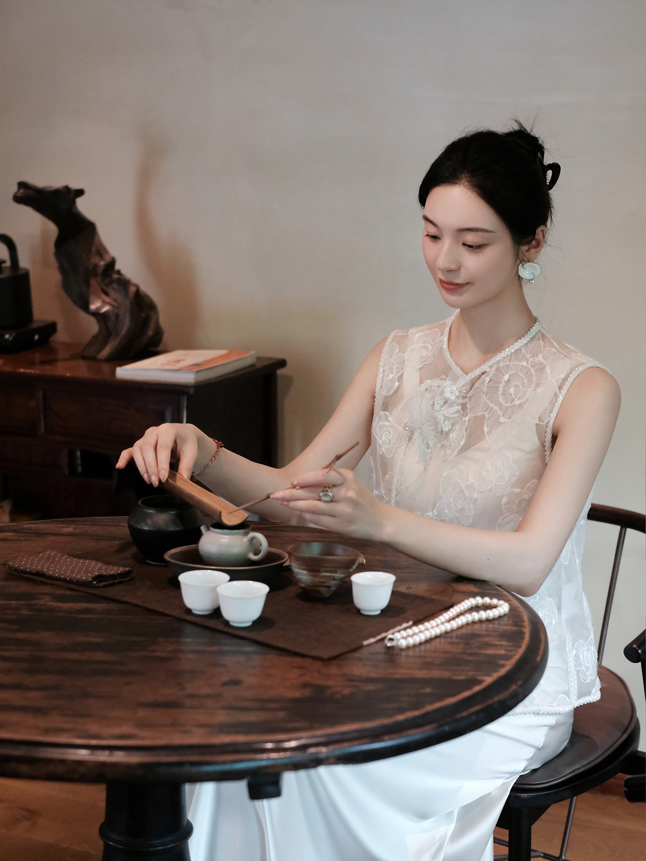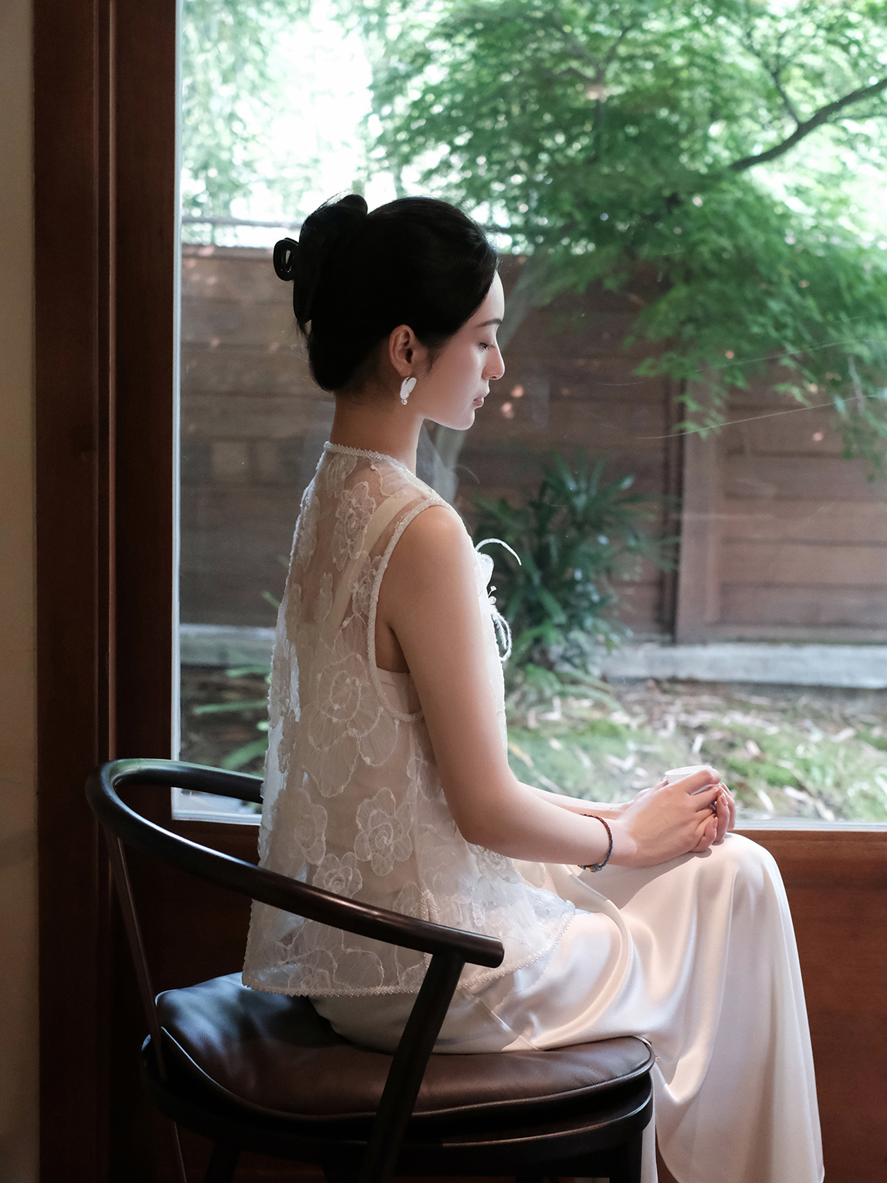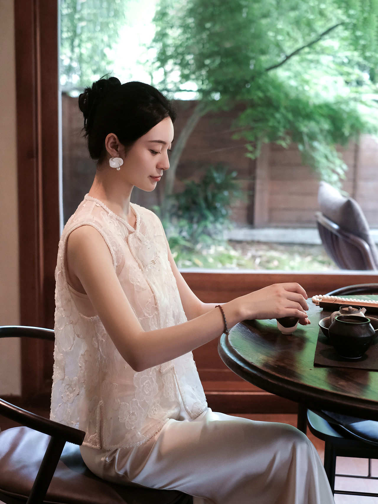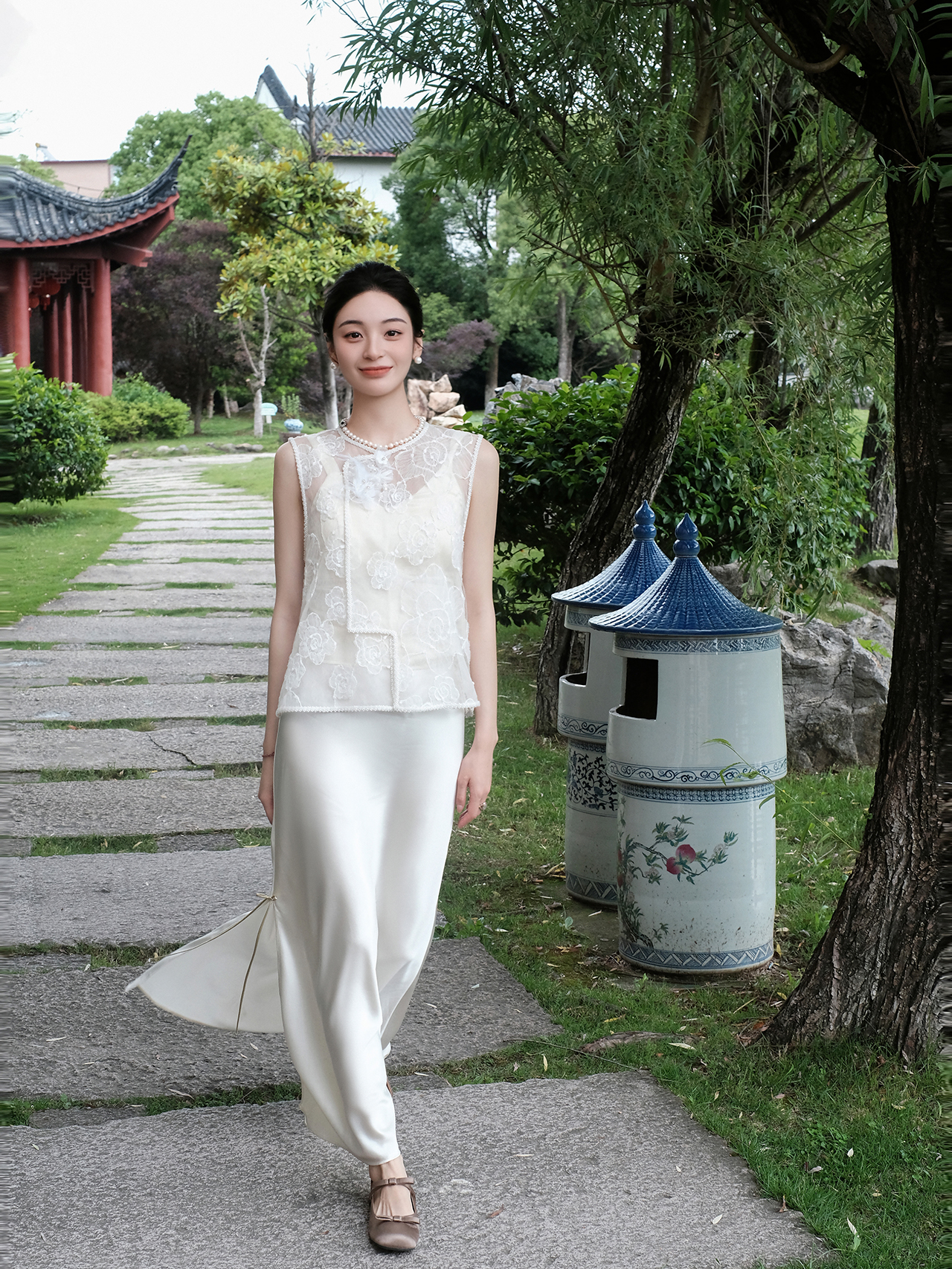 盛唐牡丹| 意大利进口网纱料偏襟马甲