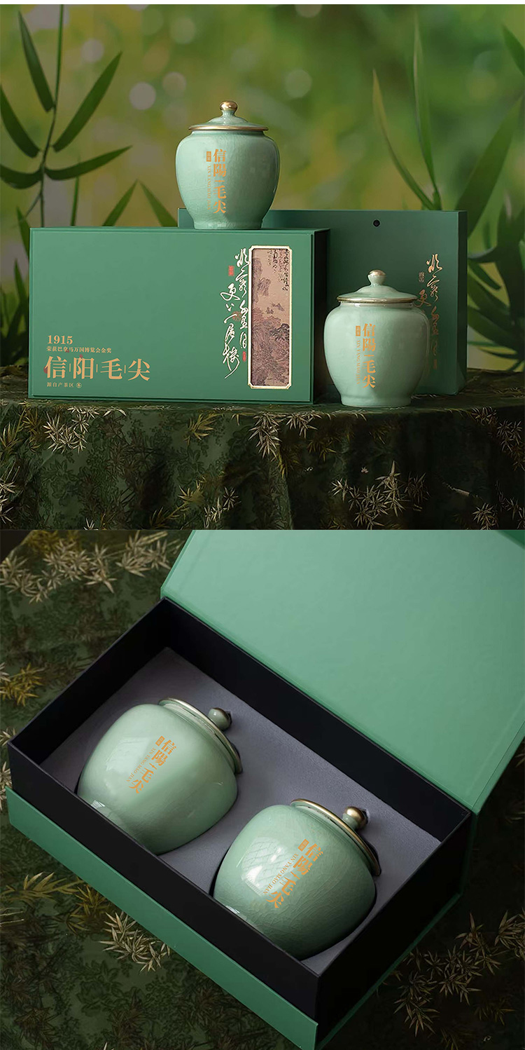 35元一套 / 一箱10套 更上一层楼【信阳毛尖 双瓷罐 】