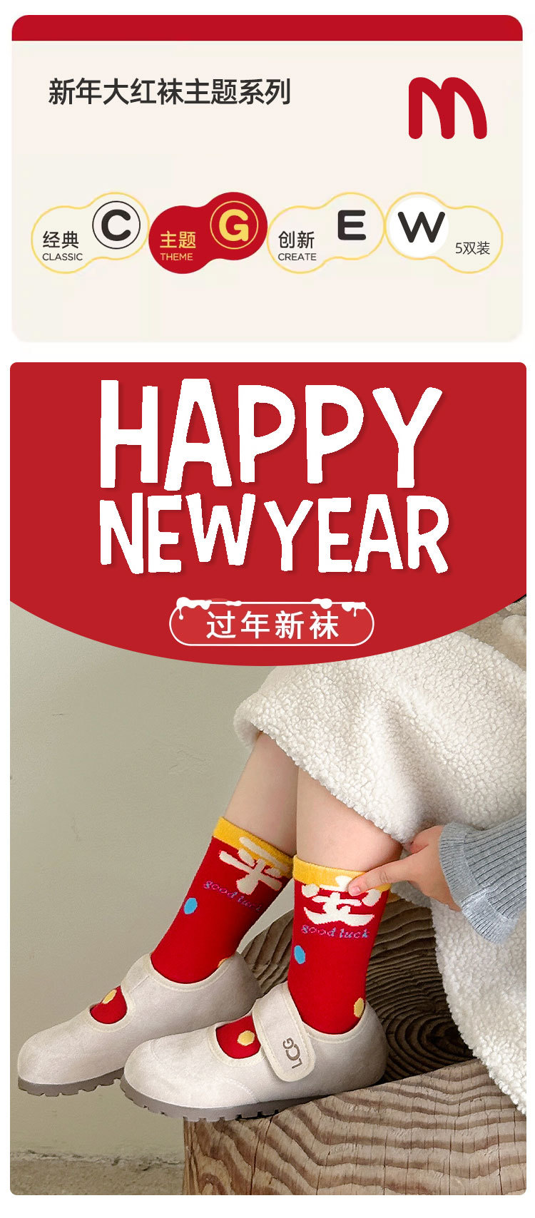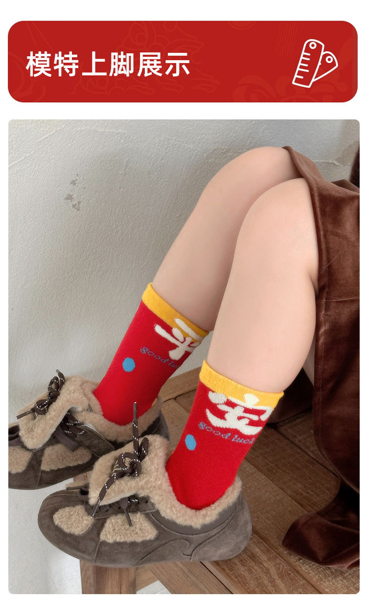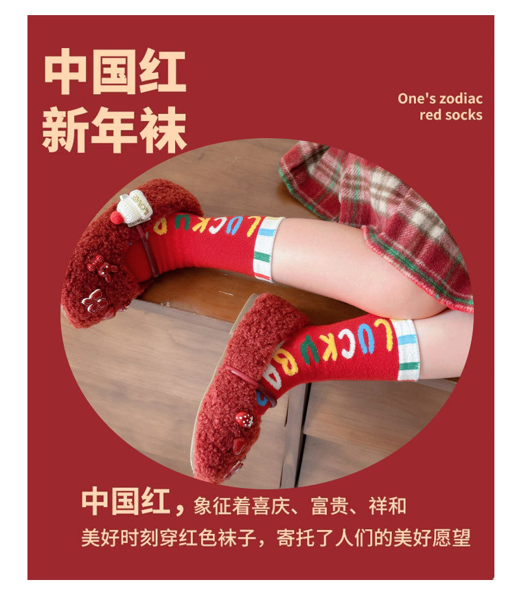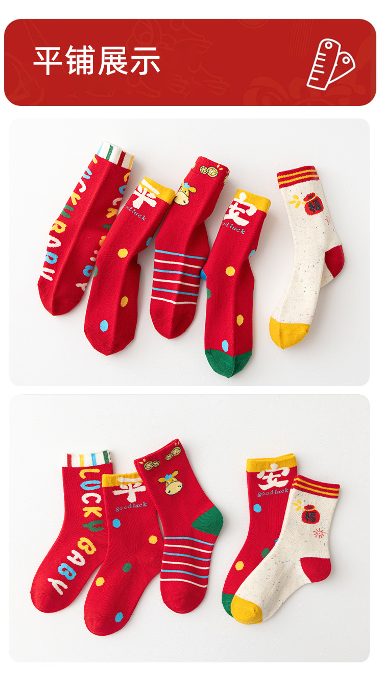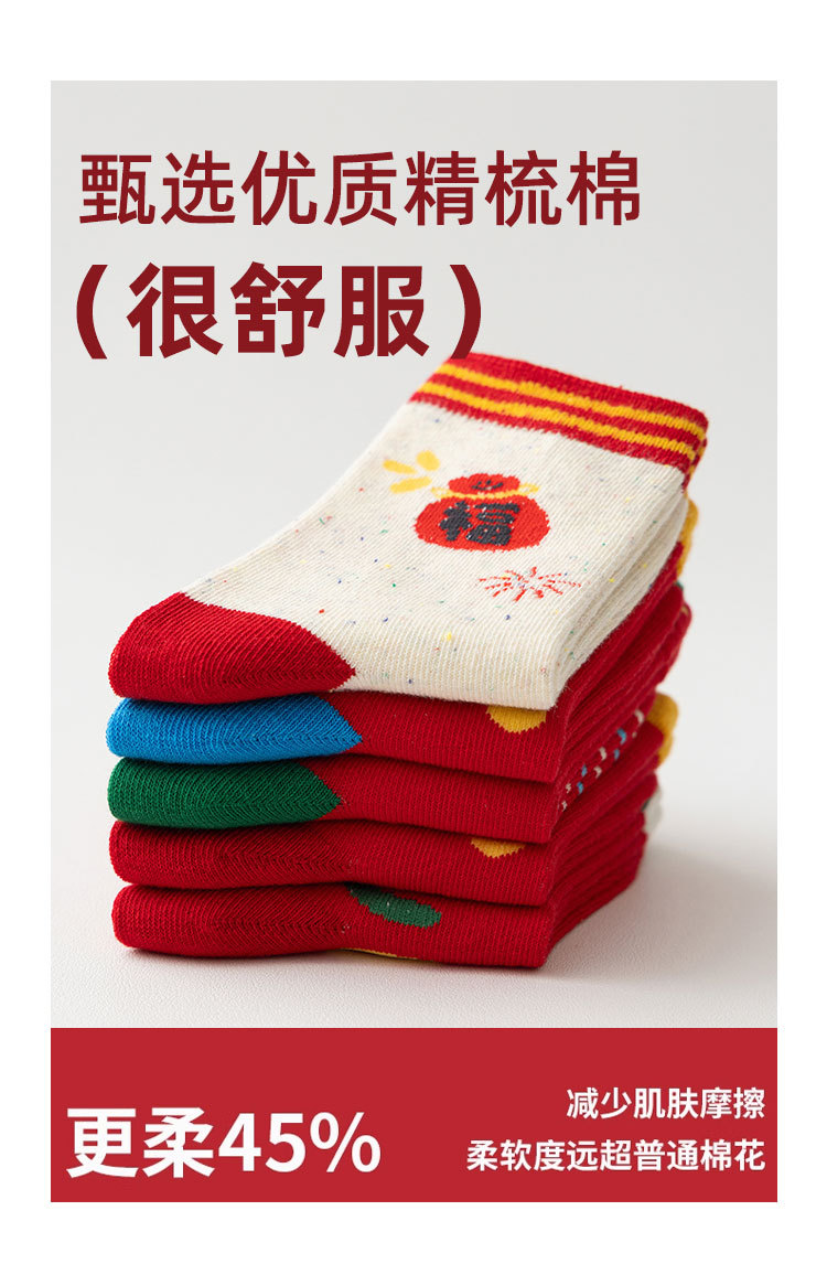 【马年限定❗️5双A类儿童新年袜】过年就得穿年袜,越走越顺,红袜相伴!红色中筒袜精梳棉无骨儿童袜子本命年男女童袜