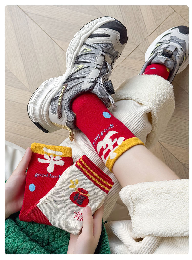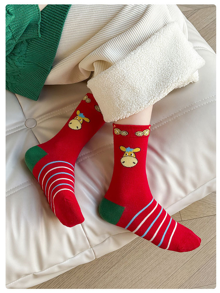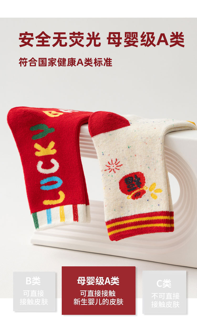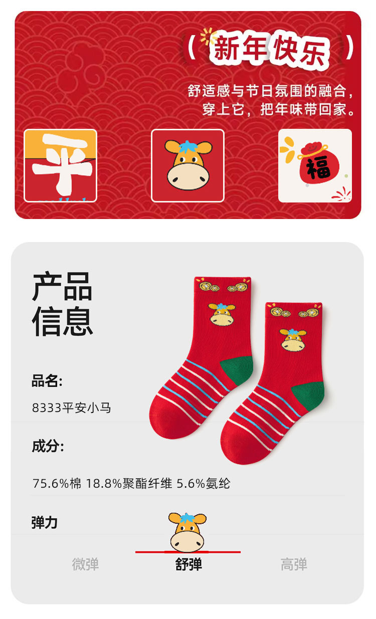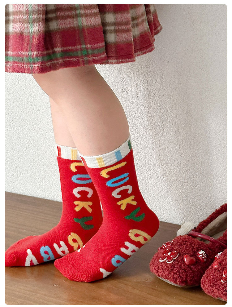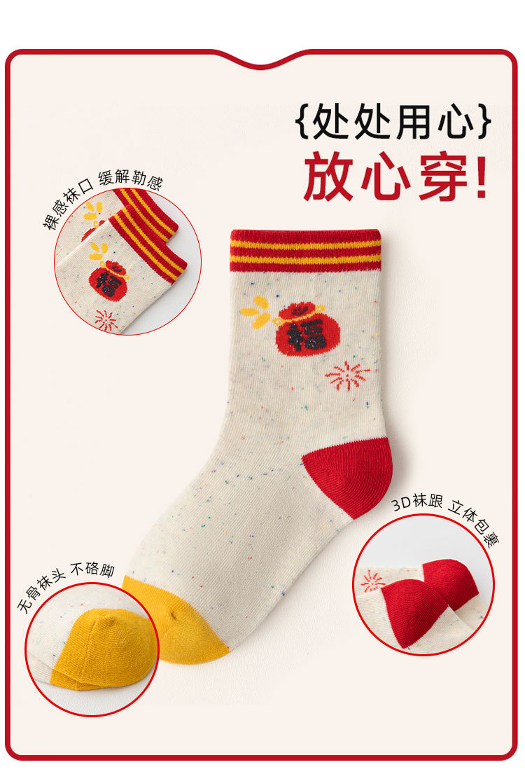 【马年限定❗️5双A类儿童新年袜】过年就得穿年袜,越走越顺,红袜相伴!红色中筒袜精梳棉无骨儿童袜子本命年男女童袜