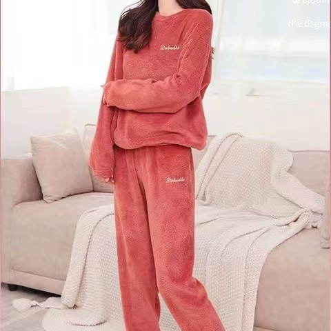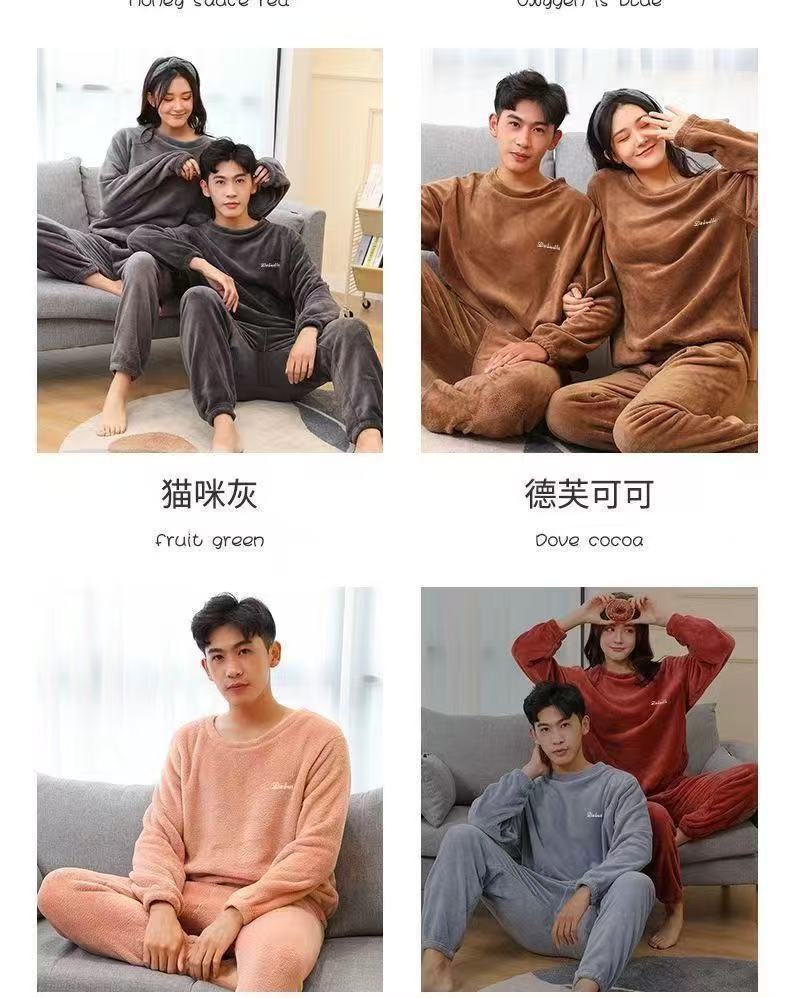 【柔暖舒适❗️珊瑚绒家居服套装】抵御寒冷,保暖蓄热,情侣仙女暖暖裤睡衣女冬季加厚秋可外穿宽松保暖长袖套装男生女生