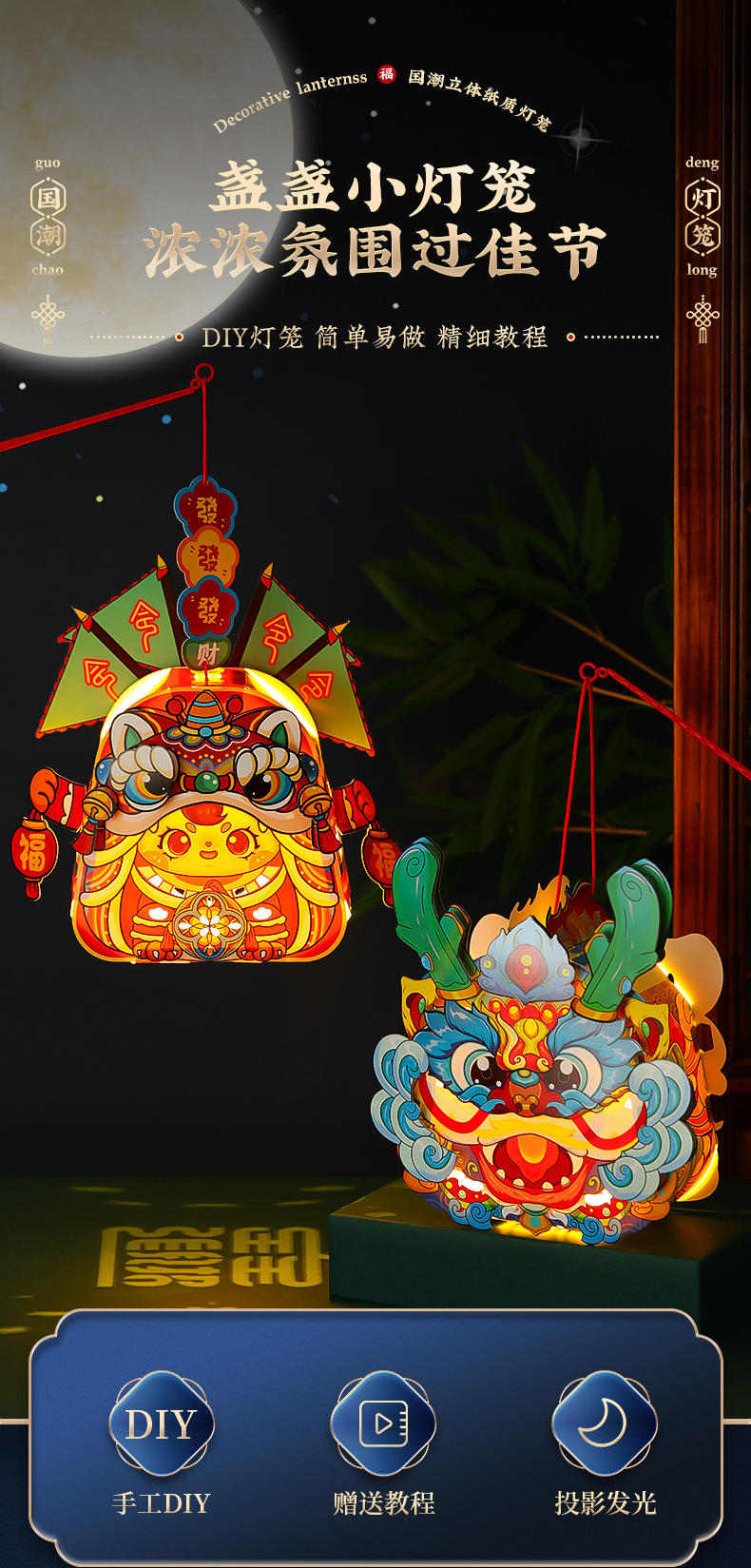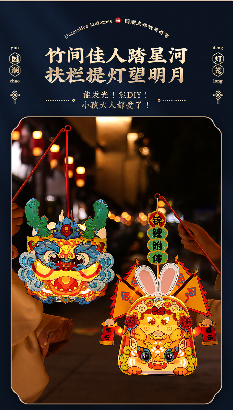 【让孩子趣玩 农农氛围过佳节】节灯笼 儿童手工diy走马灯 卡通兔子发光花灯