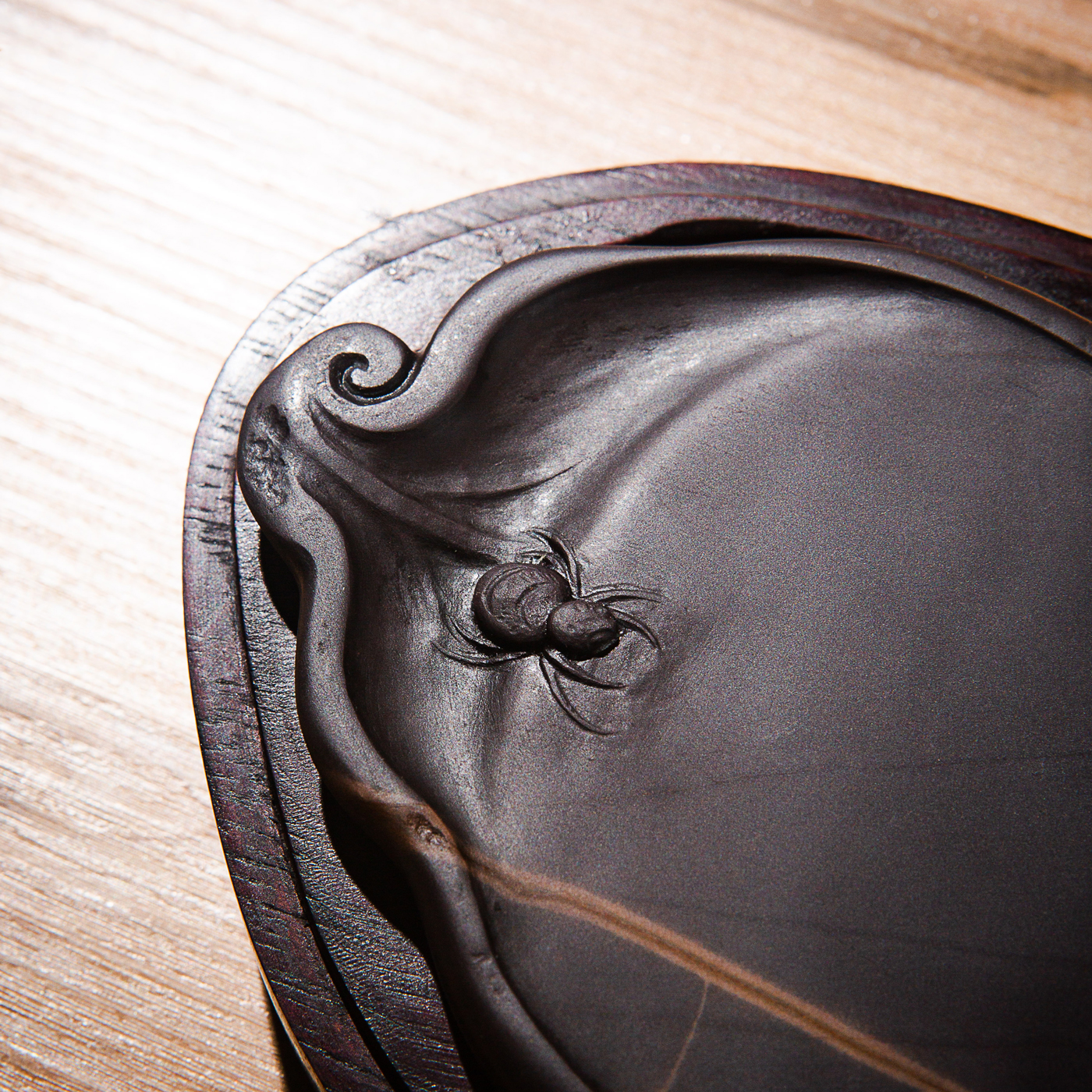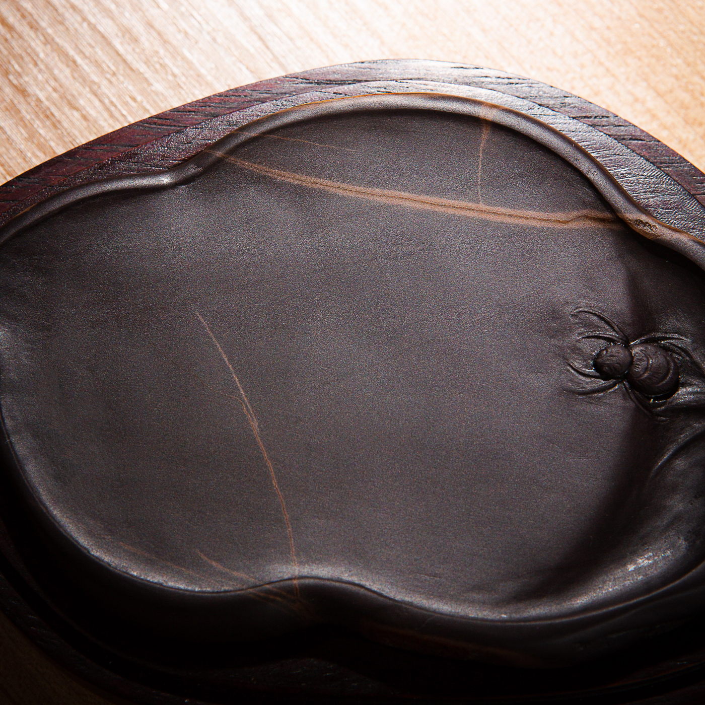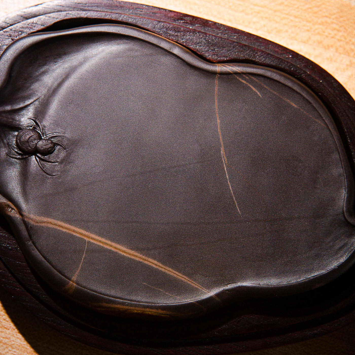 老坑端砚,质地温润,石品精美,雕工巧妙,文人气息浓郁,是案头之佳品。