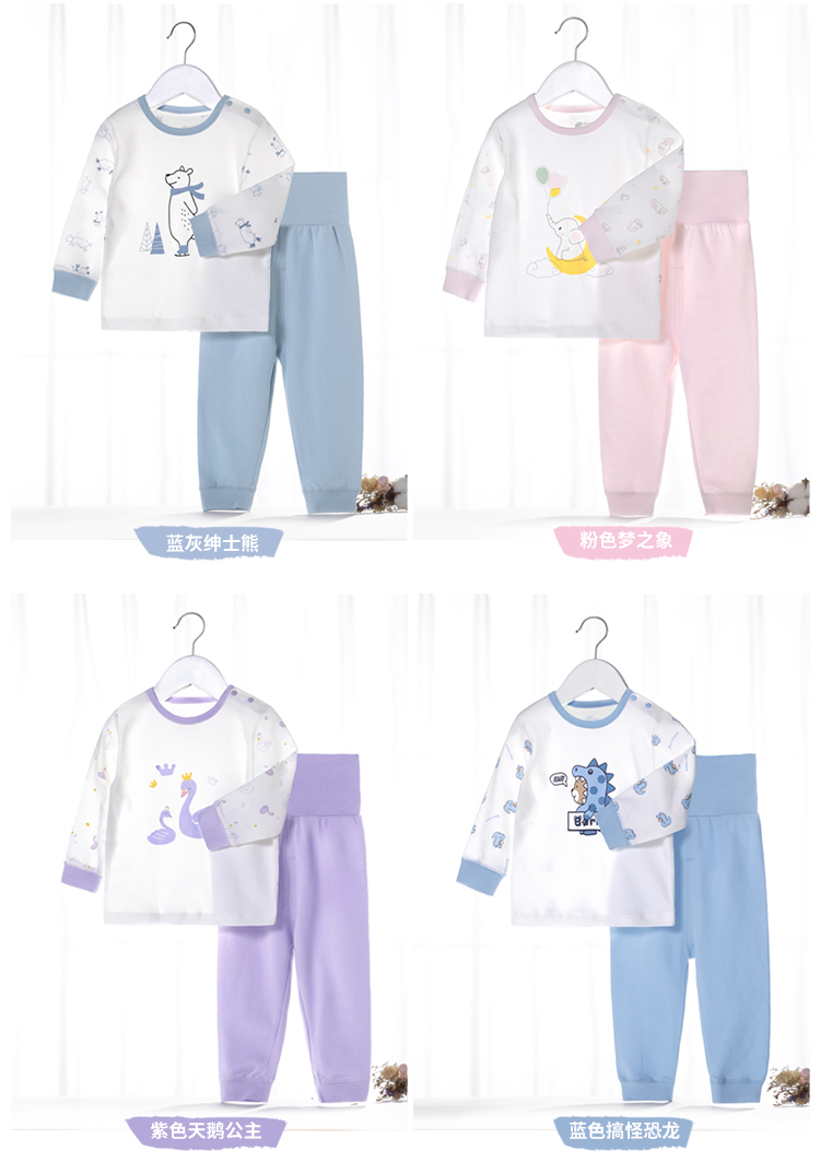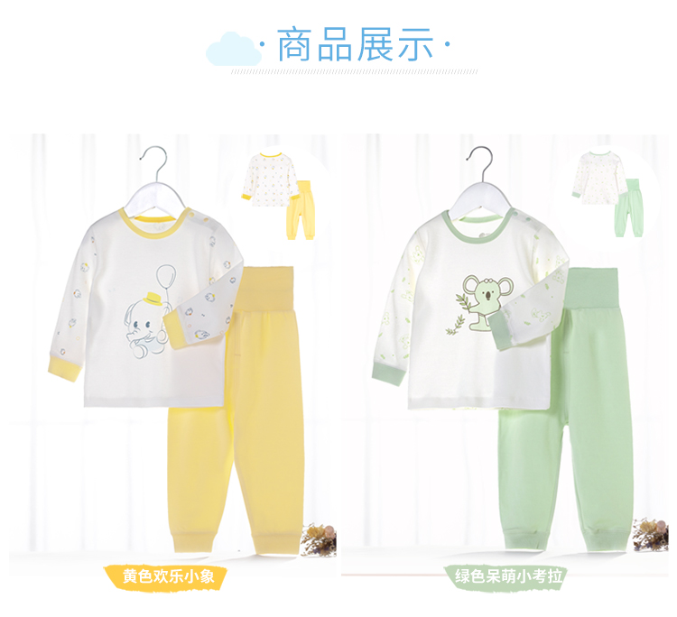 贝贝怡男童女童套装春秋薄款长袖分体宝宝高腰家居服空调服203T2161