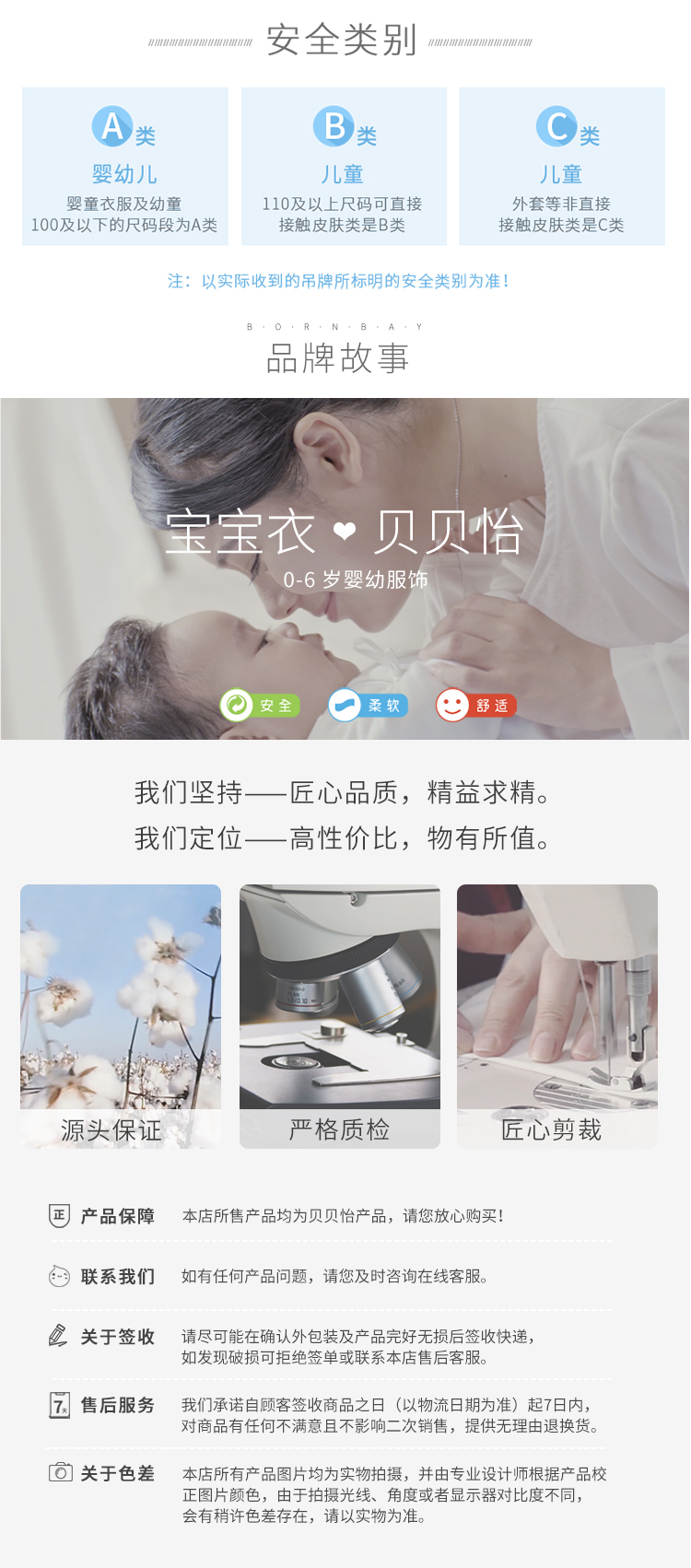 - 贝贝怡专注0-6岁婴幼儿服饰,坚持安全、柔软、舒适的产品理念,为千万中国家庭提供超高品质、安全可靠的婴幼儿服饰产品,妈妈放心,宝宝开心!