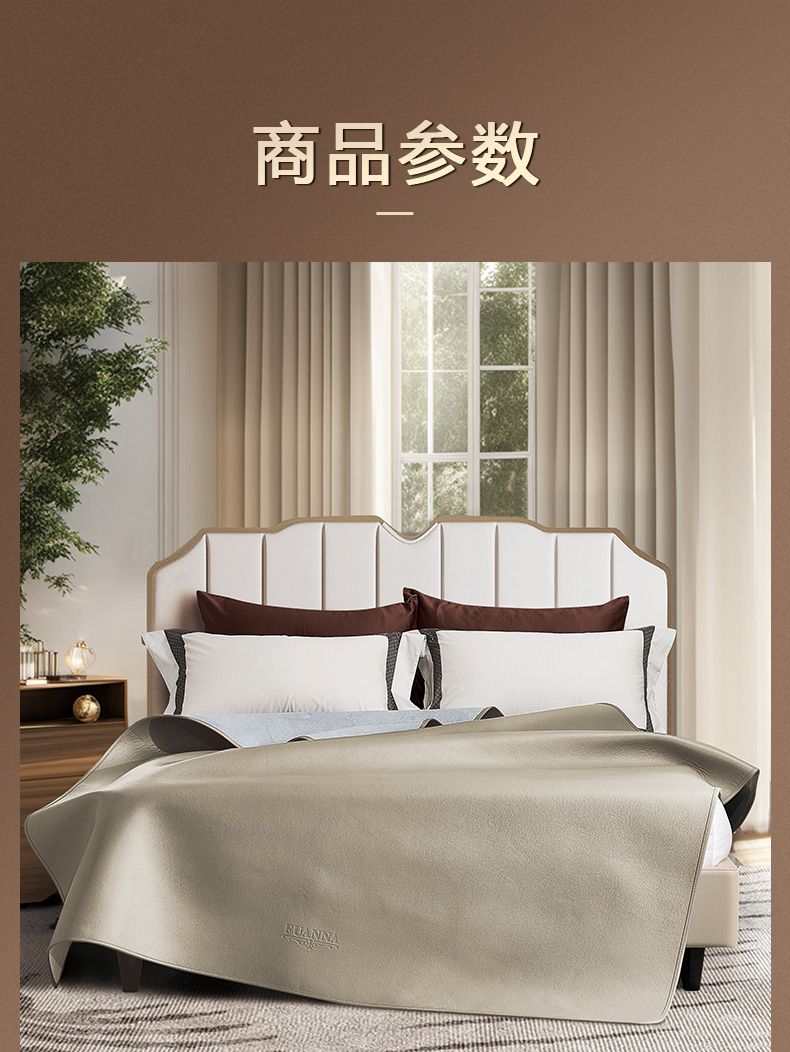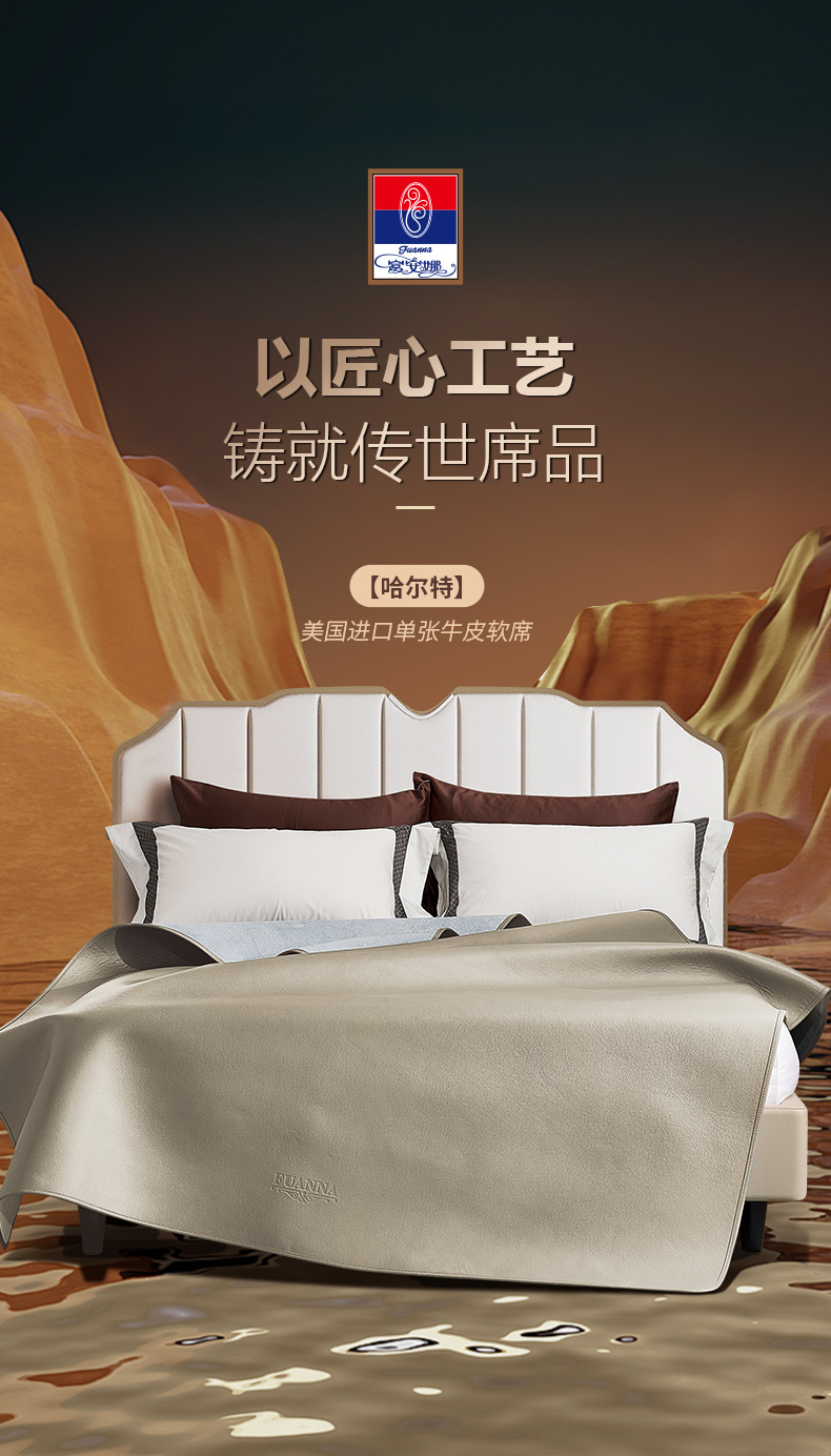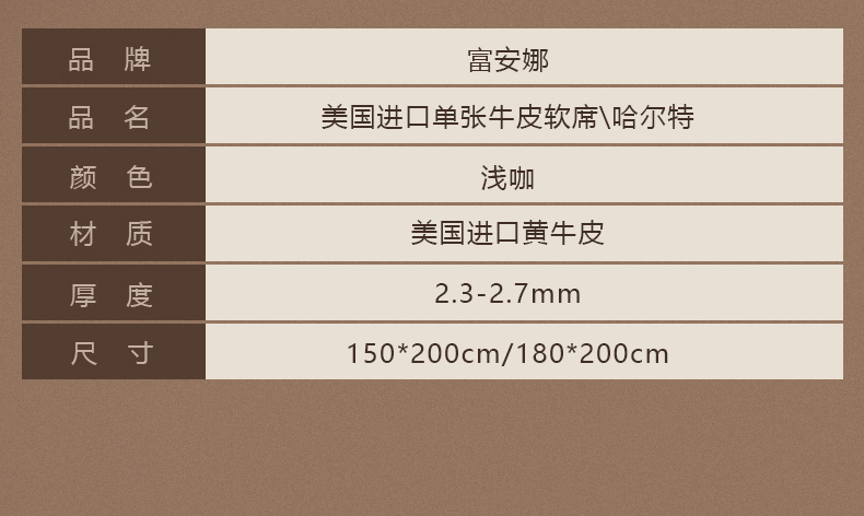 【6楼爆品购牛皮席赠送凉感冰冰夏被】富安娜美国进口单张牛皮软席\哈尔特,浅咖,吊牌价15800