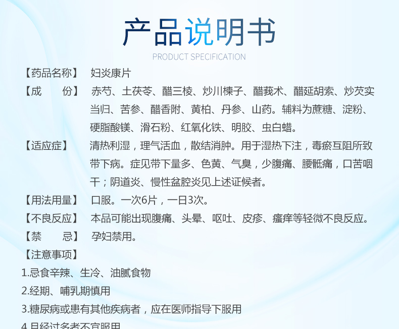 德鑫 妇炎康片 100片阴道炎色黄慢性盆腔炎带下量多异味妇科炎症