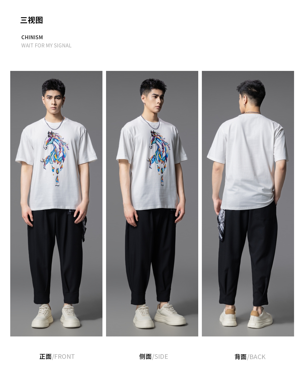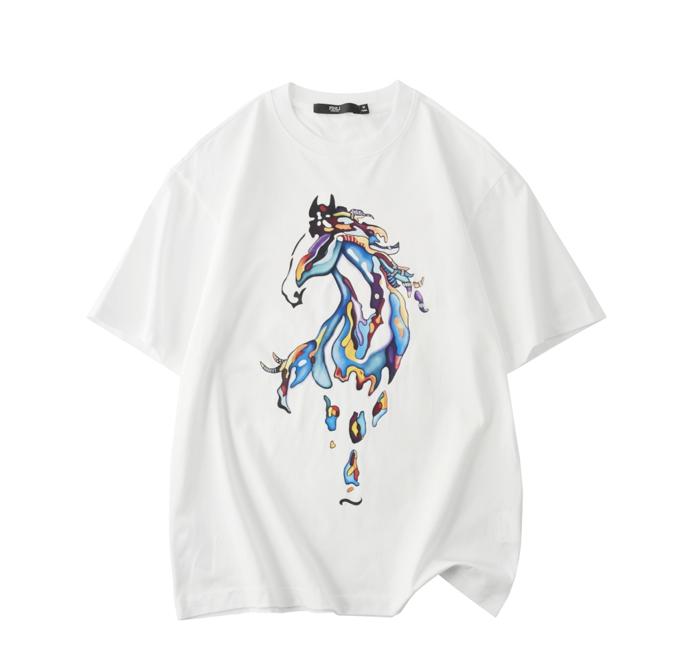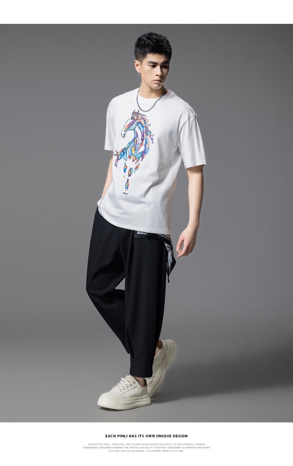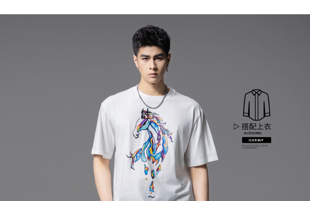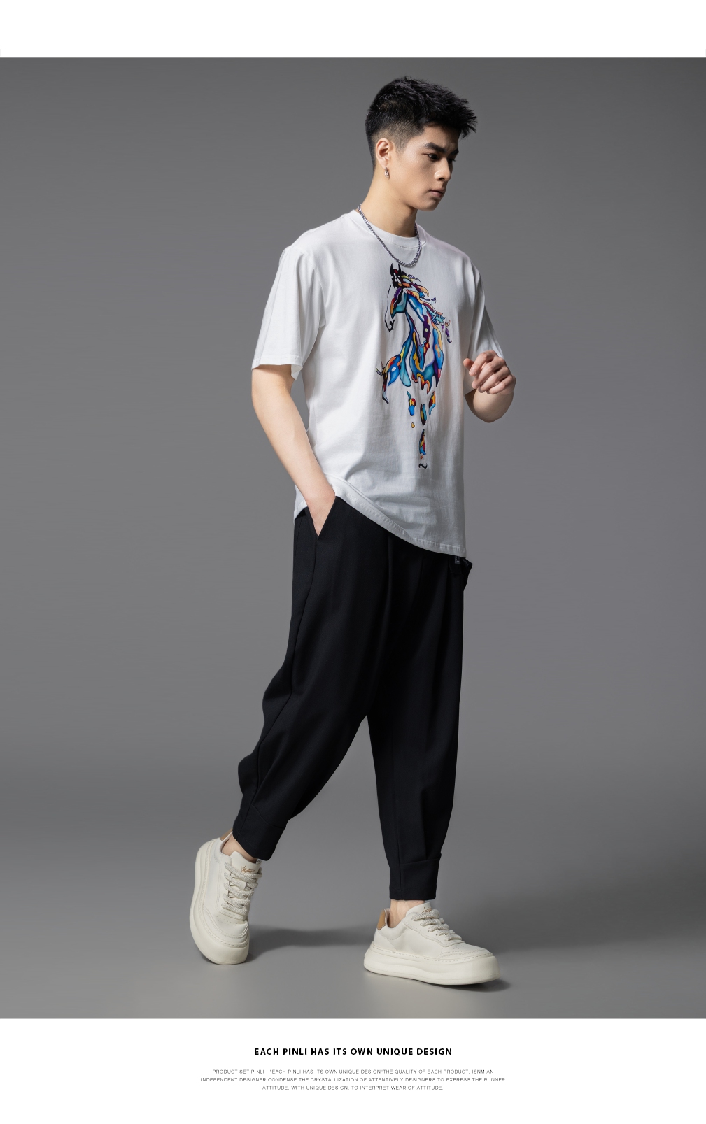 PINLI品立2025夏季新款彩色骏马烫画短袖T恤男士国潮休闲百搭上衣BG252111021