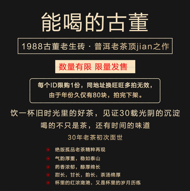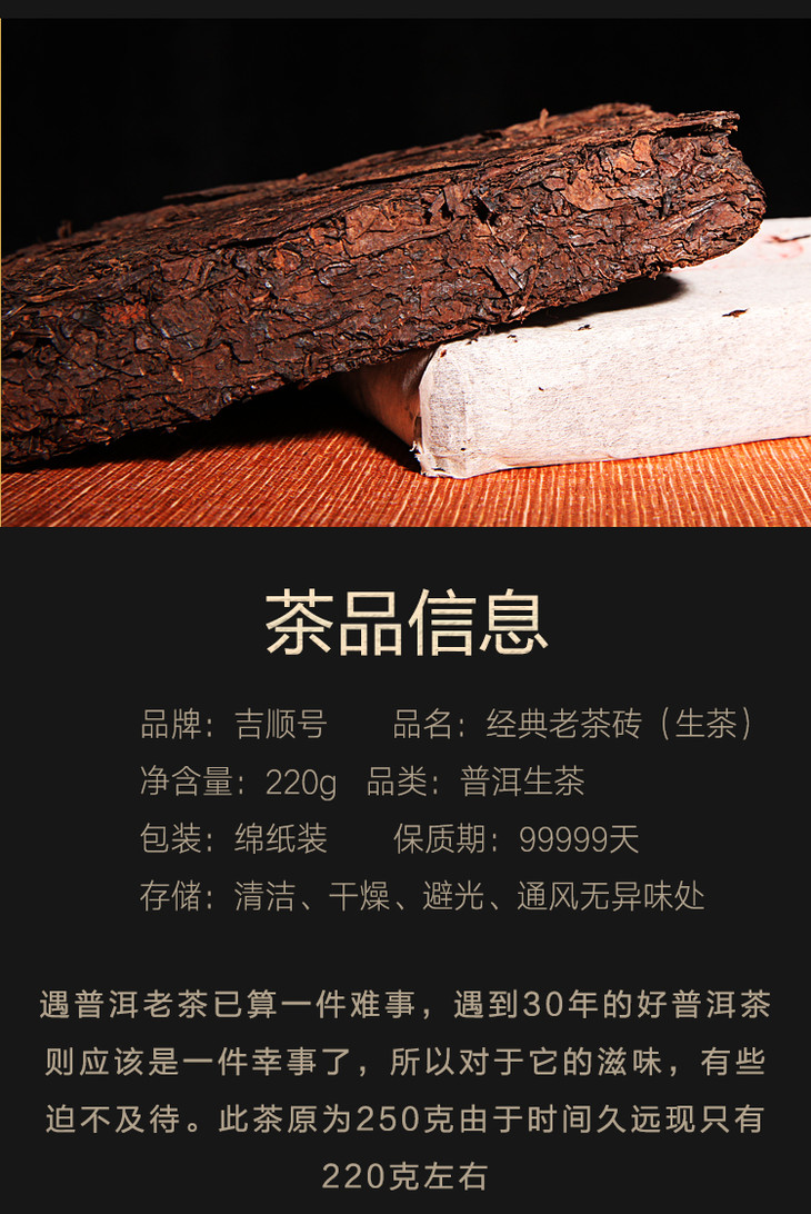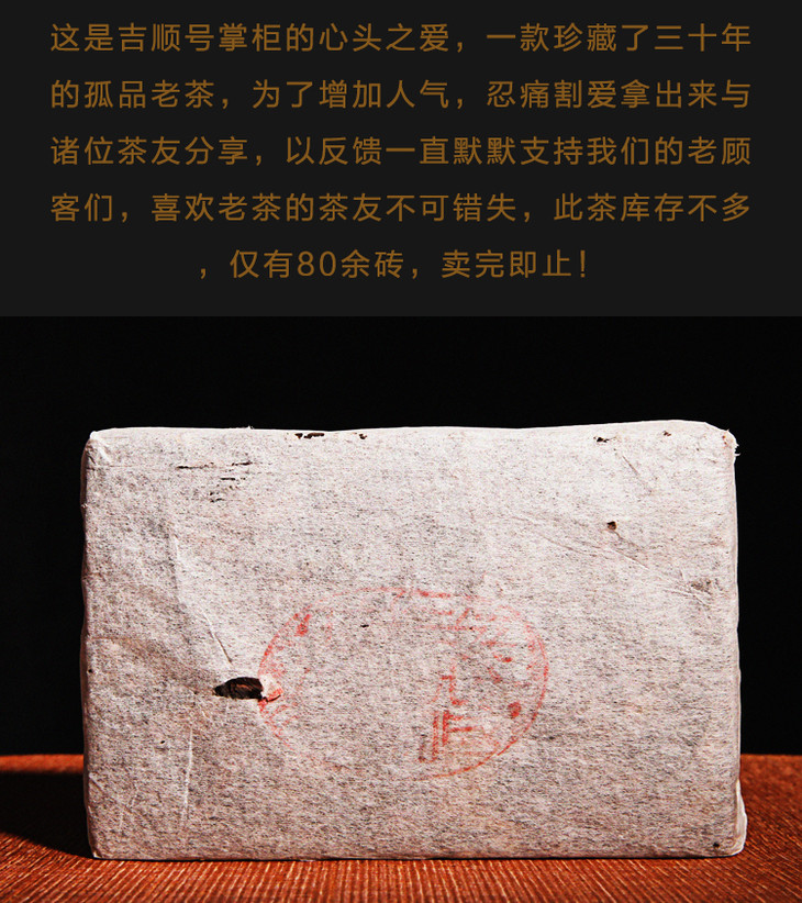 干仓老茶-吉顺号1988老生砖 30年药香老生茶220克