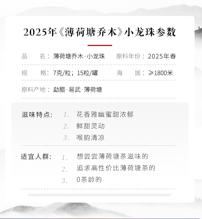 2025《薄荷塘乔木》春茶小龙珠 7克*15颗 普洱生茶
