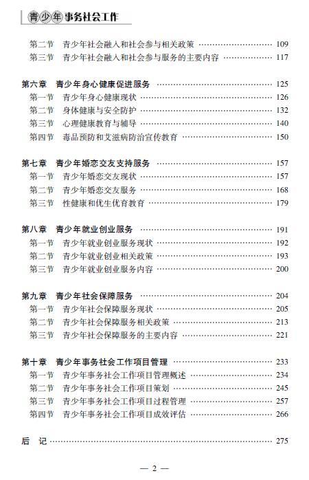 《青少年事务社会工作》是以青少年为对象,整合运用社会工作专业价值、理论、方法和技巧,协助其提升解决问题的能力,恢复、改善及提高其社会功能,促进其健康成长和全面发展的社会服务活动。本书是“青少年事务社会工作发展丛书”中的一本,共分十章,分别介绍了青少年事务社会工作概述、青少年思想道德教育、青少年权益维护服务、青少年违法犯罪预防与矫治服务、青少年社会融入和社会参与服务、青少年身心健康促进服务、青少年婚恋交友支持服务、青少年就业创业服务、青少年社会保障服务、青少年事务社会工作项目管理。该书内容详实,贴合实际,适合青少年社会工作从业人员阅读使用。
