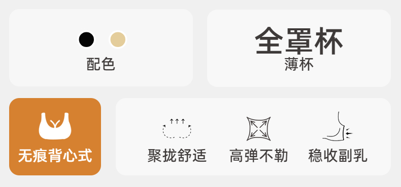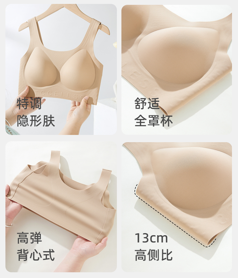 雅黛俪女士背心式文胸粉底液隐形肤色无痕内衣反重力提拉聚拢全罩杯胸罩