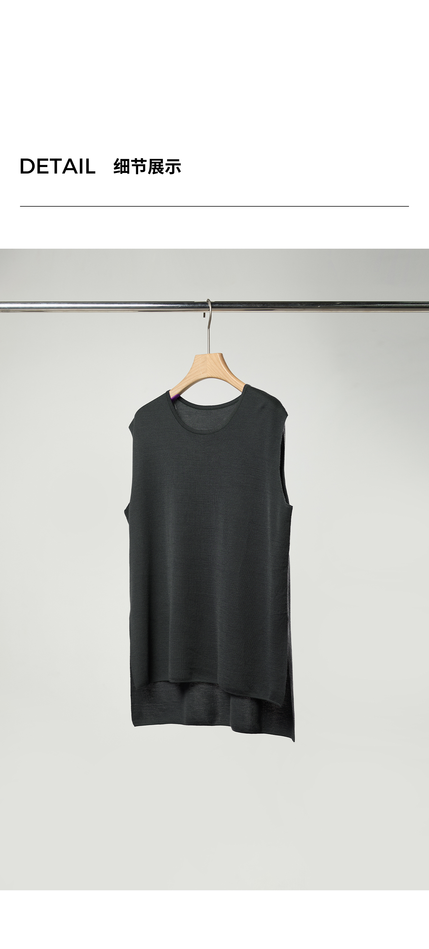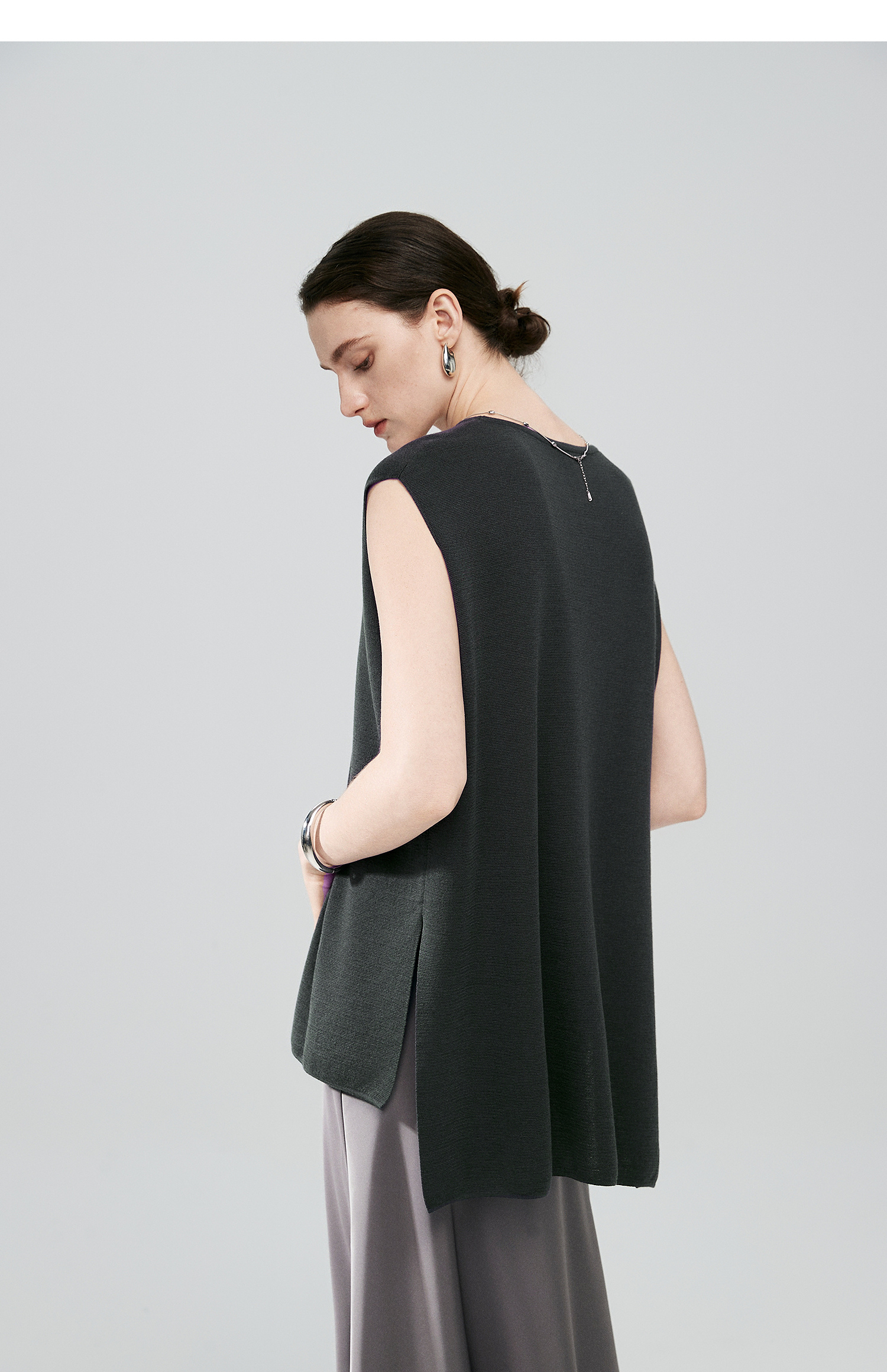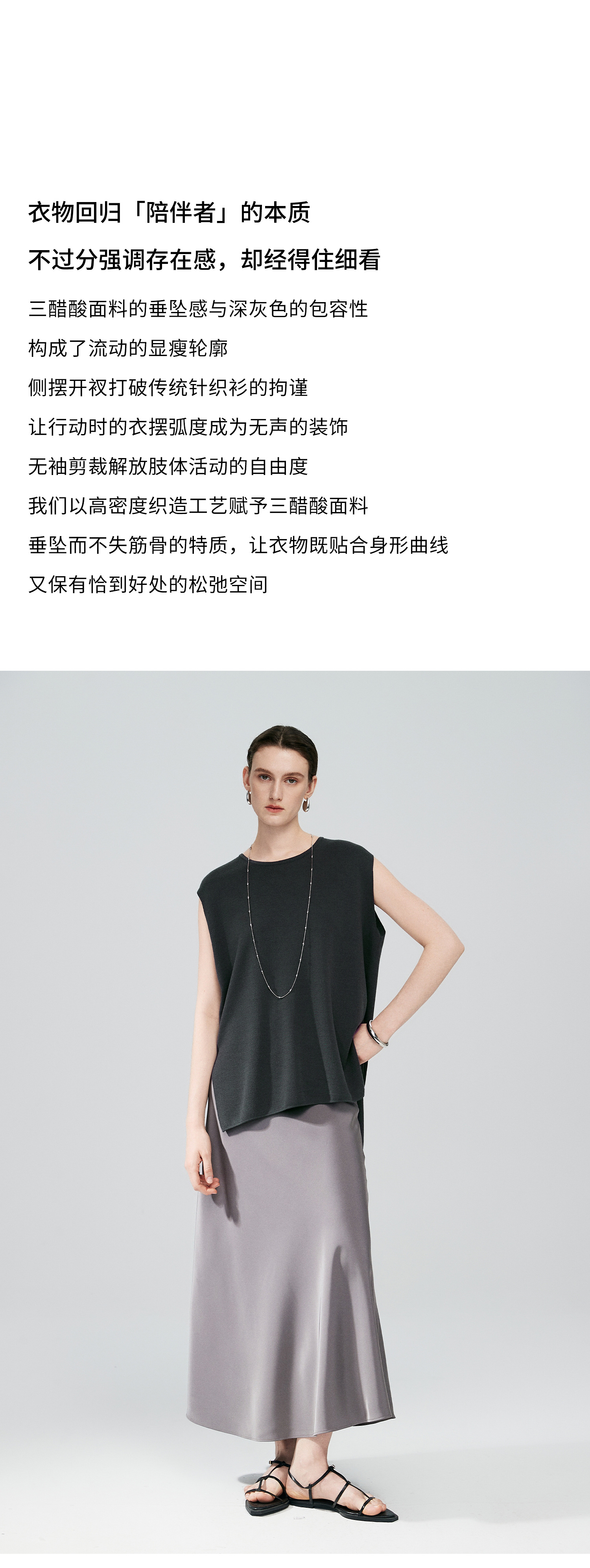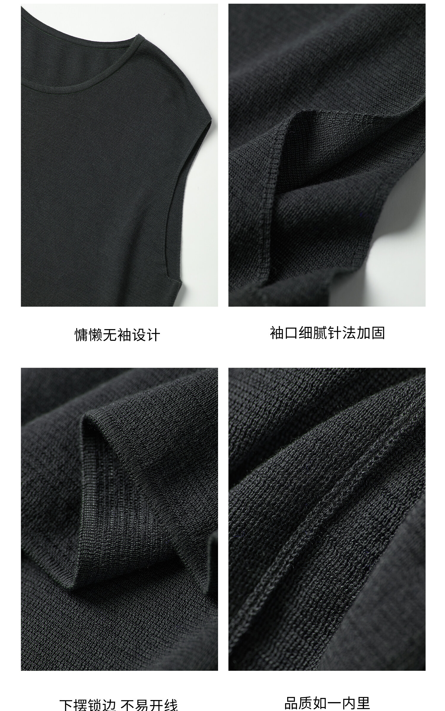 棉仓363635018-初棉25春夏三醋酸无袖开叉显瘦针织衫女