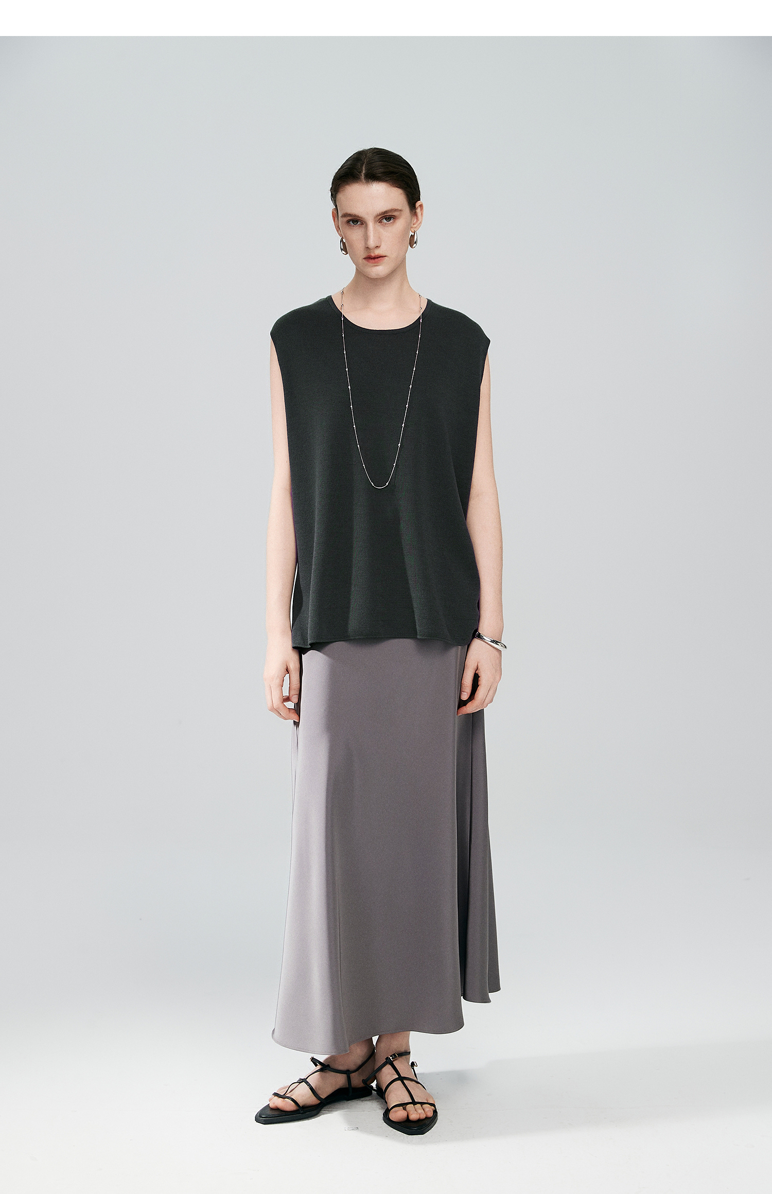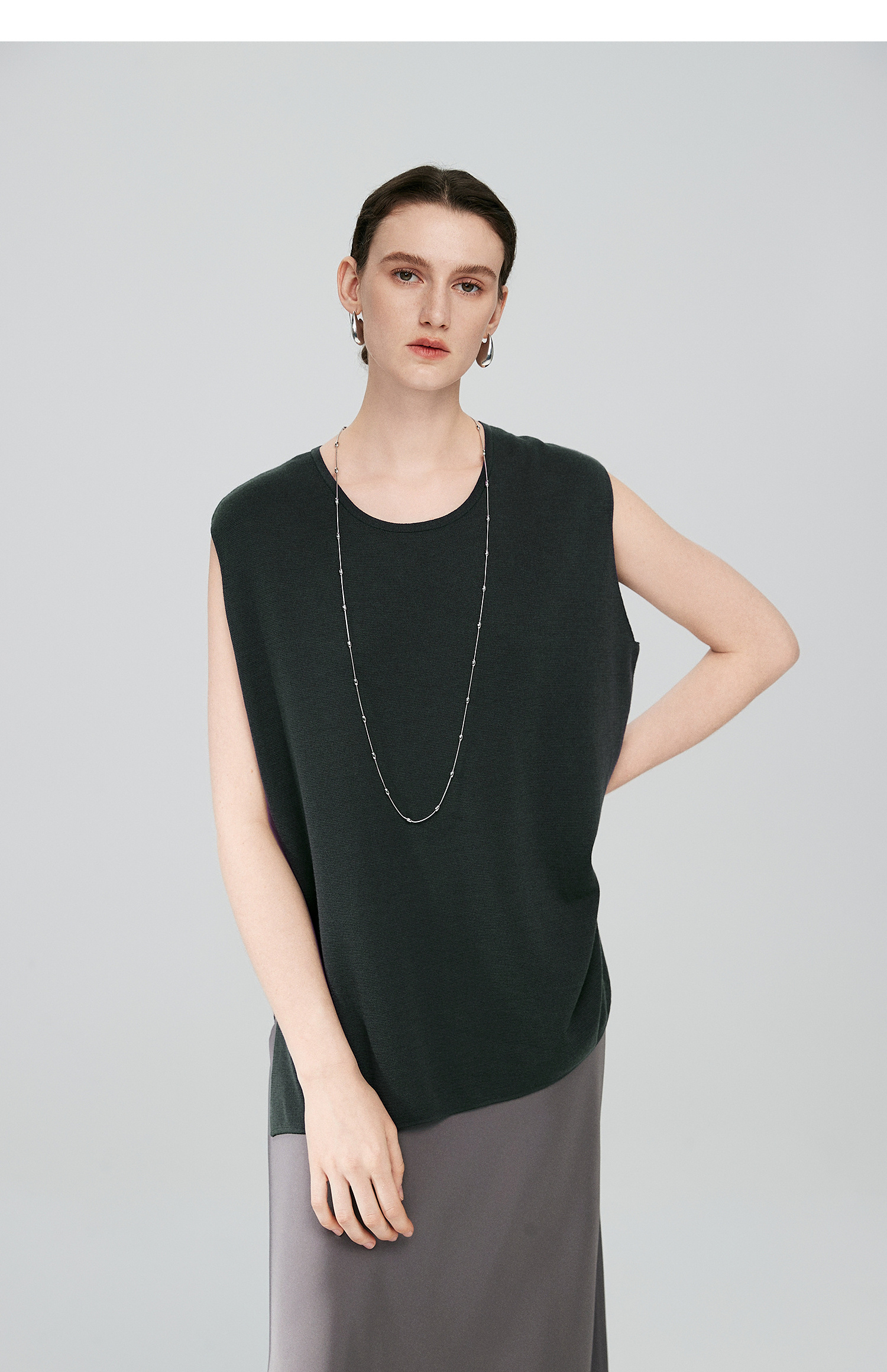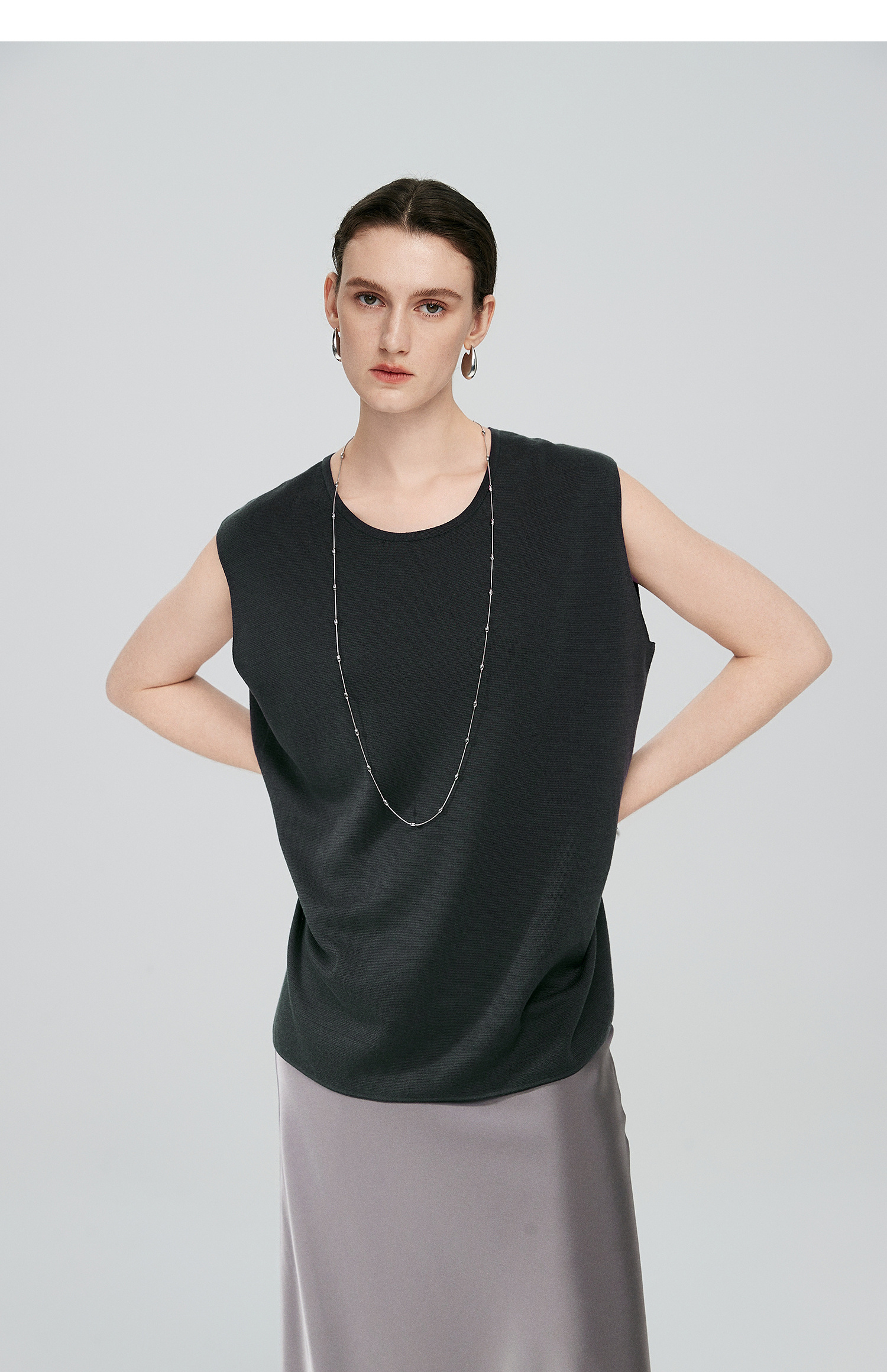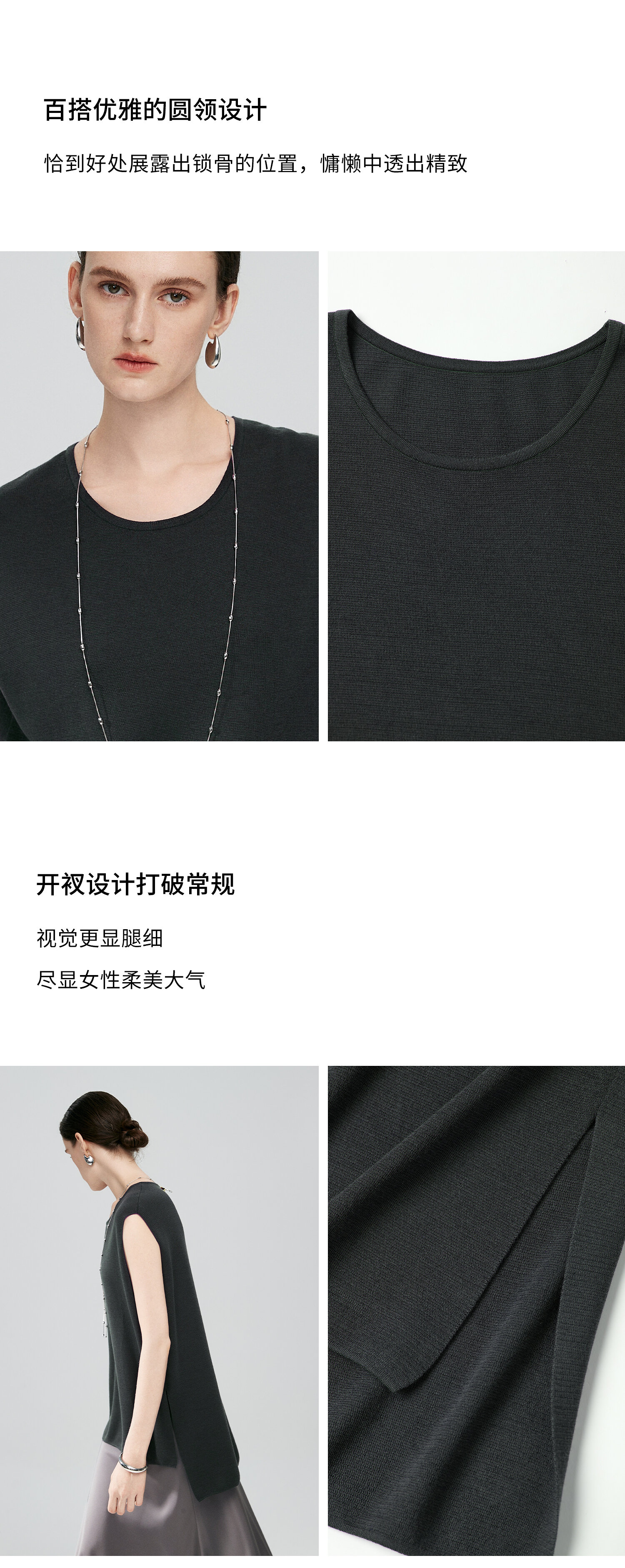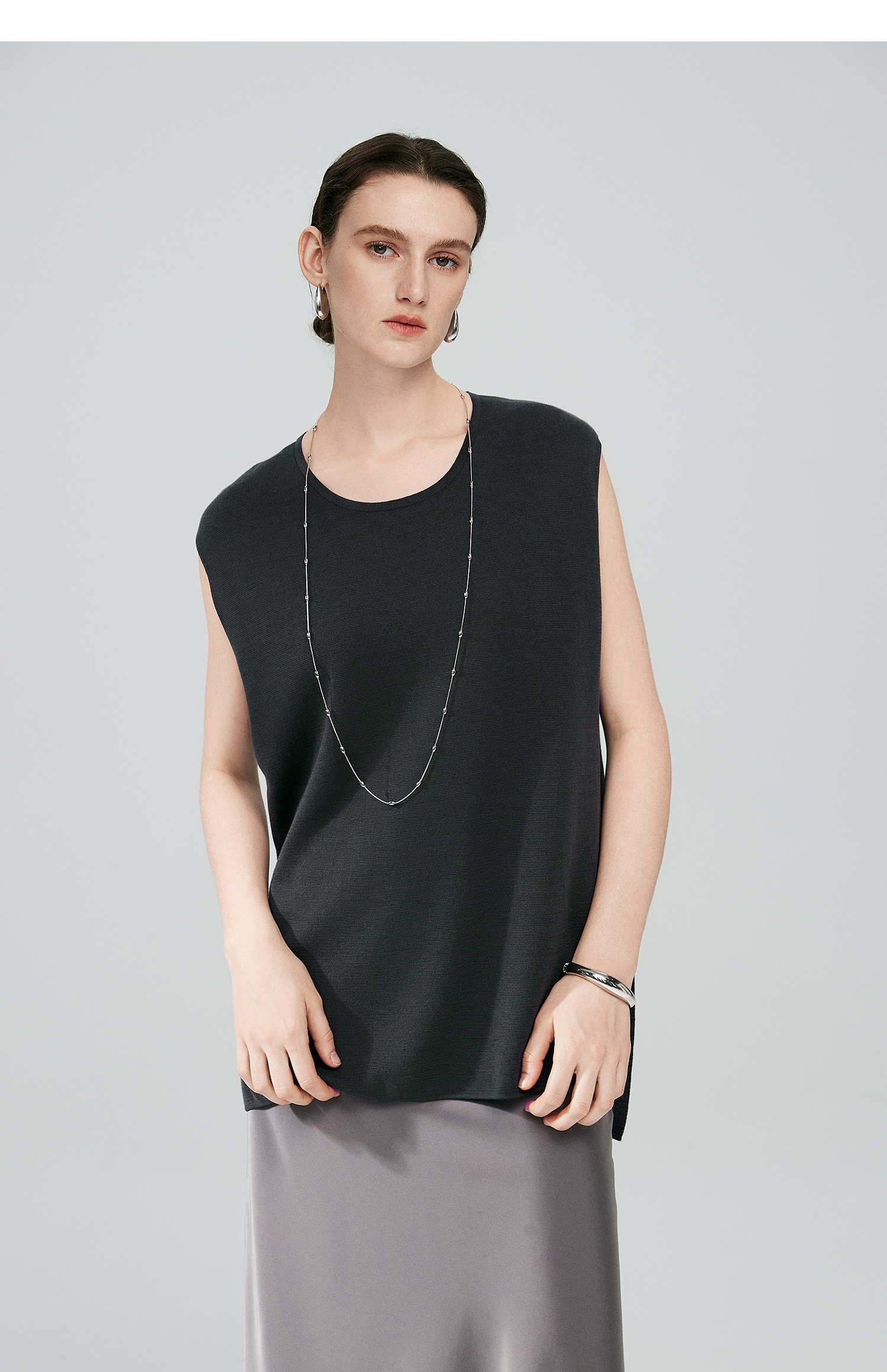 棉仓363635018-初棉25春夏三醋酸无袖开叉显瘦针织衫女