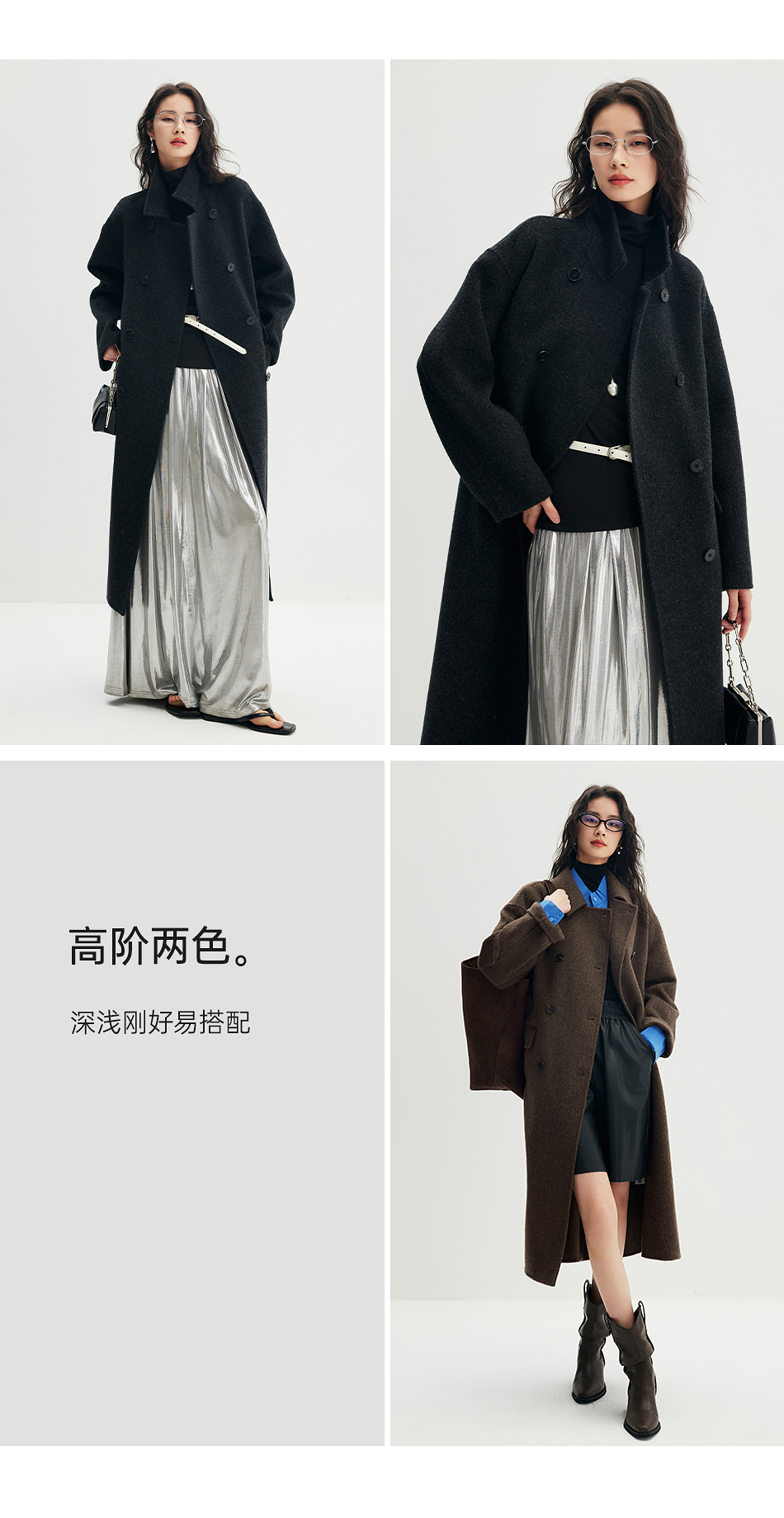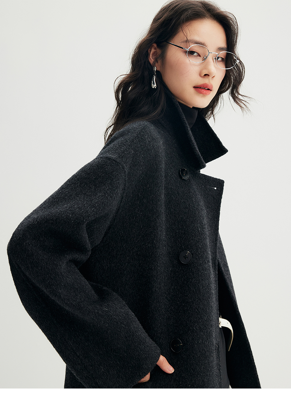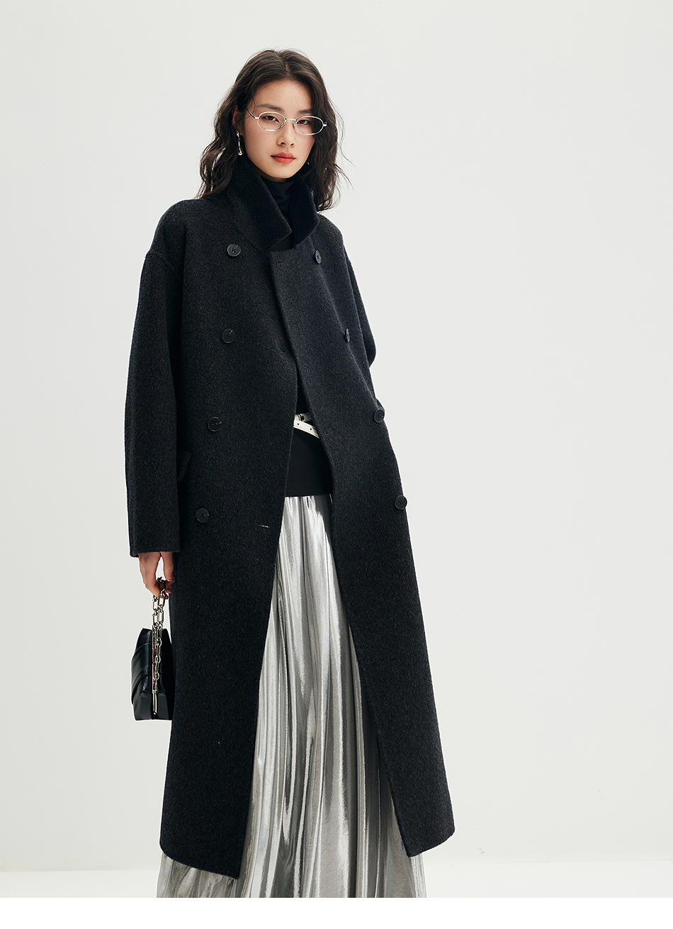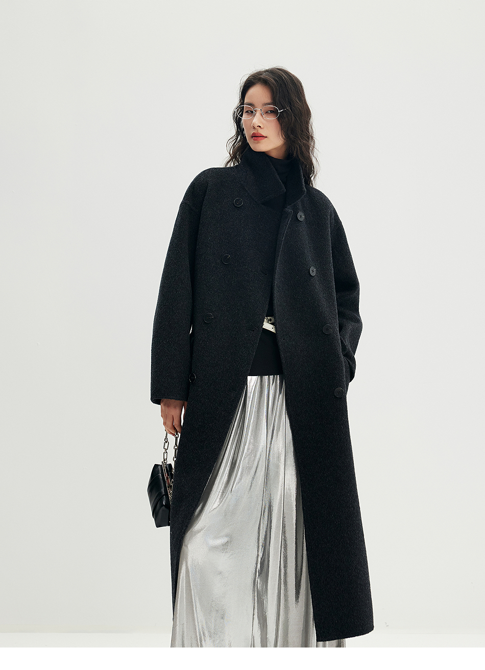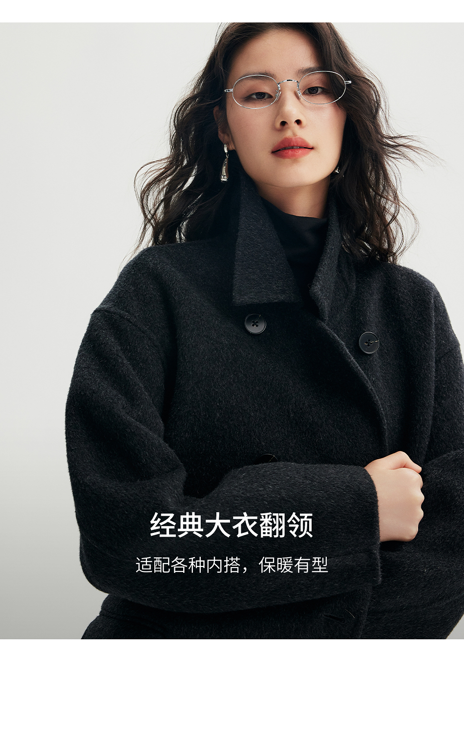 棉仓356666006-MAX*翻领双排扣廓形双面呢大衣