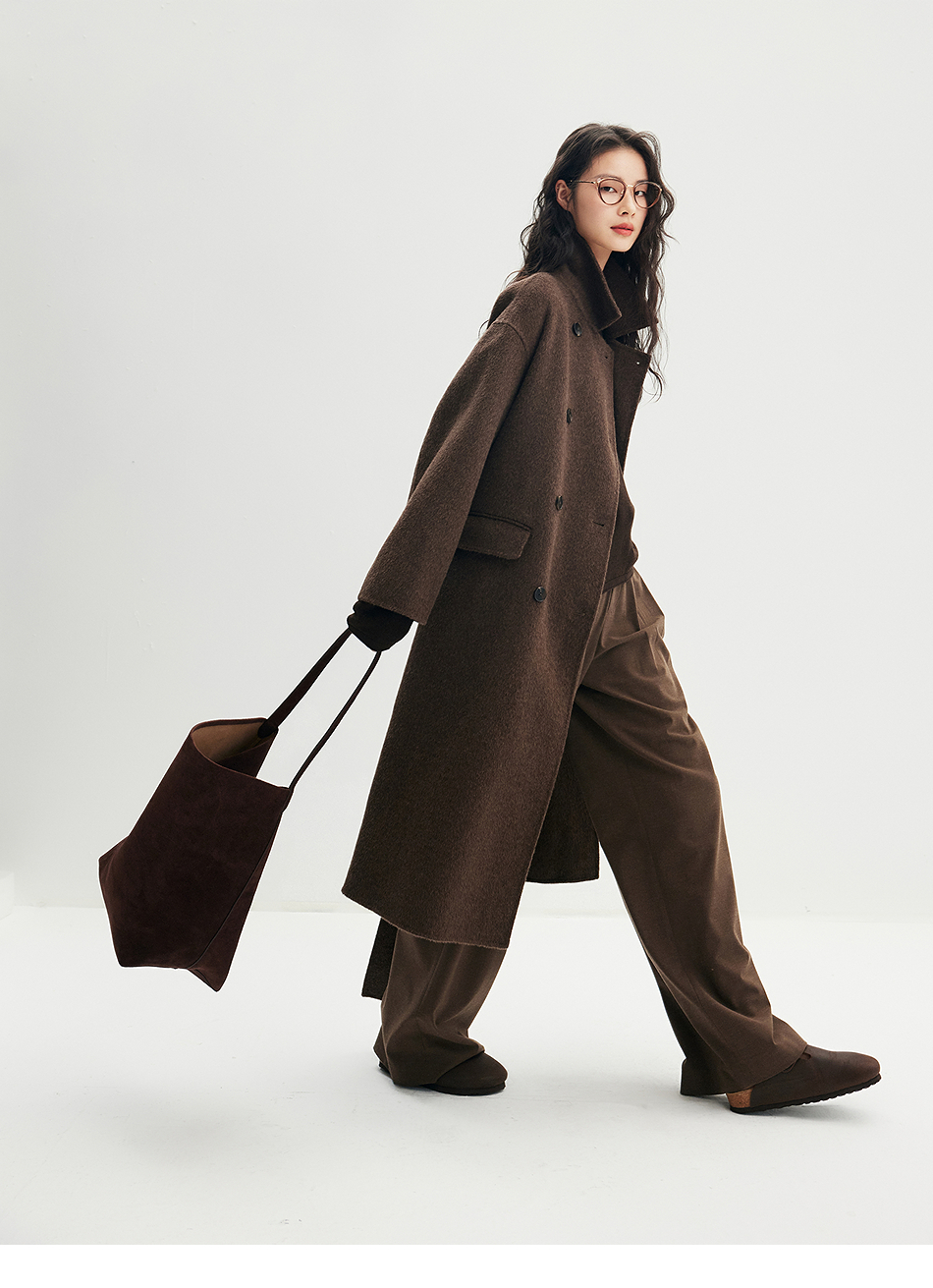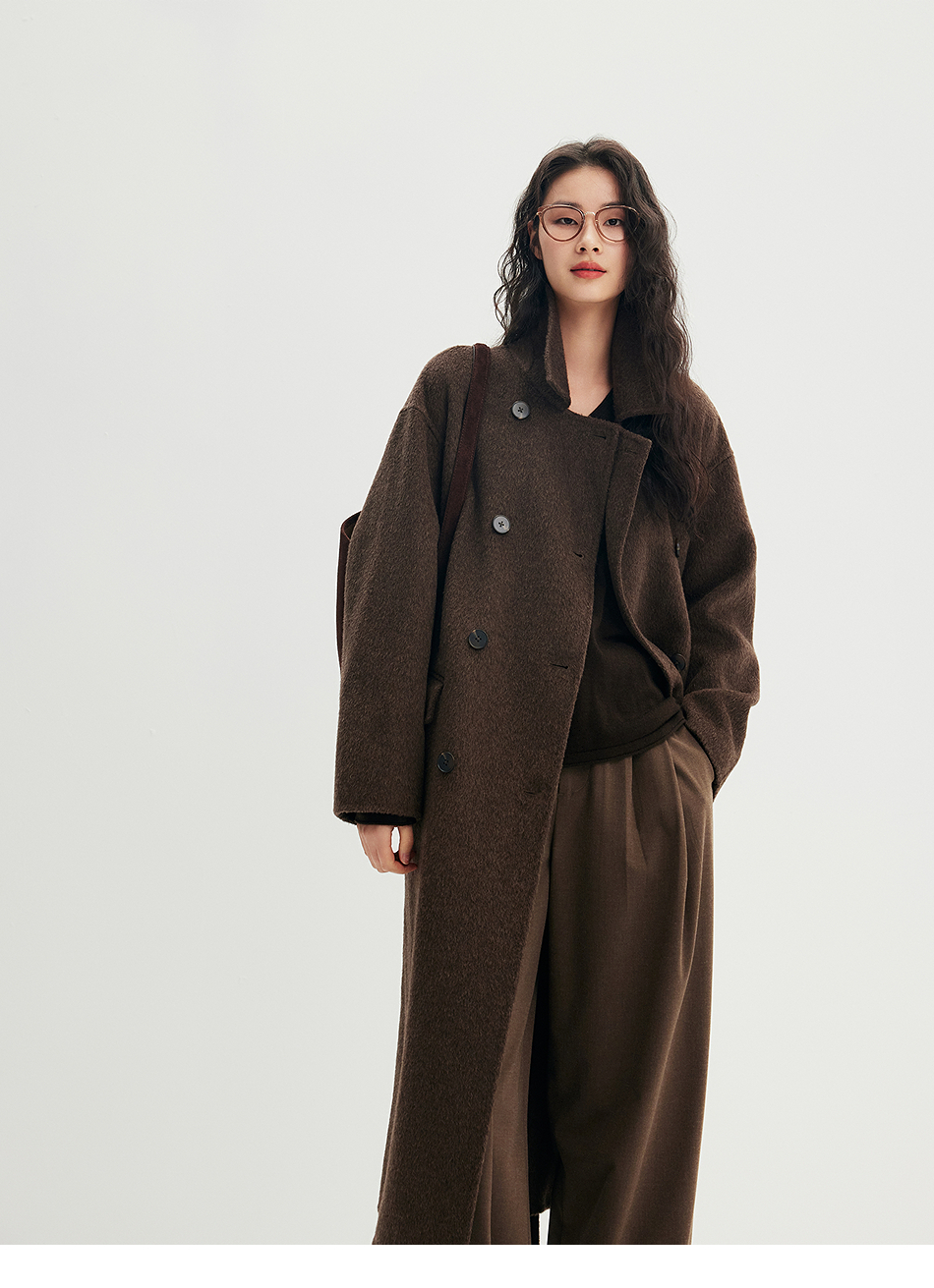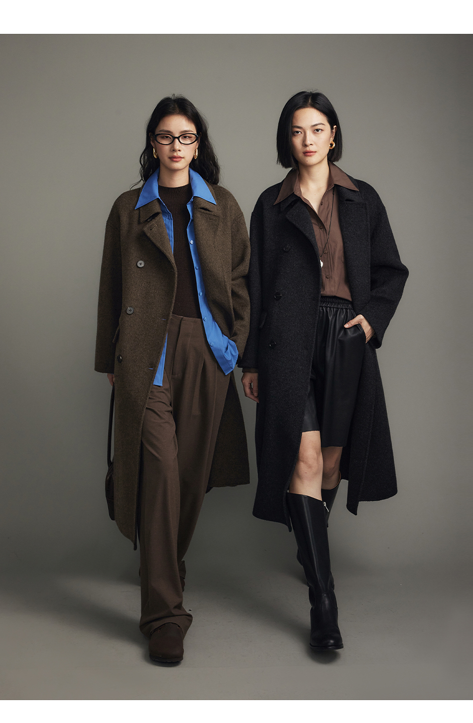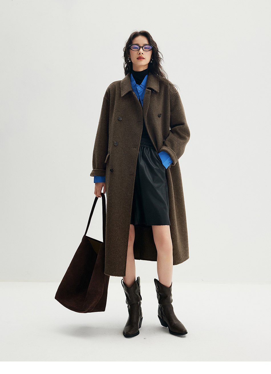棉仓356666006-MAX*翻领双排扣廓形双面呢大衣