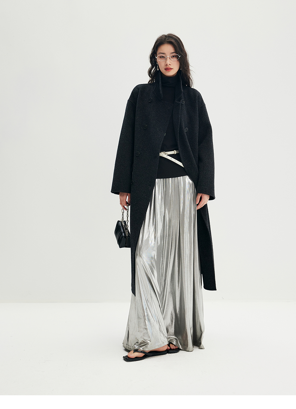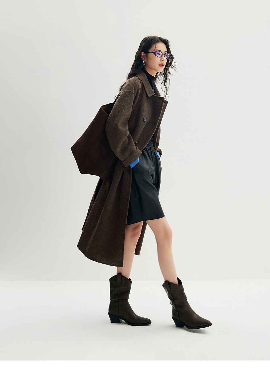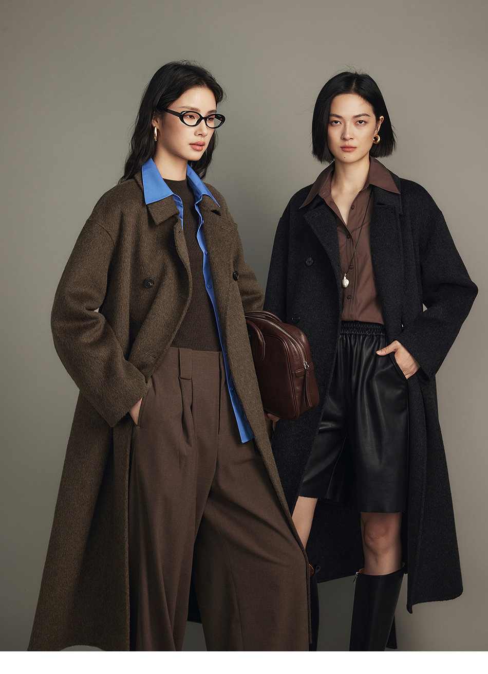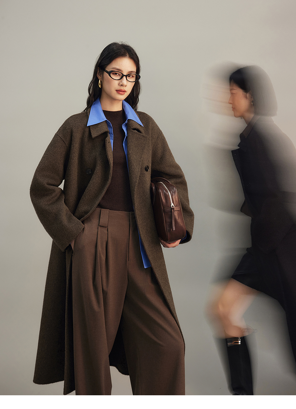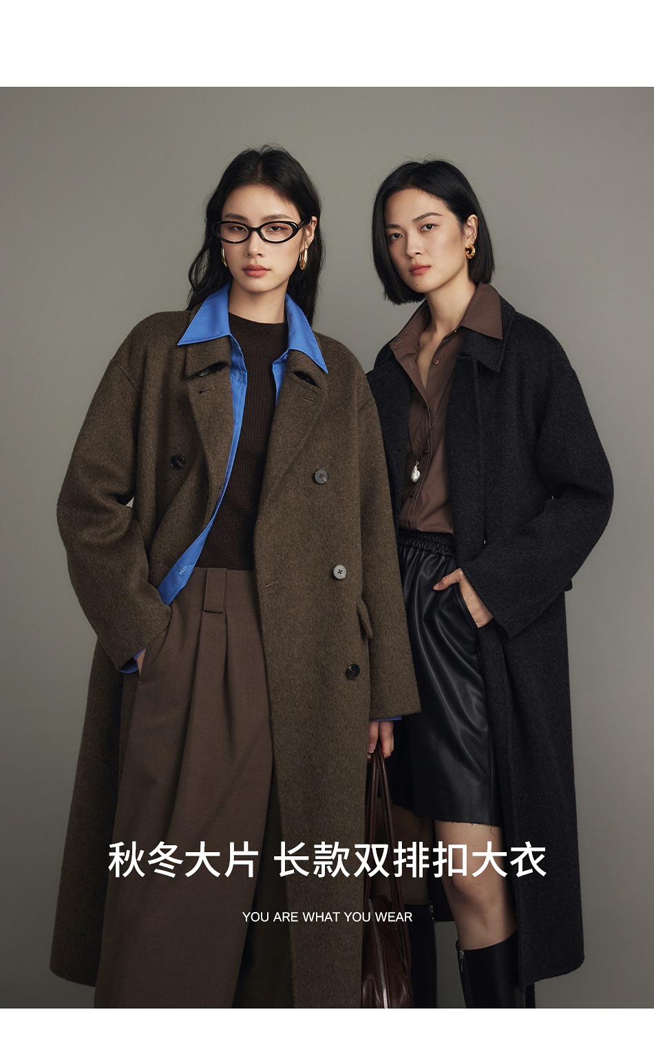 棉仓356666006-MAX*翻领双排扣廓形双面呢大衣