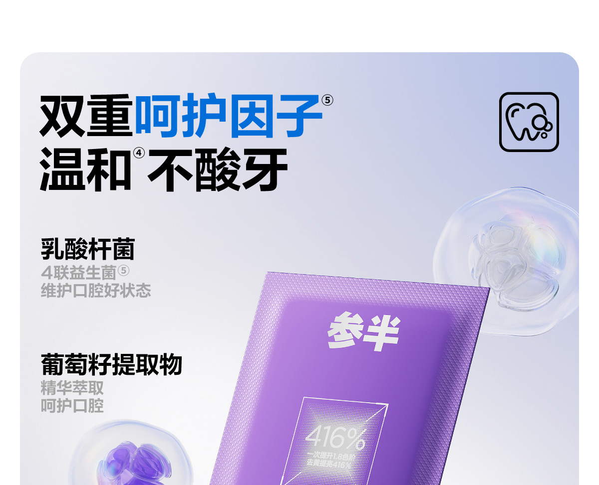 - 参半旗下产品已覆盖牙膏、漱口水、口腔爆珠、口腔喷雾等多个类目,为用户提供了精细化的口腔护理解决方案。
