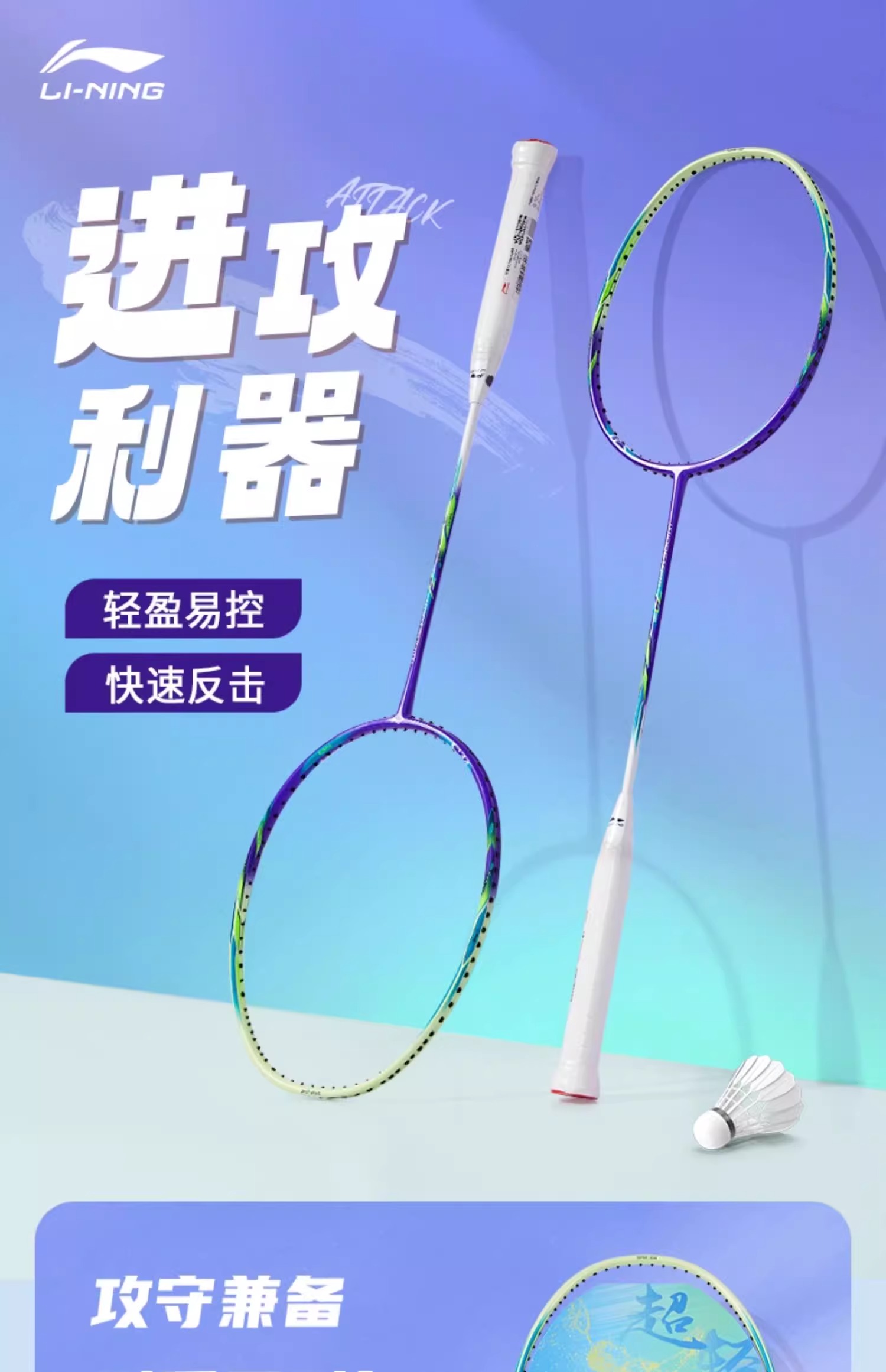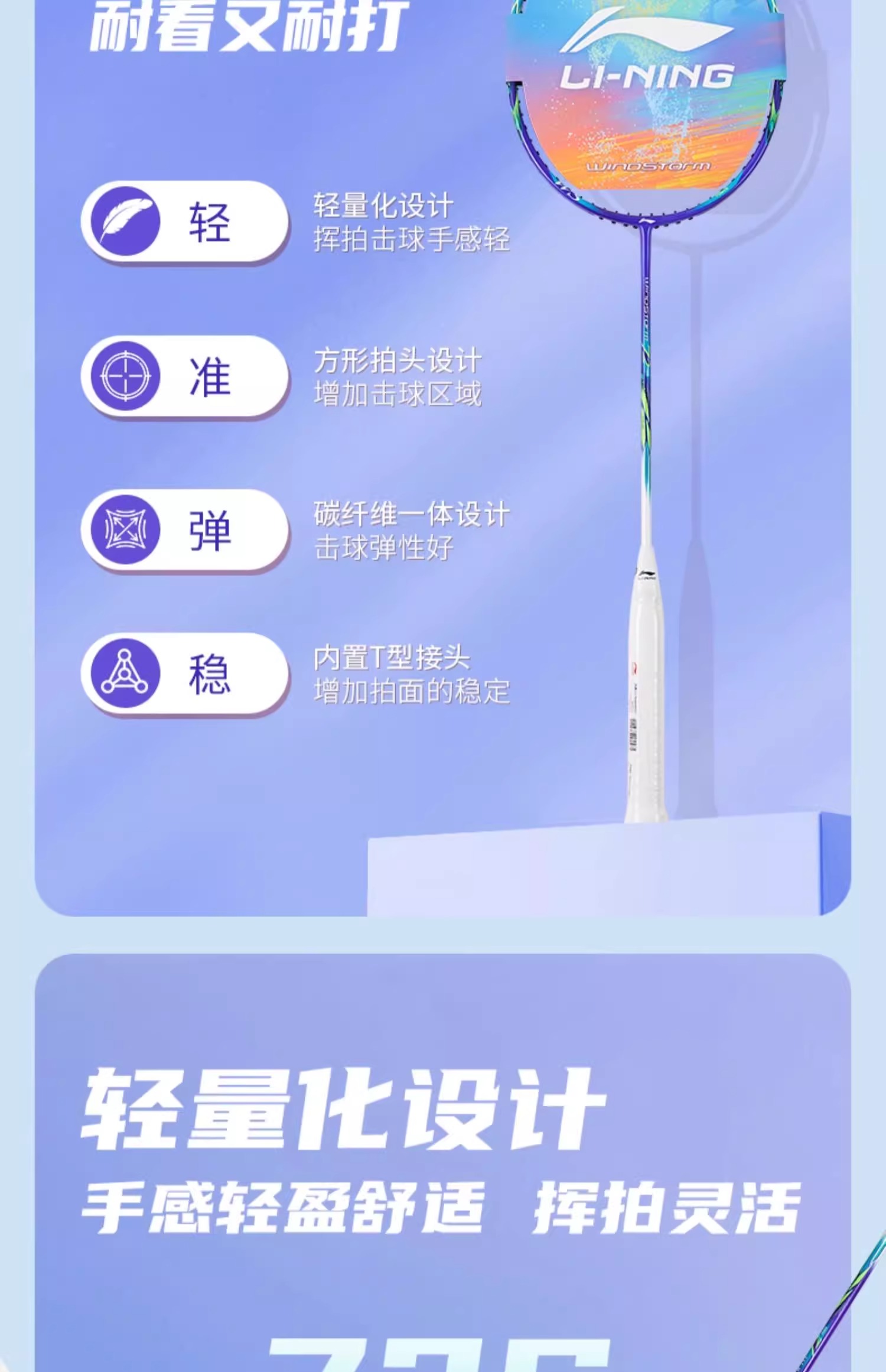 李宁 羽球拍 WindStorm 超轻72Power W72 AYPU071