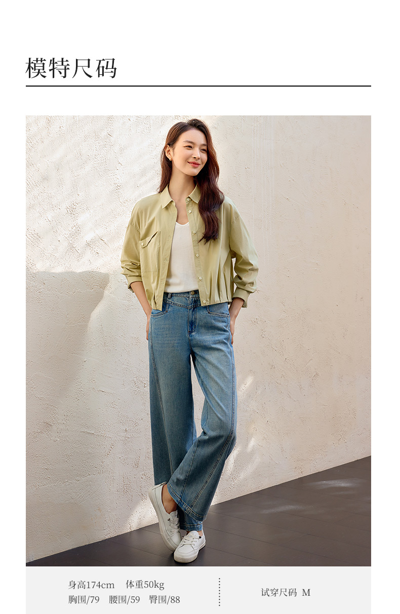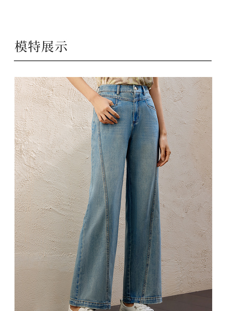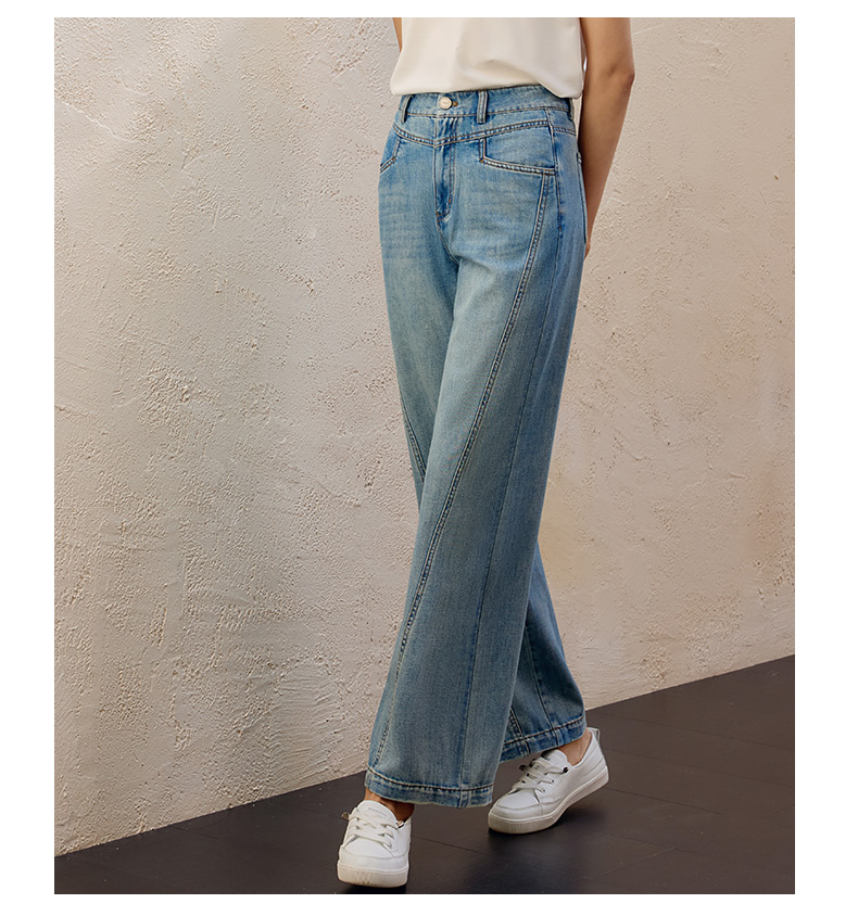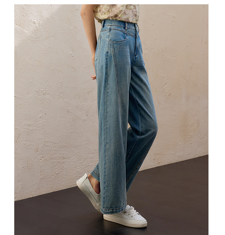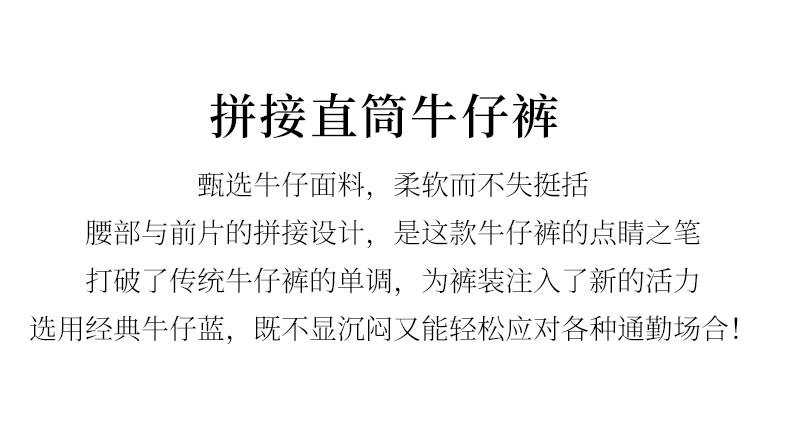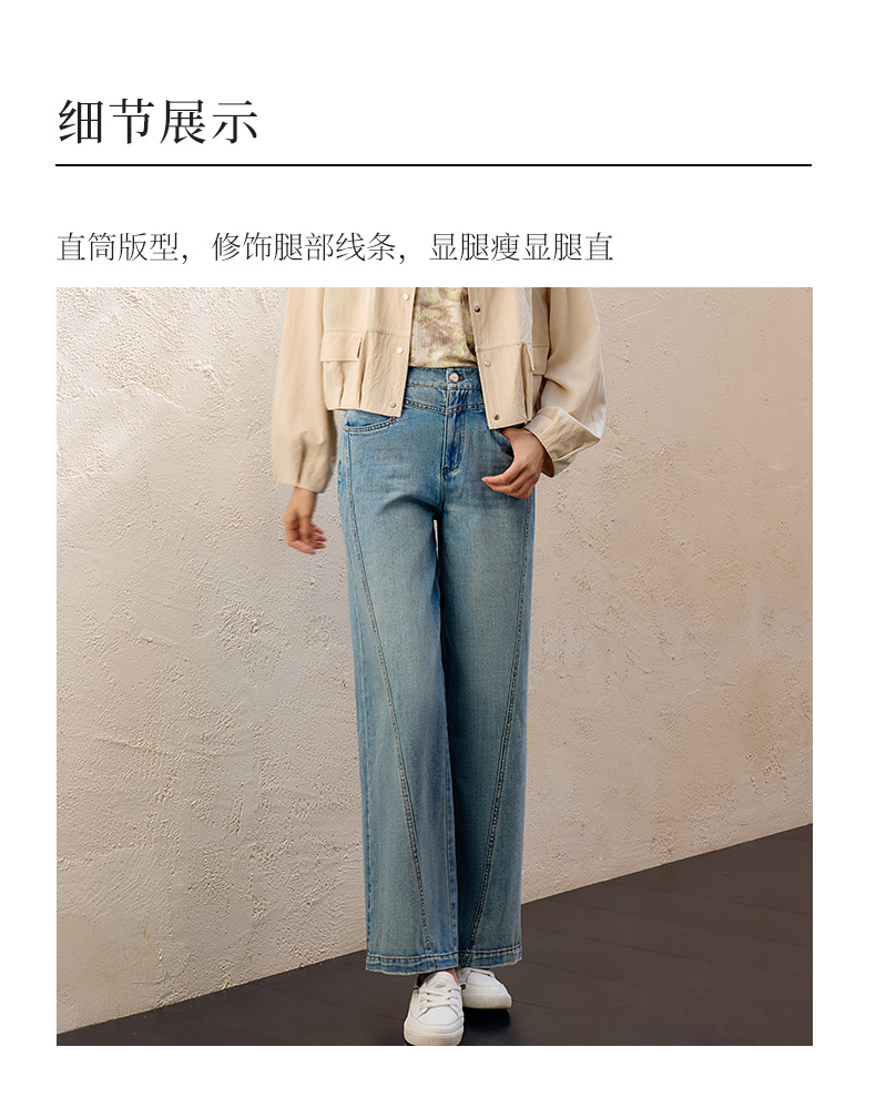 玳莎拼接设计感直筒牛仔裤女2025春夏新款时尚宽松百搭休闲裤 FA36303