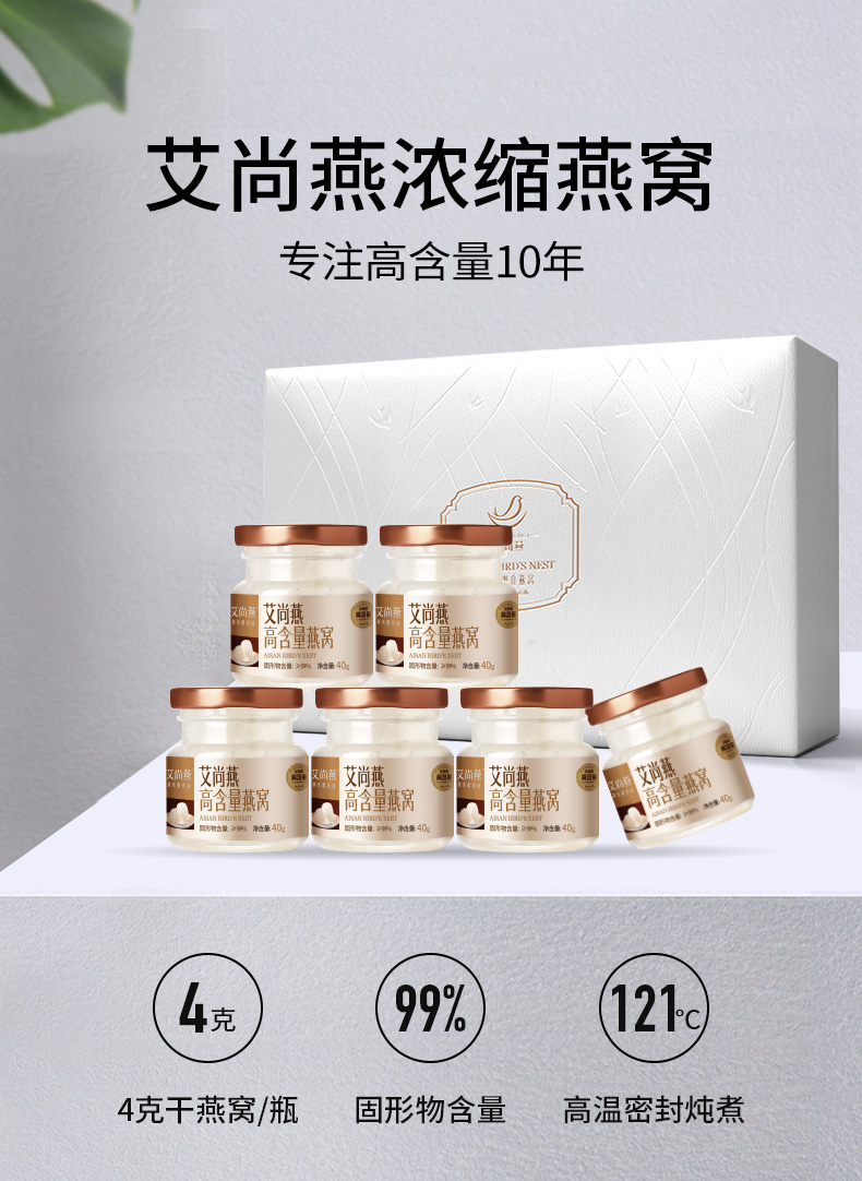 艾尚燕高含量即食燕窝4g*6瓶浓度99%女人孕妇哺乳老人滋补品