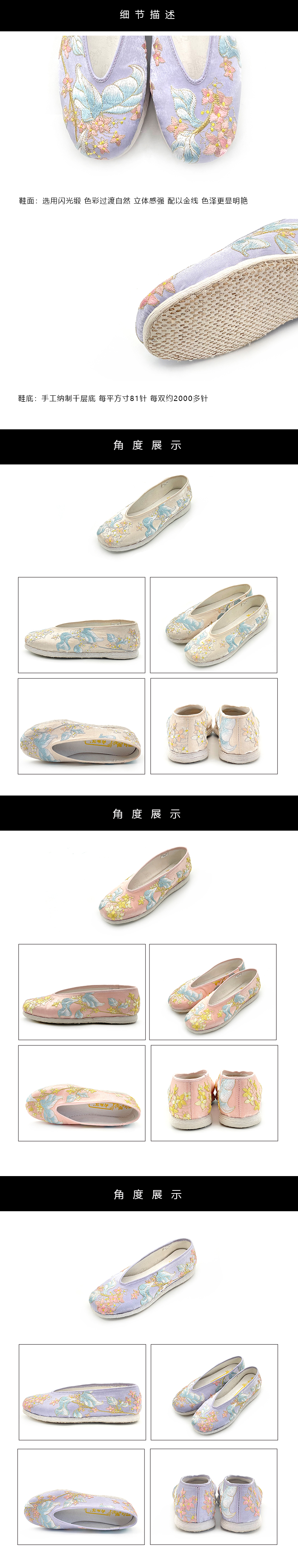 内联升女鞋手工单鞋千层底加密机绣海元口绣花鞋8207A