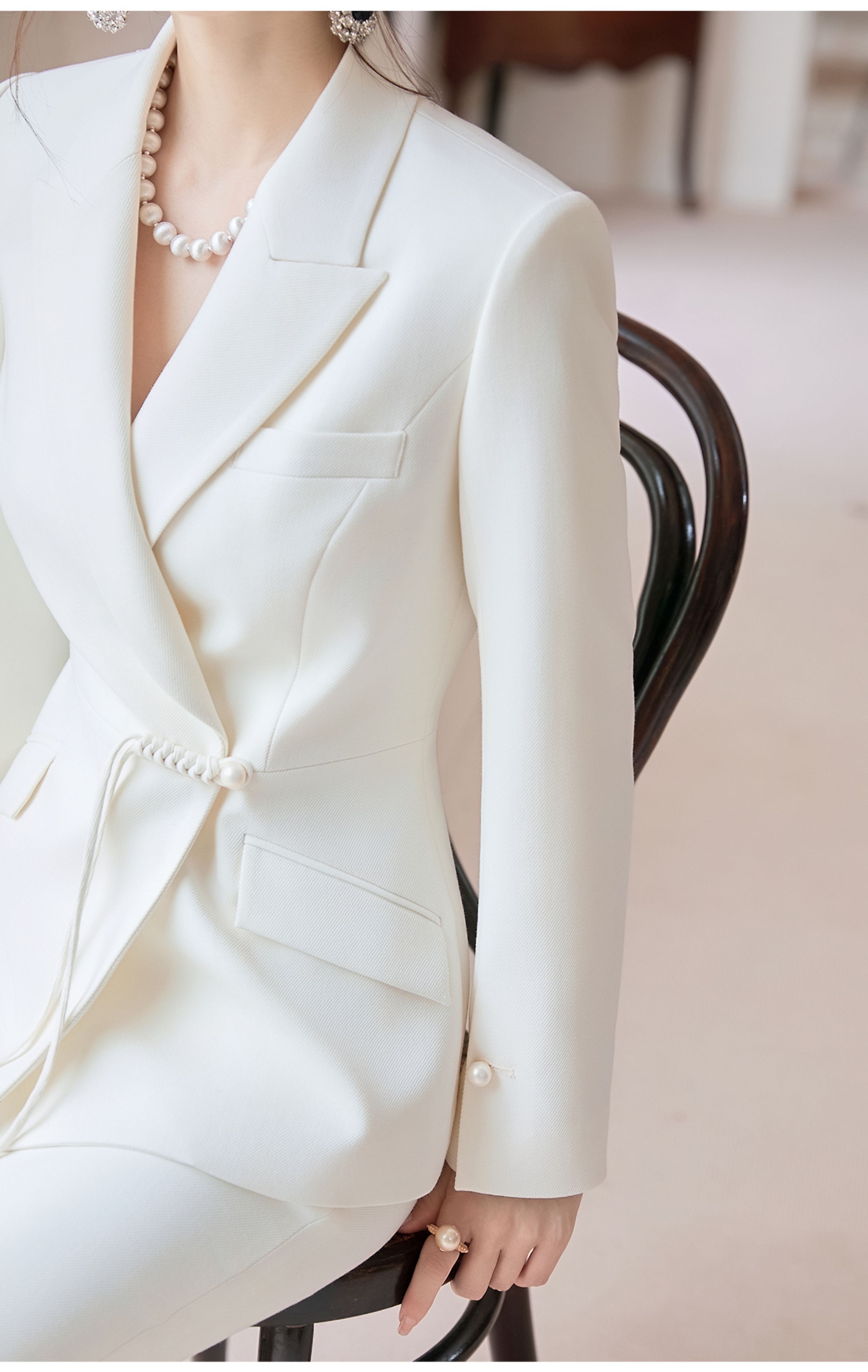 FUYAO扶摇 新中式盘扣时尚套装女2025新款白色国风显瘦西装外套