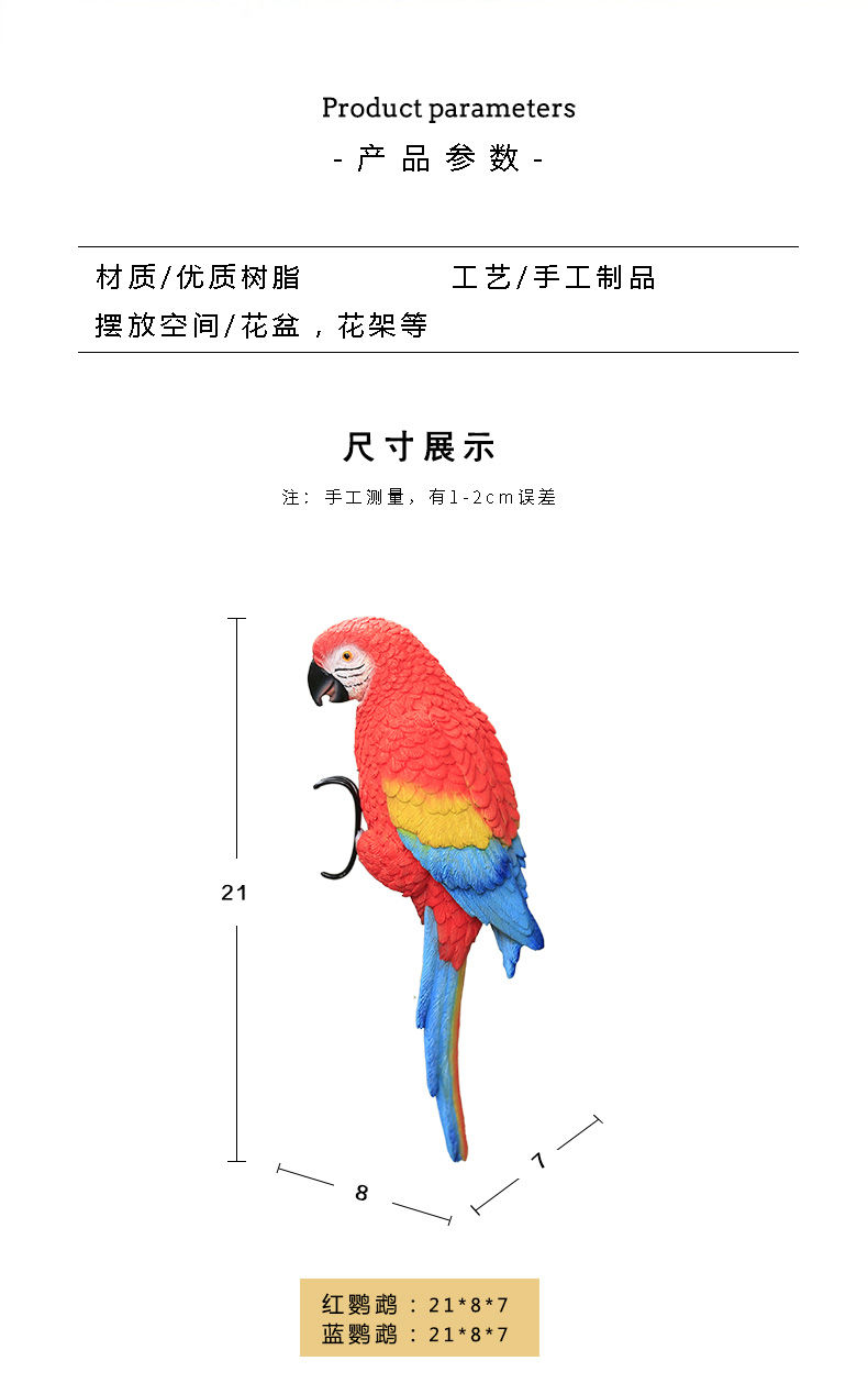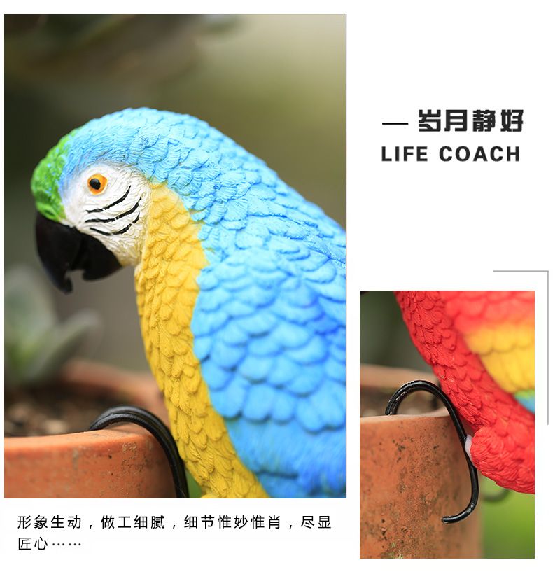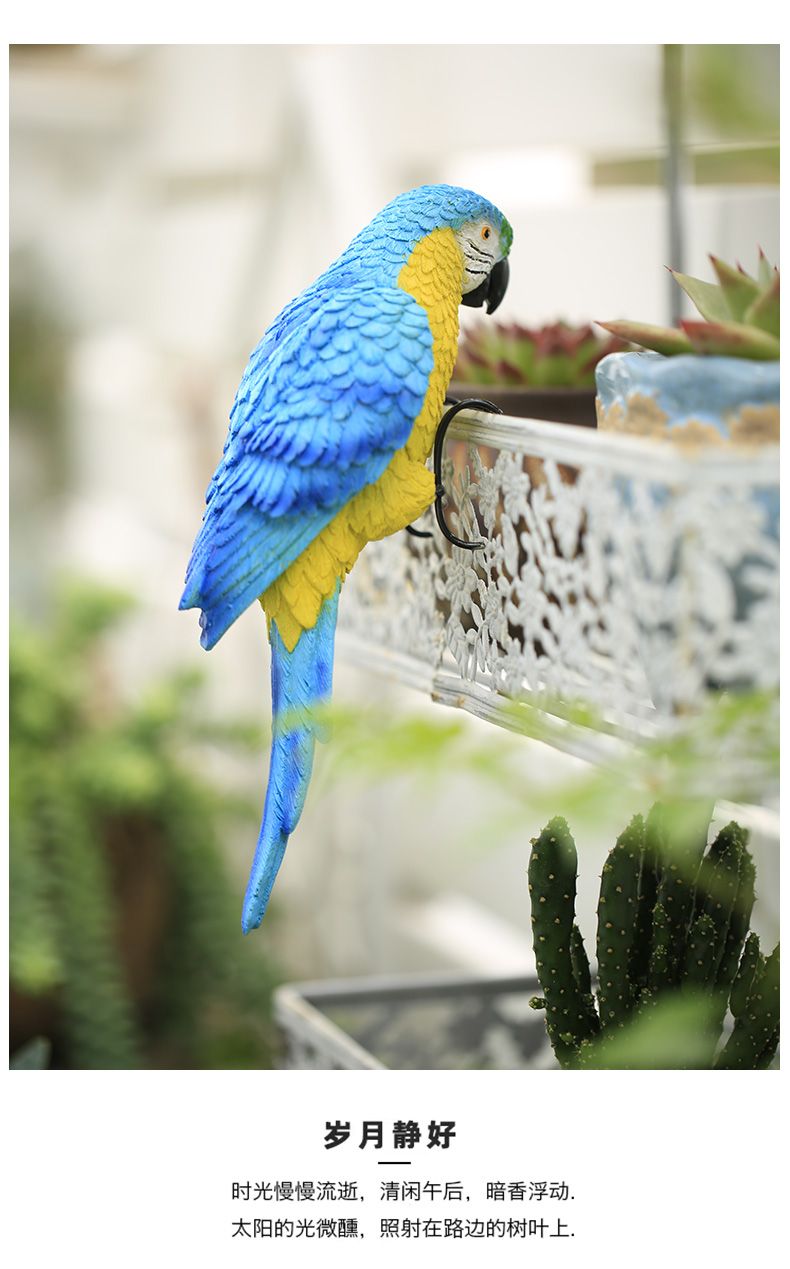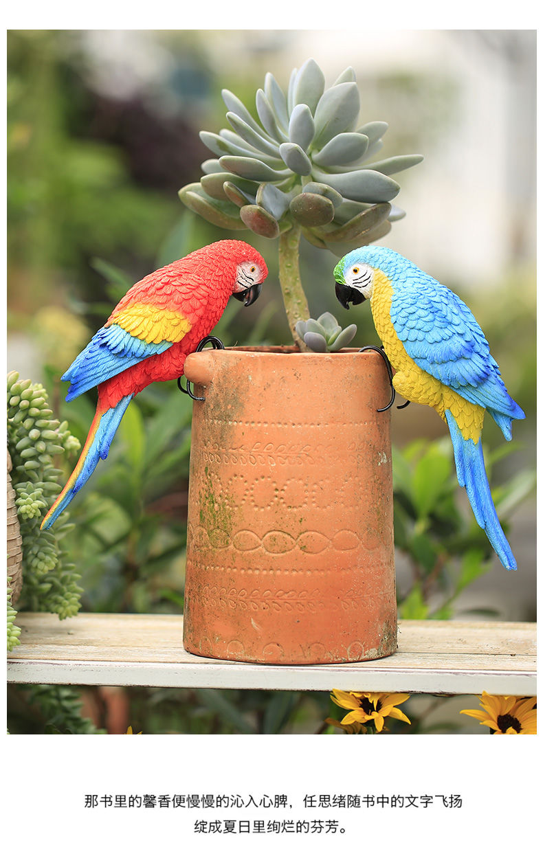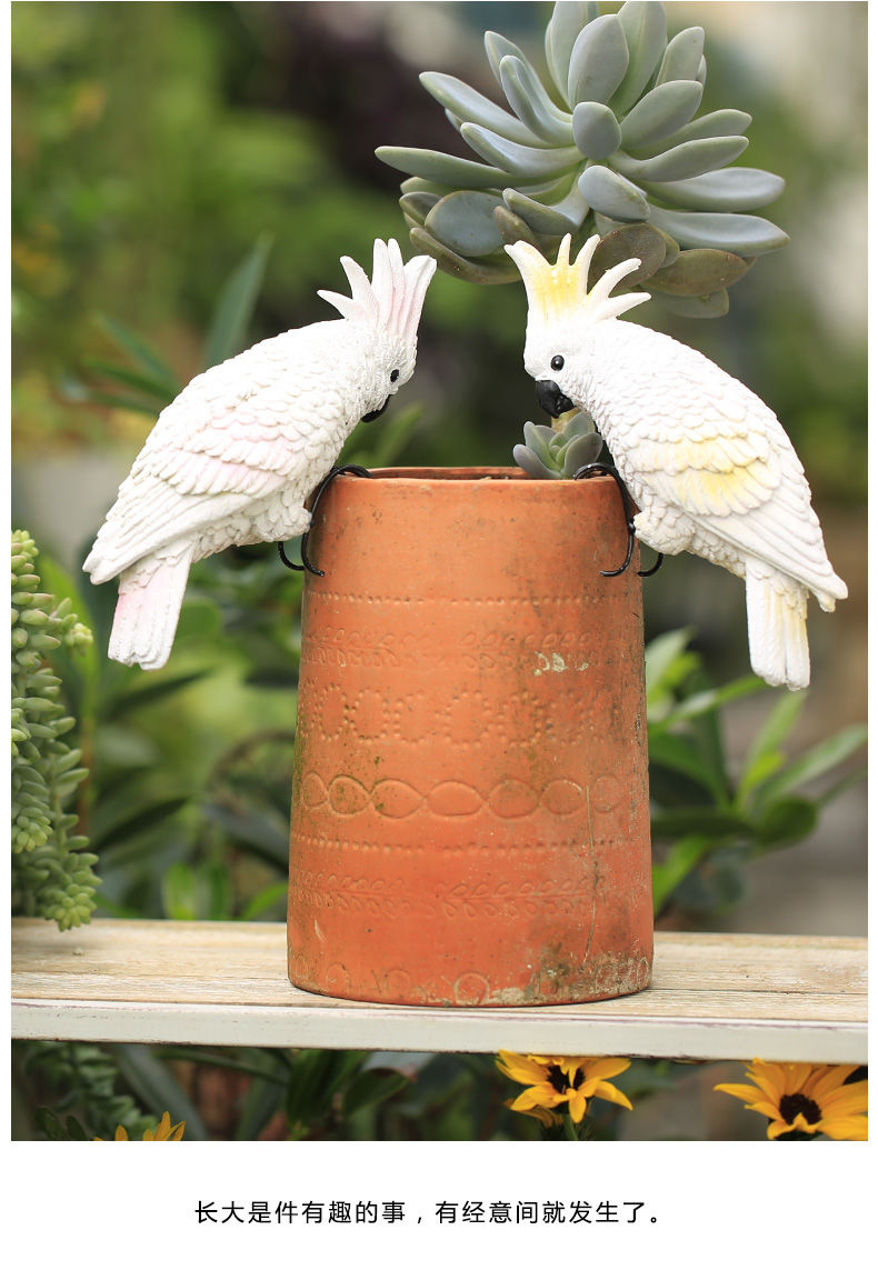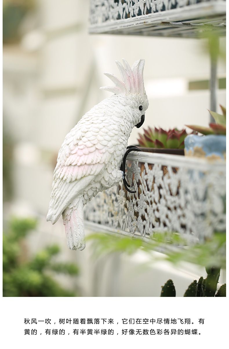 花园庭院阳台花盆鹦鹉盆挂创意可爱花瓶鱼缸装饰品小动物树脂挂件