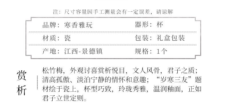 寒香雅玩青花松竹梅撇口杯(缺货)