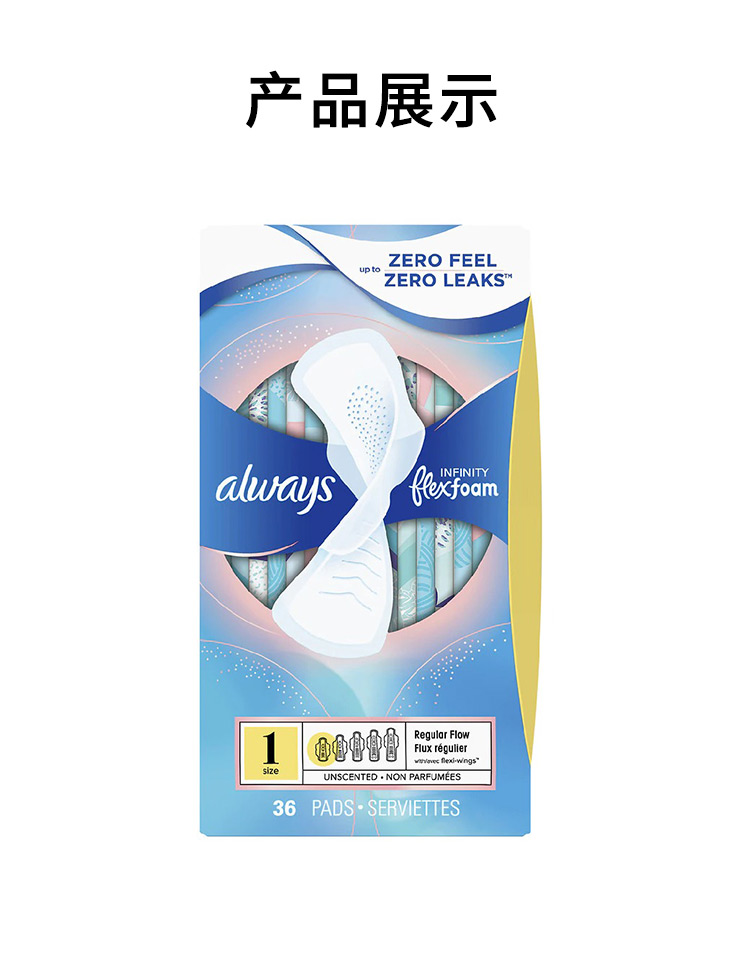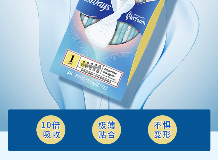 【保税仓】美国ALWAYS护舒宝Infinity系列护翼液体卫生巾无香型1号日用36片/盒