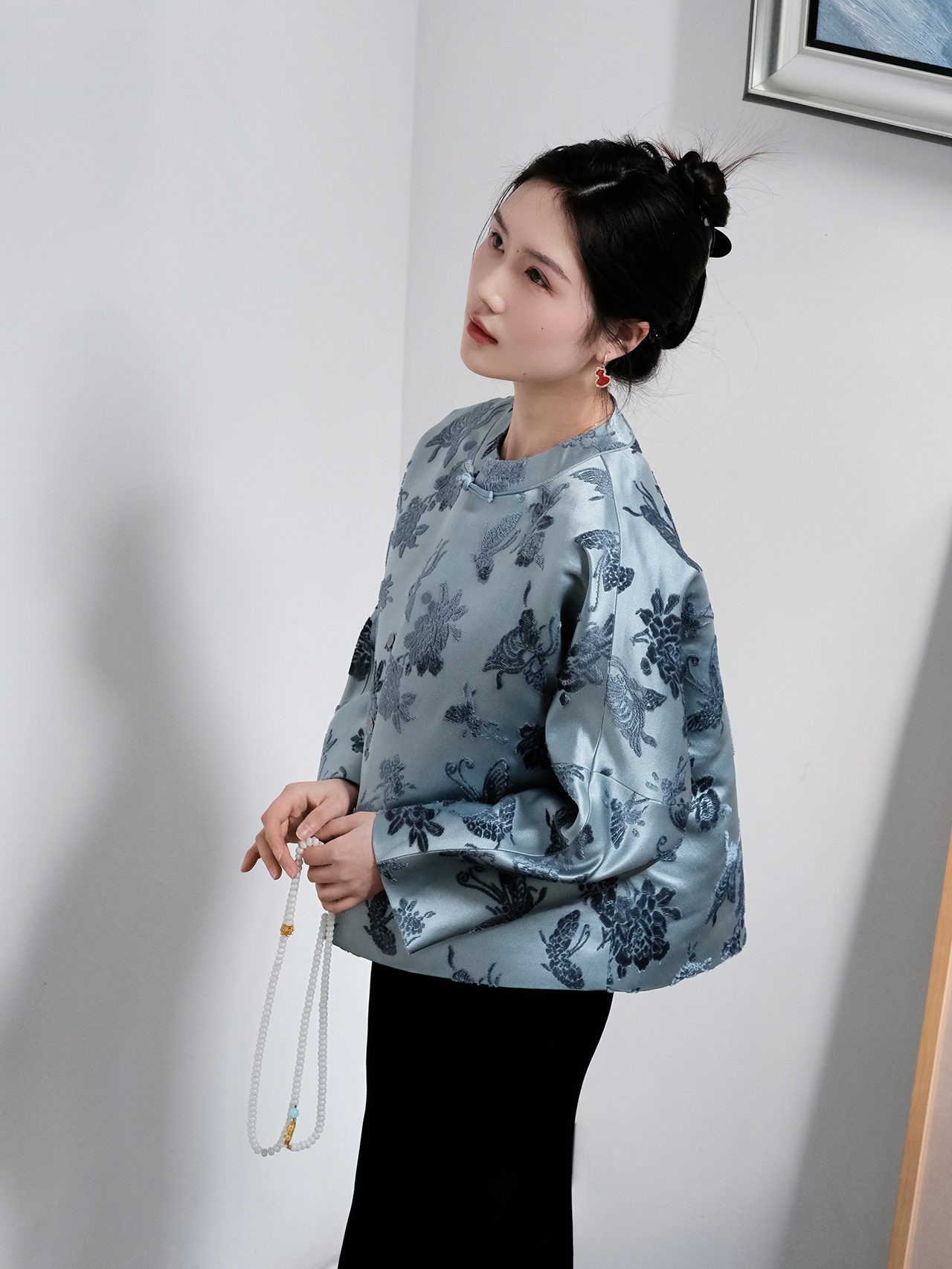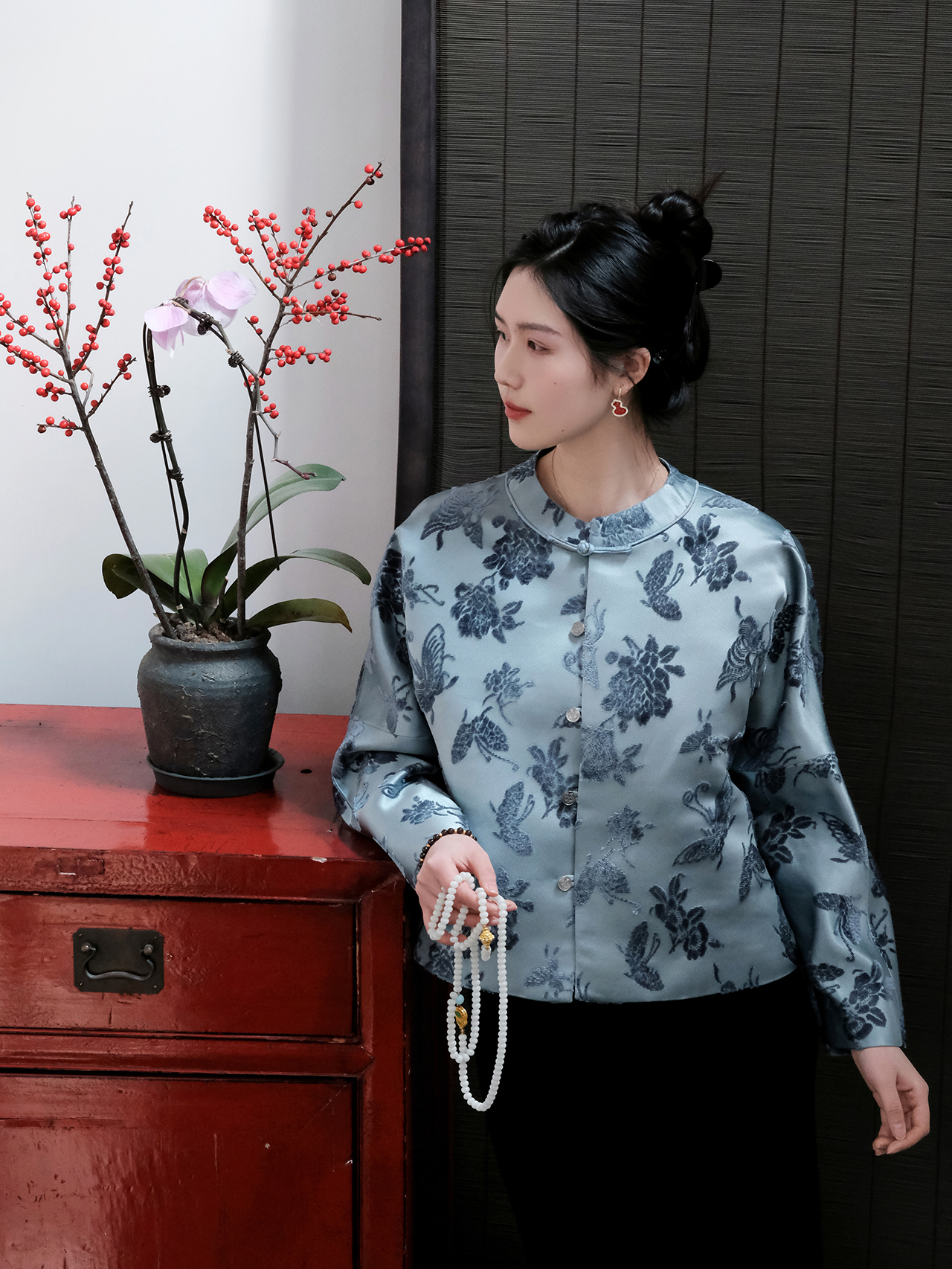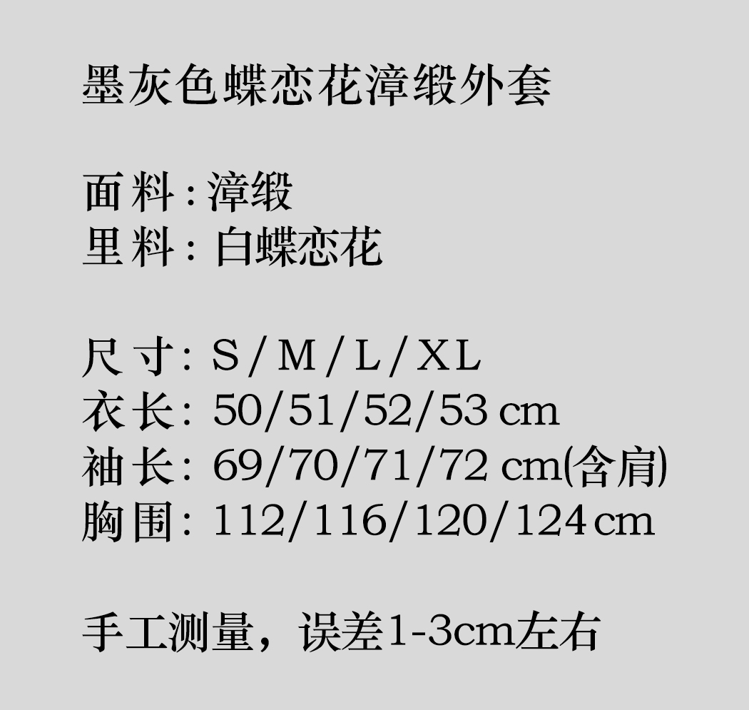 瑕疵|盛唐牡丹| 墨灰色蝶恋花漳缎外套[特价品](特殊商品不退不换)