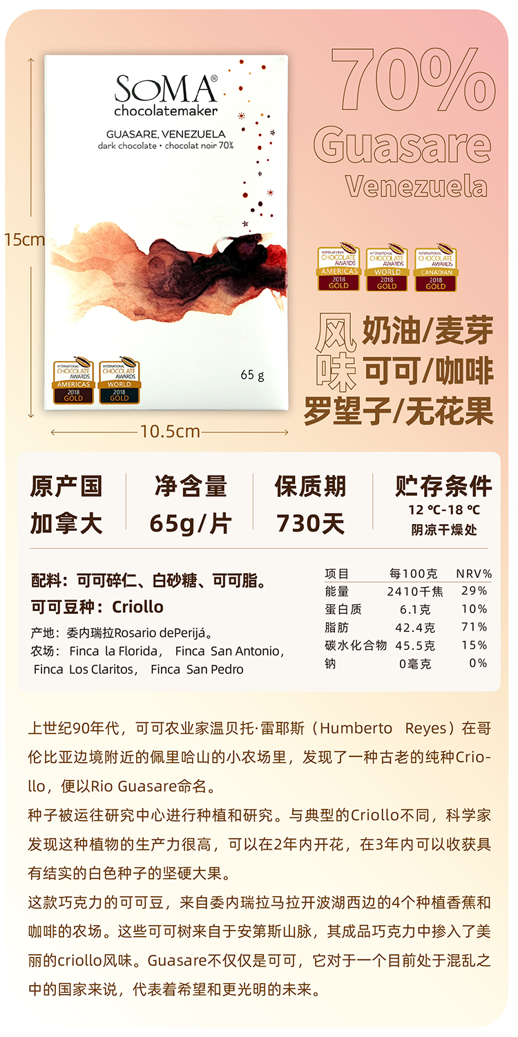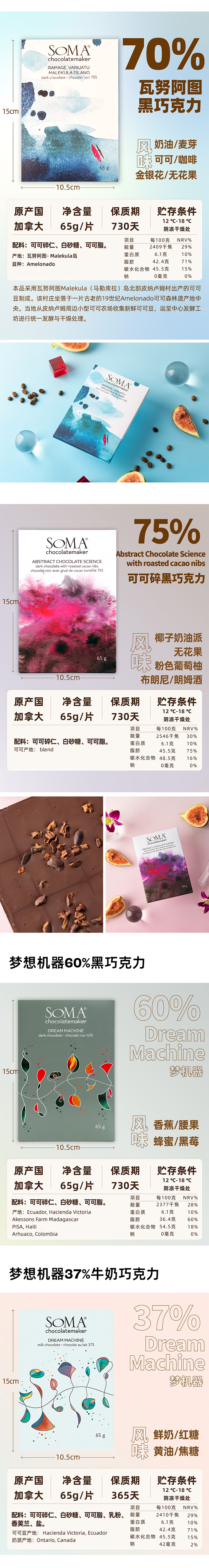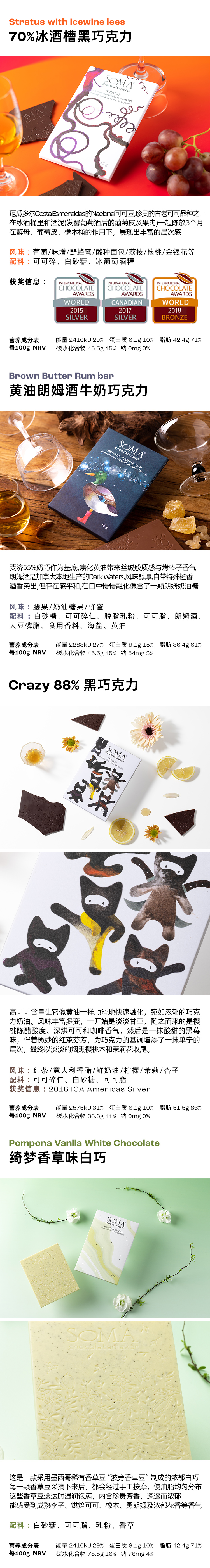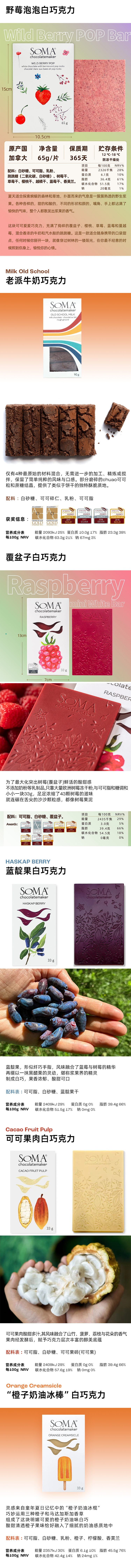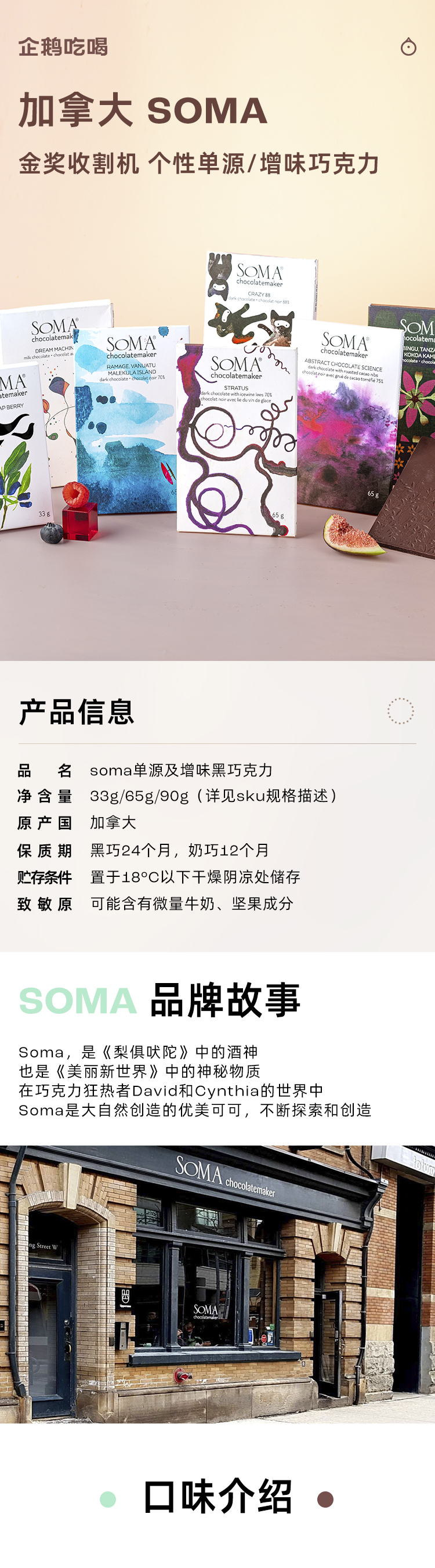 企鹅市集|加拿大进口SOMA单源/增味巧克力 33/65/90g 多口味可选 黄油朗姆/香草/芒果/覆盆子等