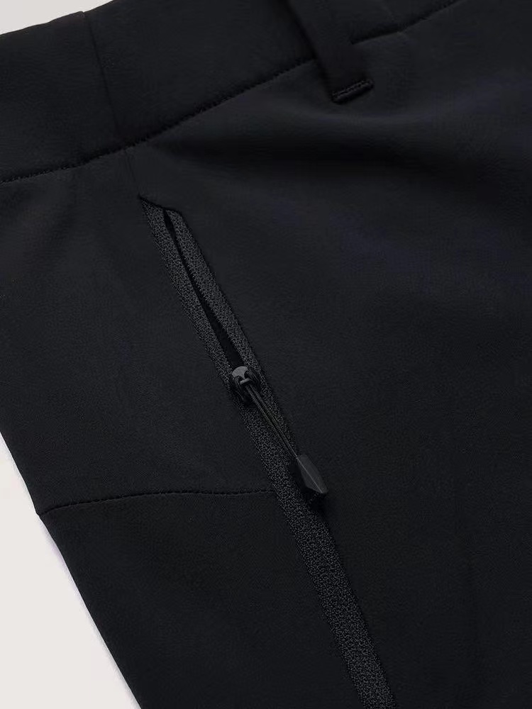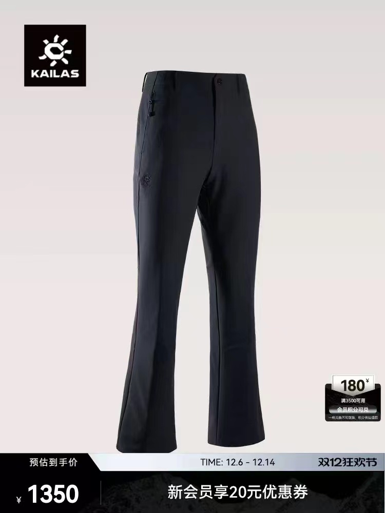 微喇防风加绒软壳裤户外运动登山徒步女款,外层防风面料,内里加绒,抵御寒风侵袭且持续锁温,兼顾户外活动的防护性与日常通勤的舒适性。双侧拉链口袋,防丢收纳。微喇版型修饰小腿线条,拉长视觉比例,显高显瘦,冬季更好搭配。后腰剪裁更贴合人体曲线,更凸显臀部线条。立体膝位,增加膝盖活动量,抬腿不紧绷,避免膝位鼓包。