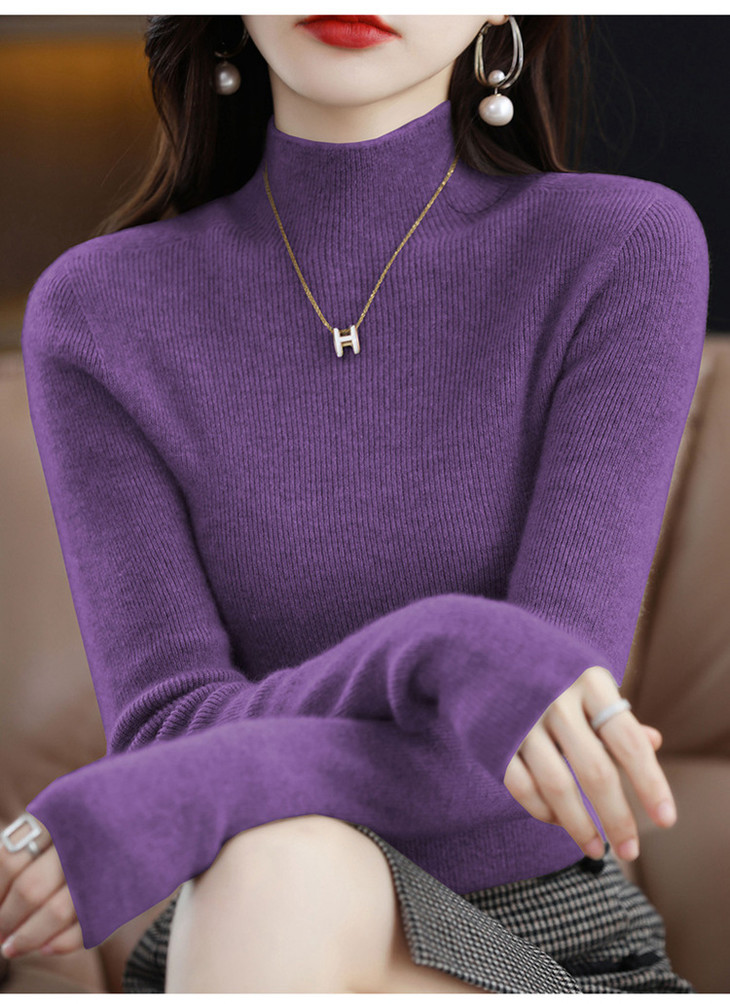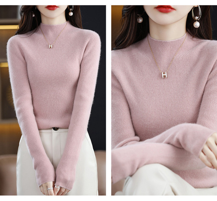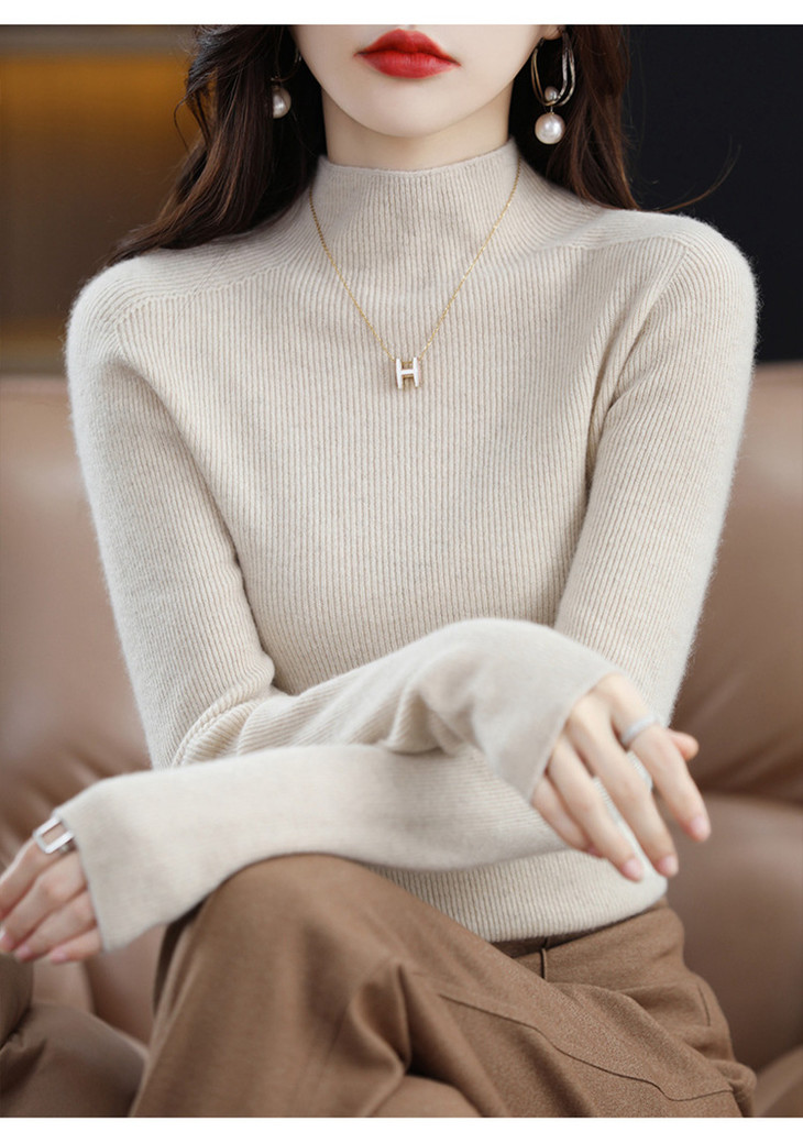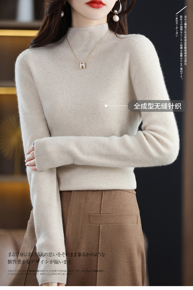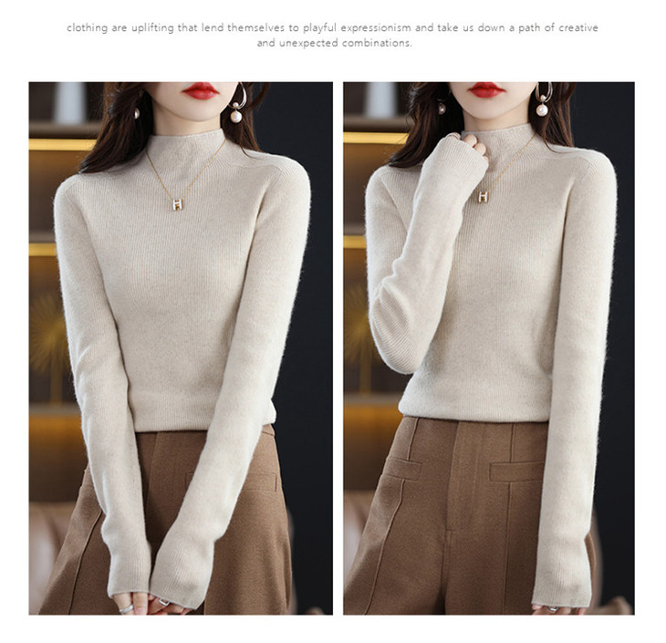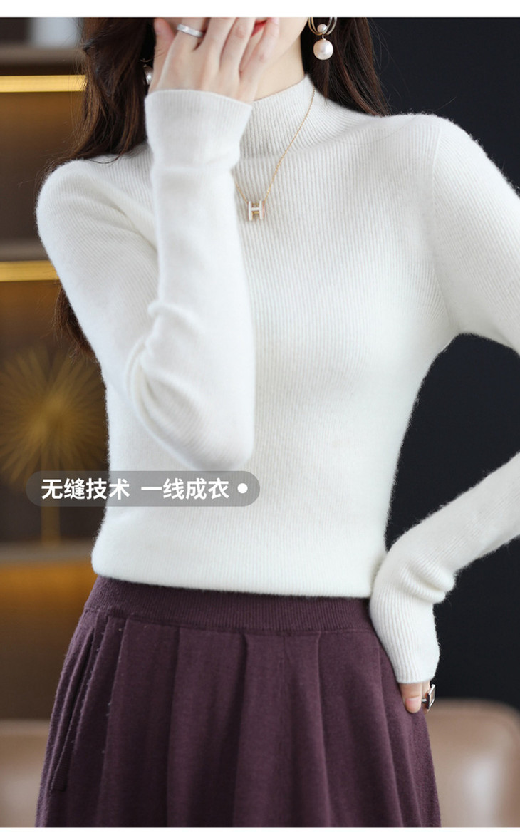 【满满细节! 针织打底羊毛衣】温暖软糯羊毛高领修身打底衫 修身长袖针织打底毛衣L